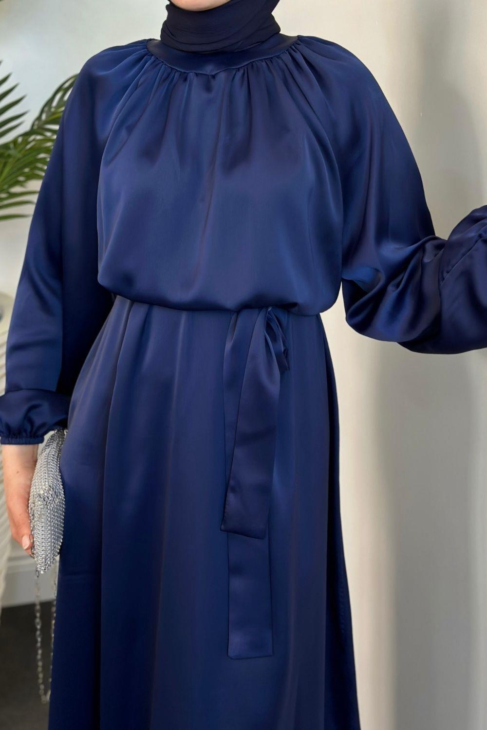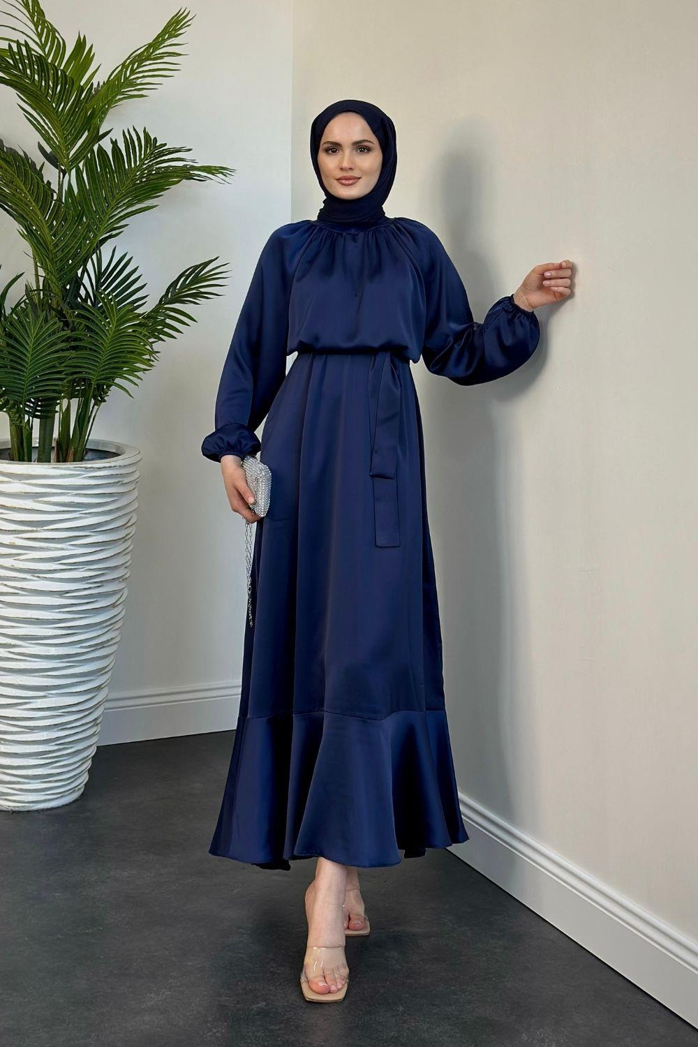 Jahan Altı Volan Saten Abiye Lacivert