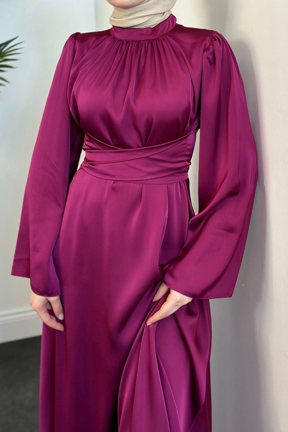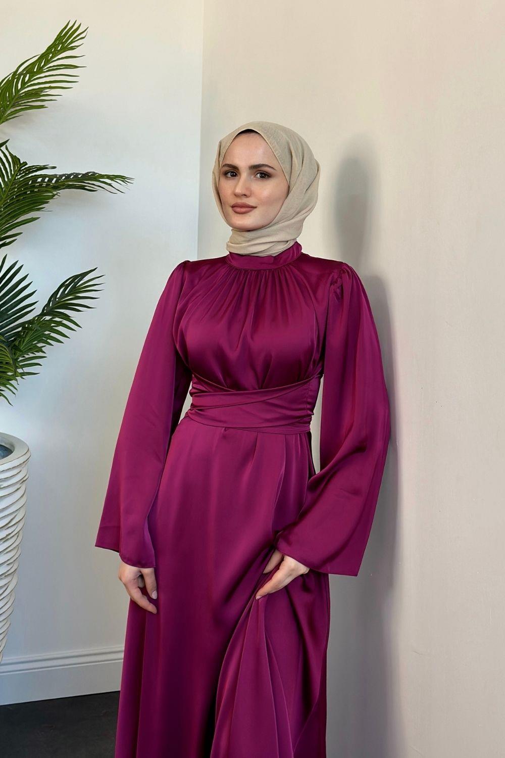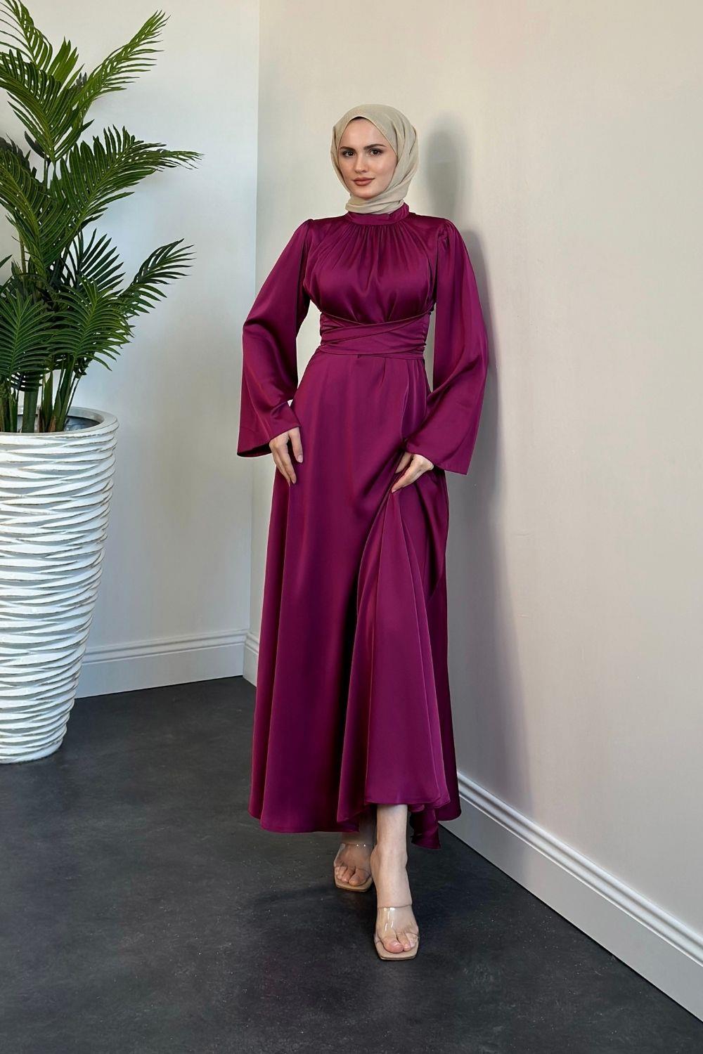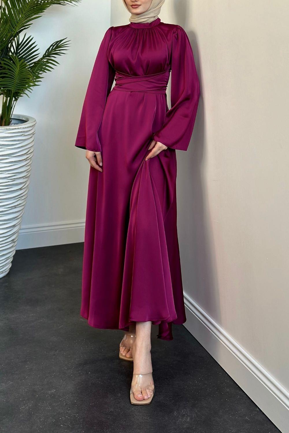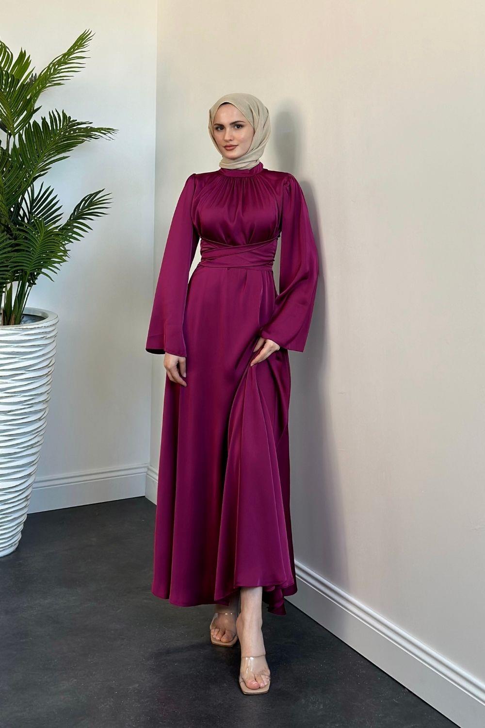 Diba Çapraz Kemer İpek Saten Abiye Mürdüm