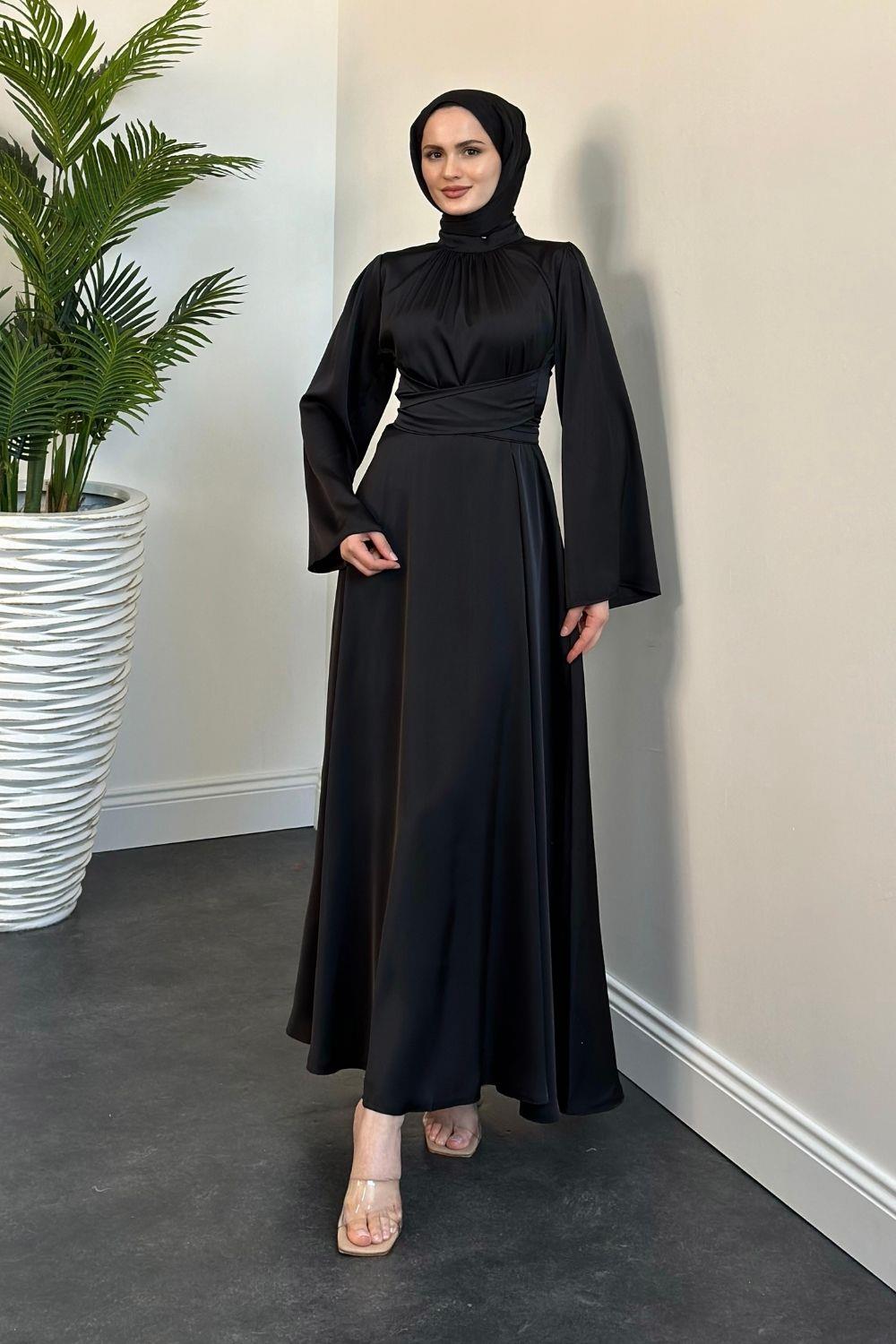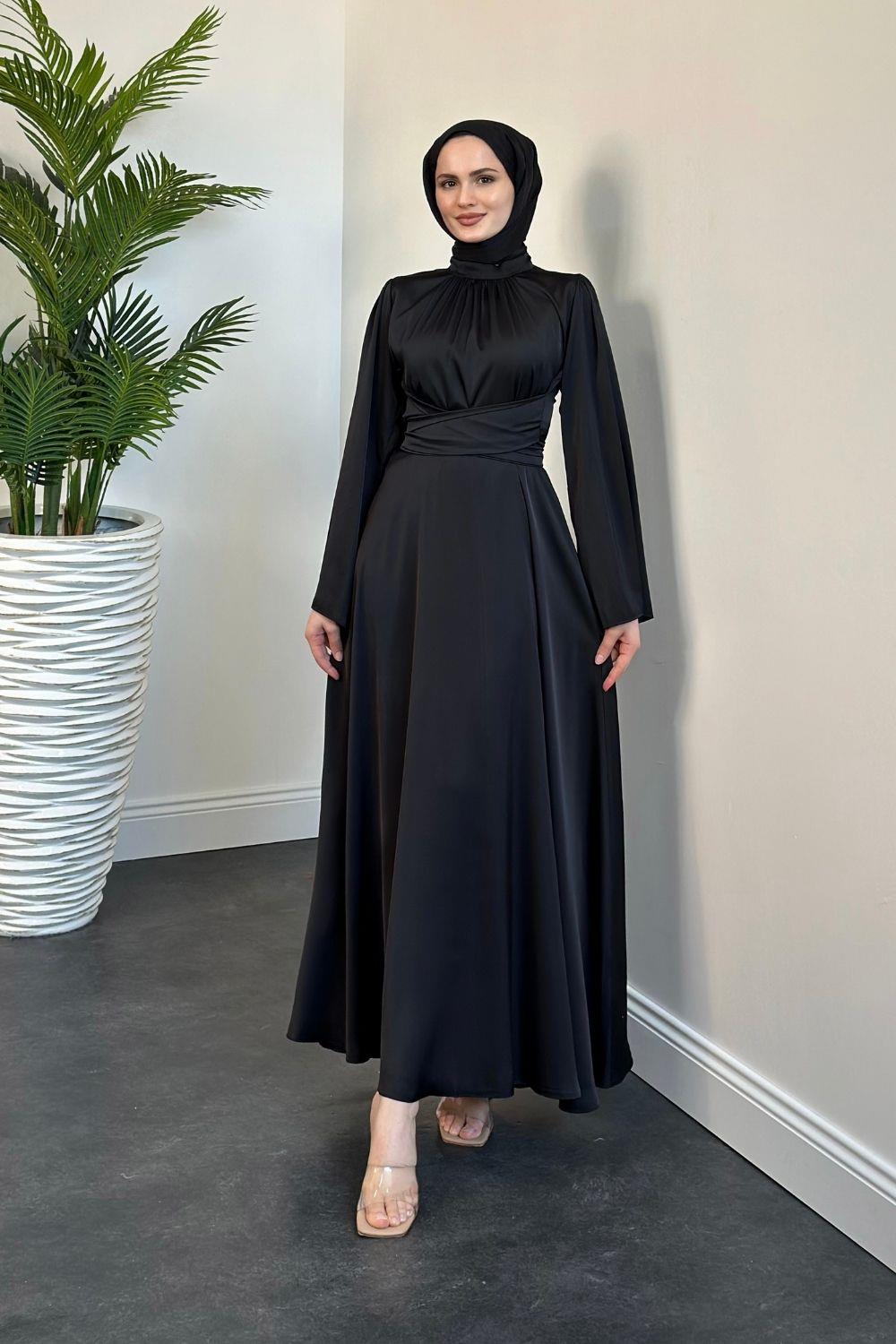 Diba Çapraz Kemer İpek Saten Abiye Siyah