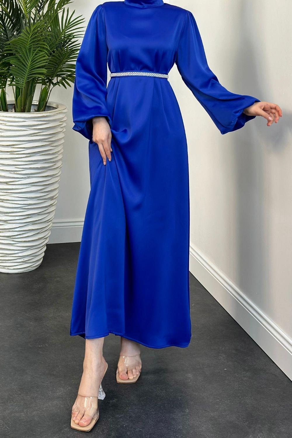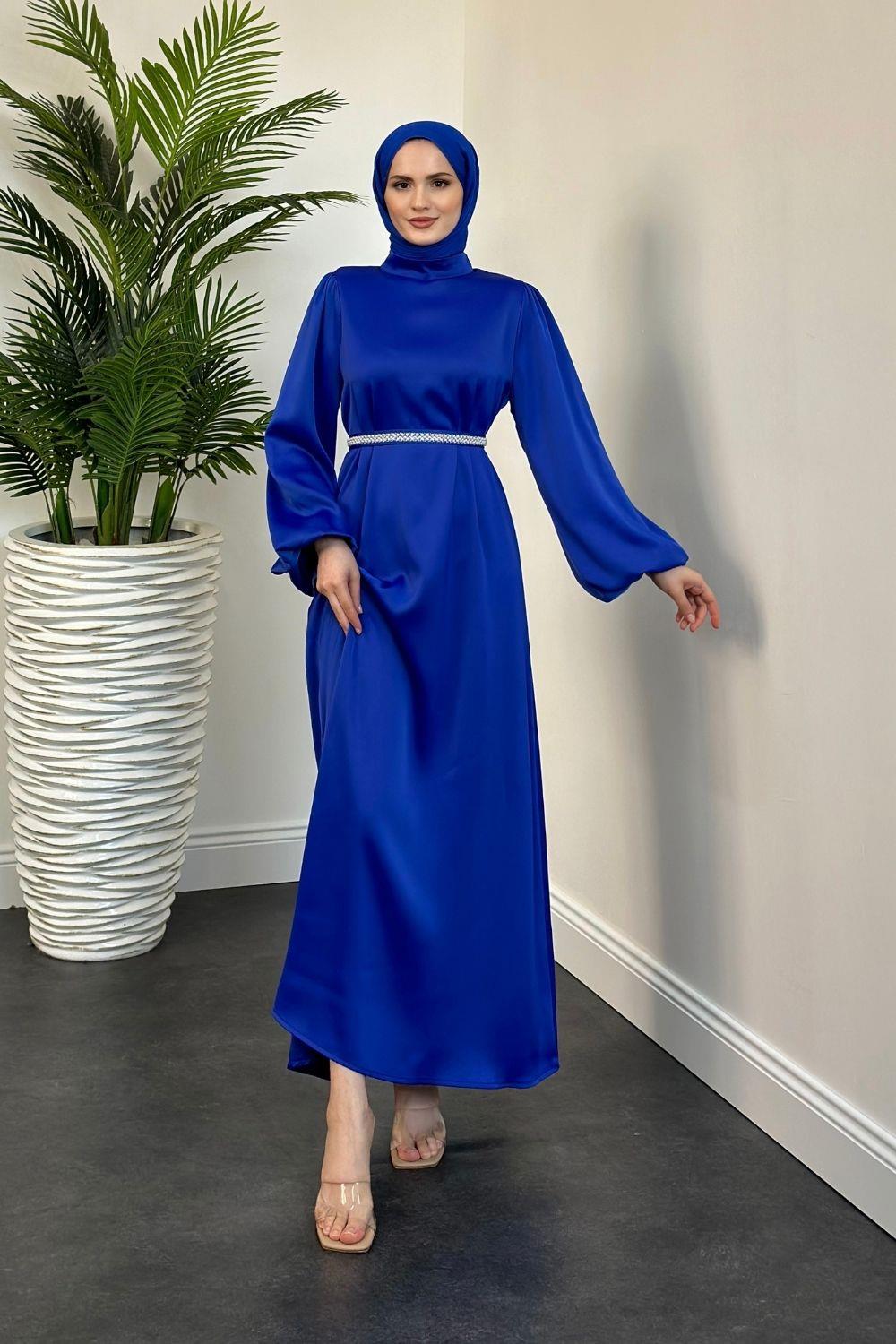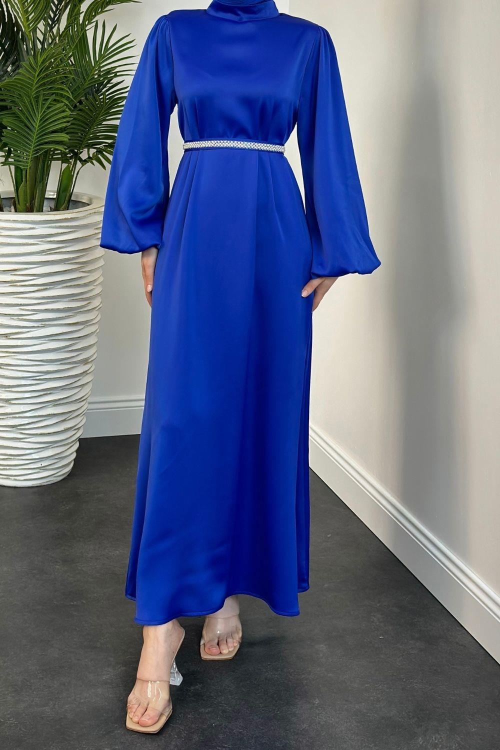 Nika Kemeri İncili Saten Abiye Saks
