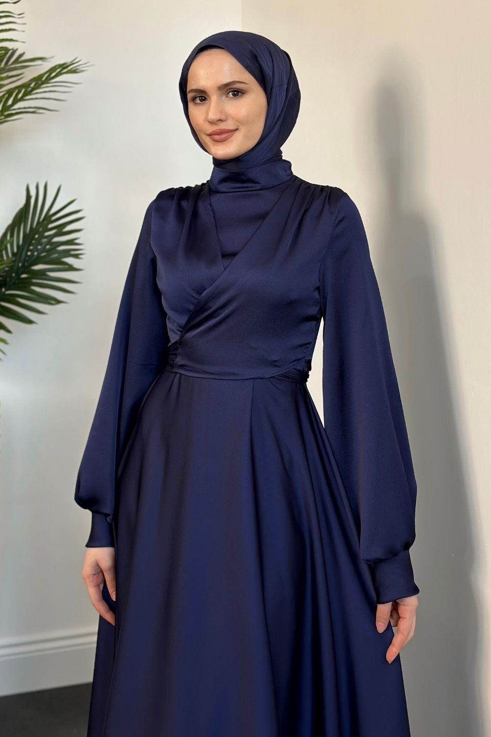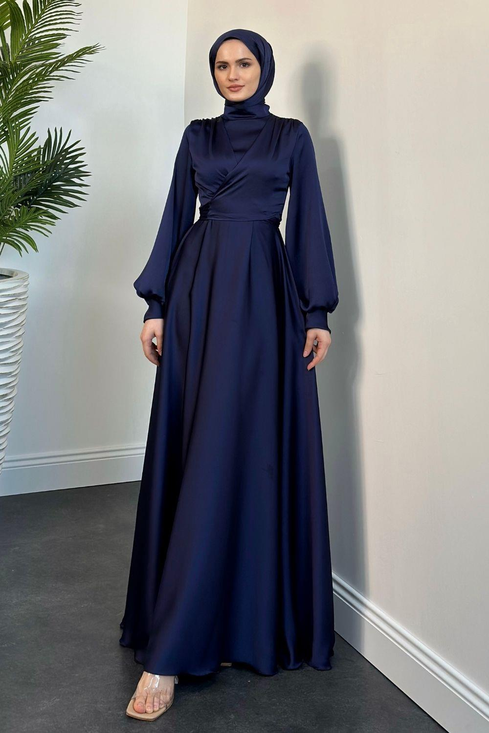 Isabella Kruvaze Detay Saten Abiye Lacivert