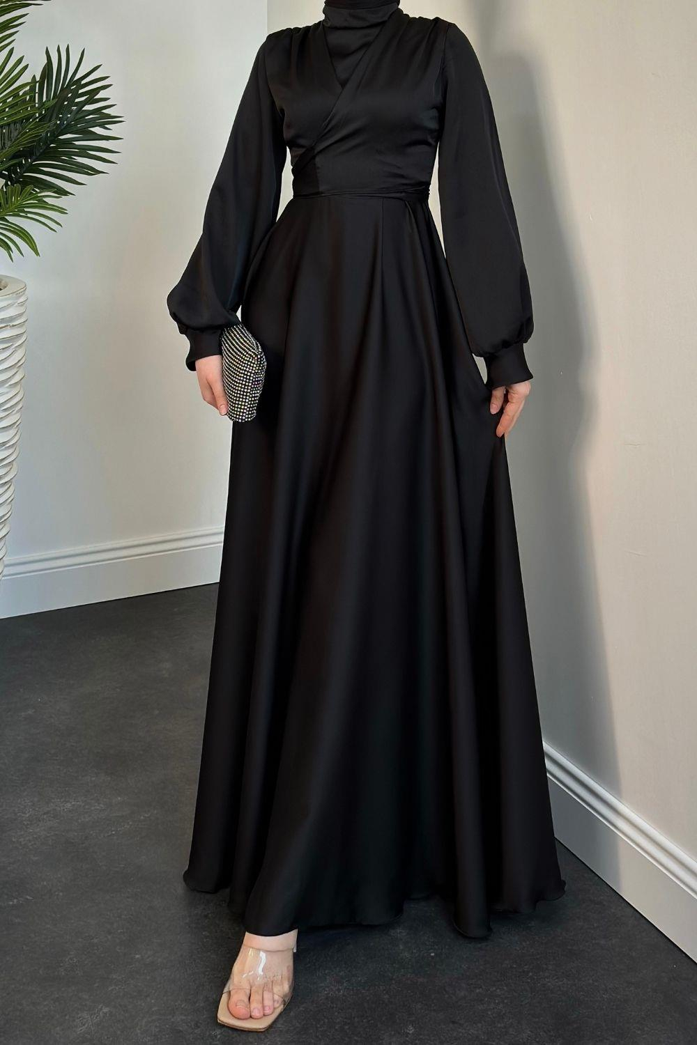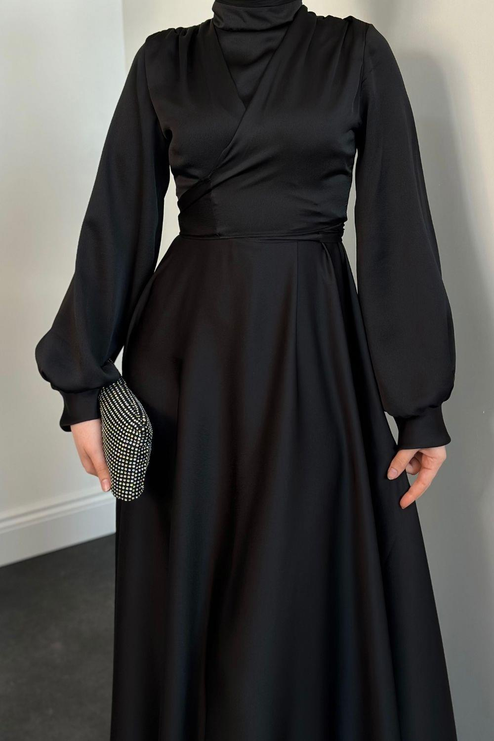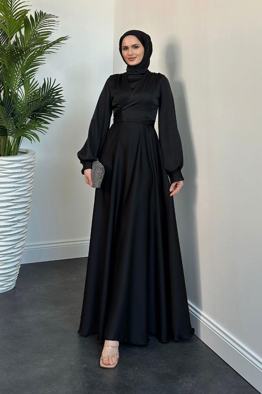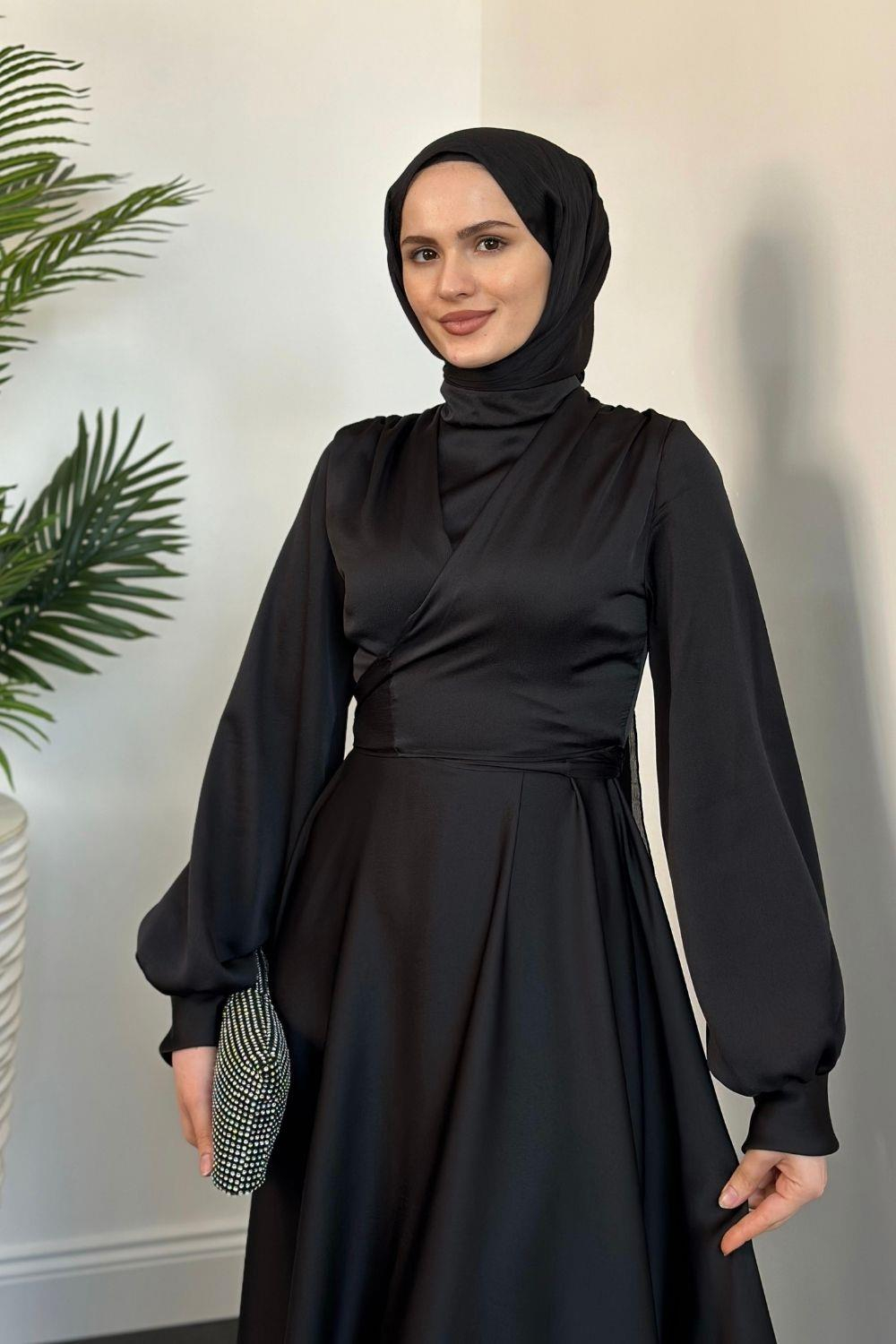 Isabella Kruvaze Detay Saten Abiye Siyah