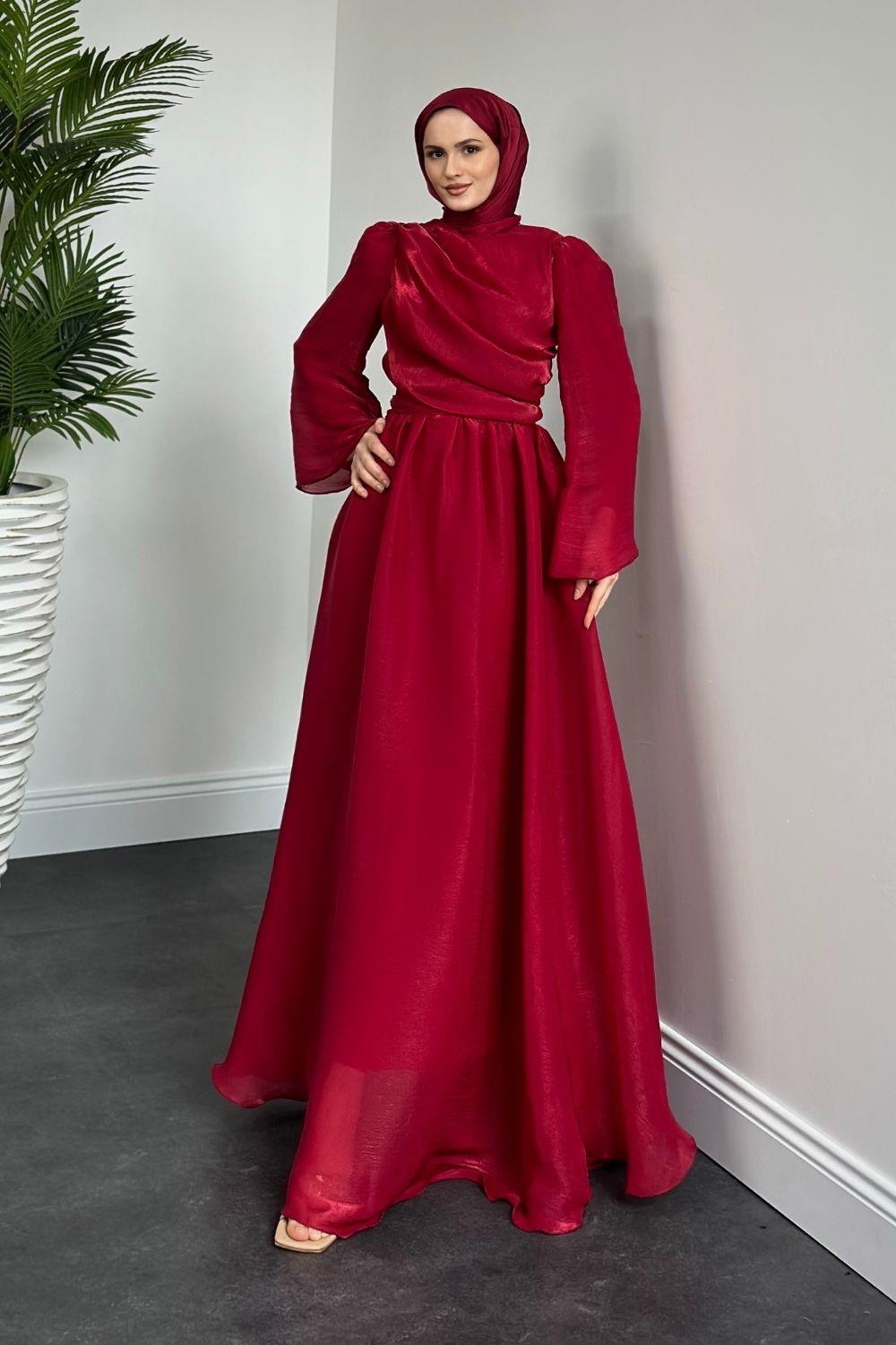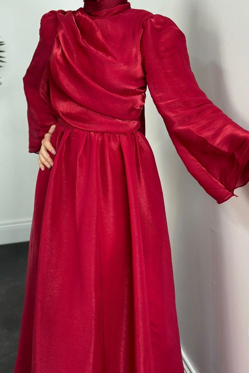 Margaret Drape Janjan Abiye Kırmızı