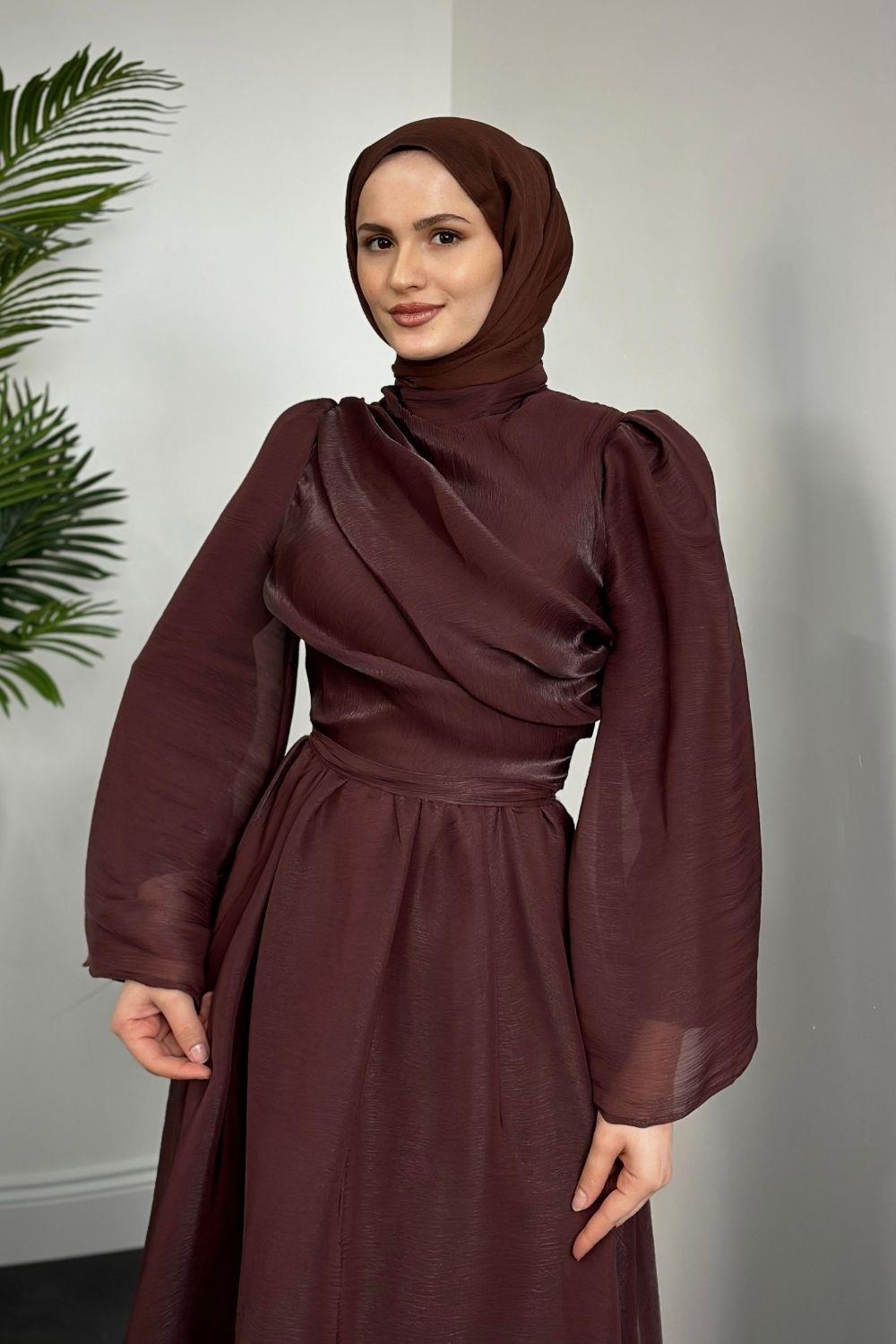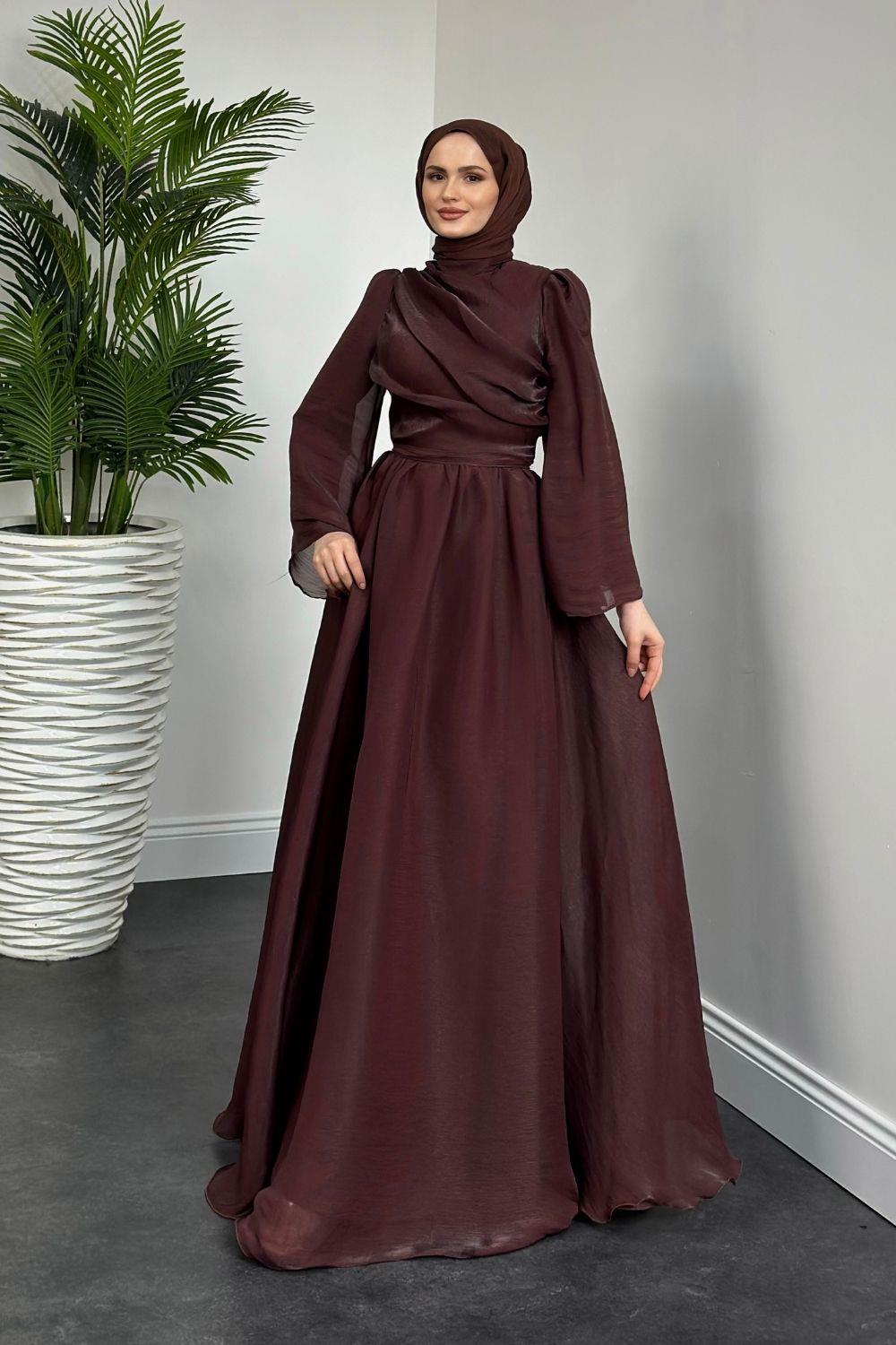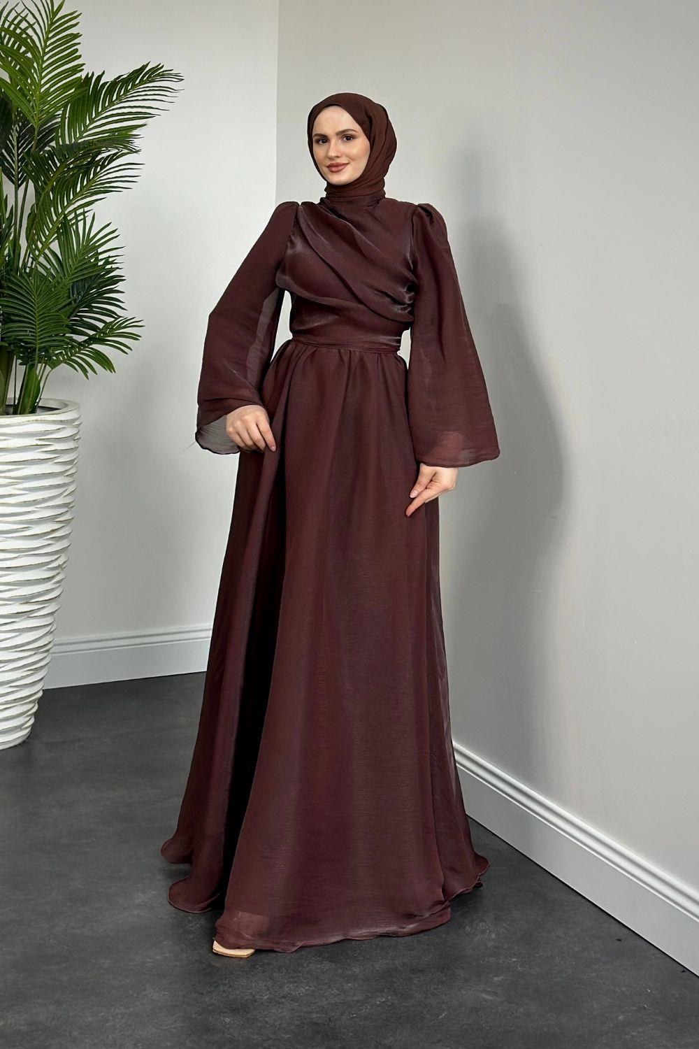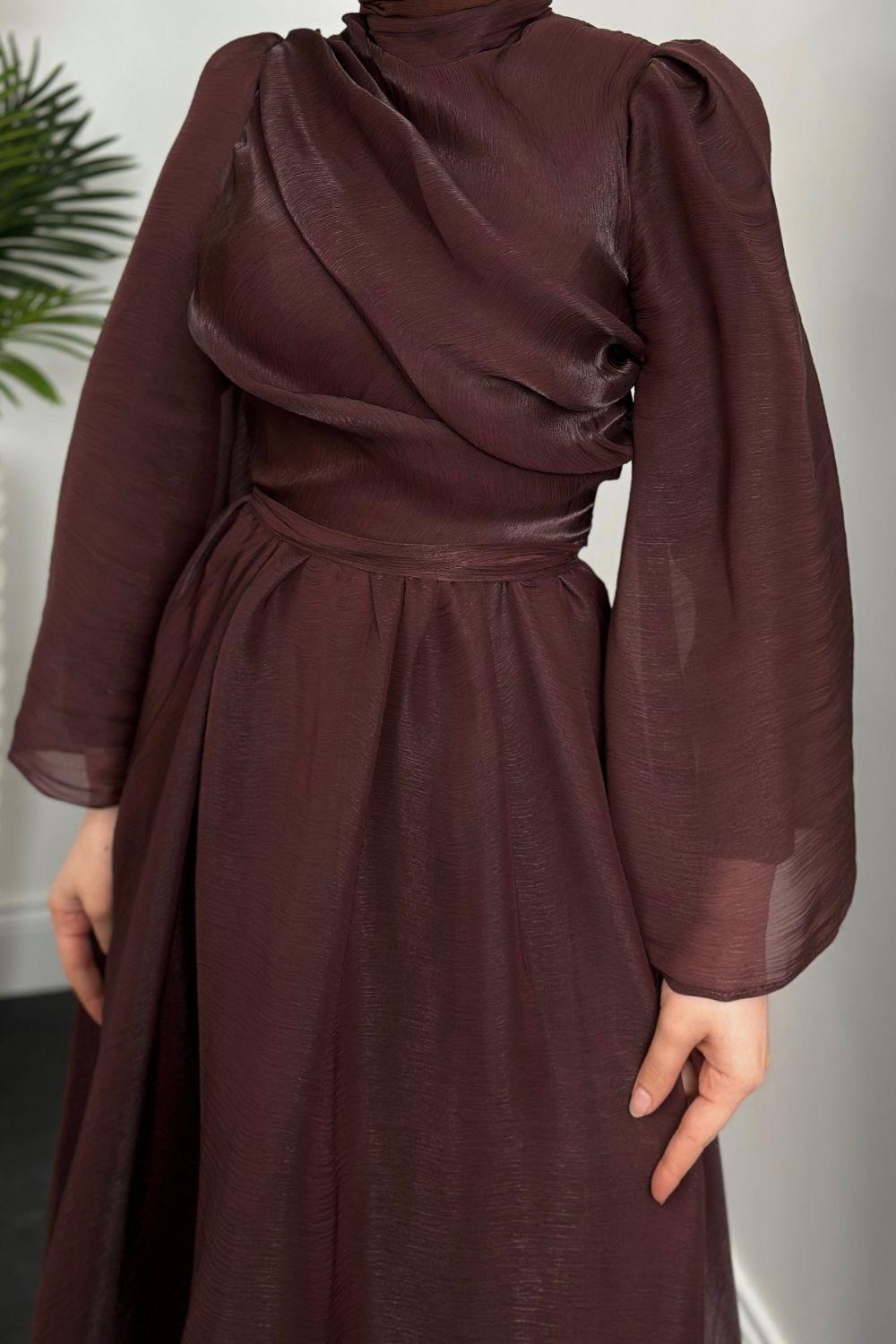 Margaret Drape Janjan Abiye Kahverengi