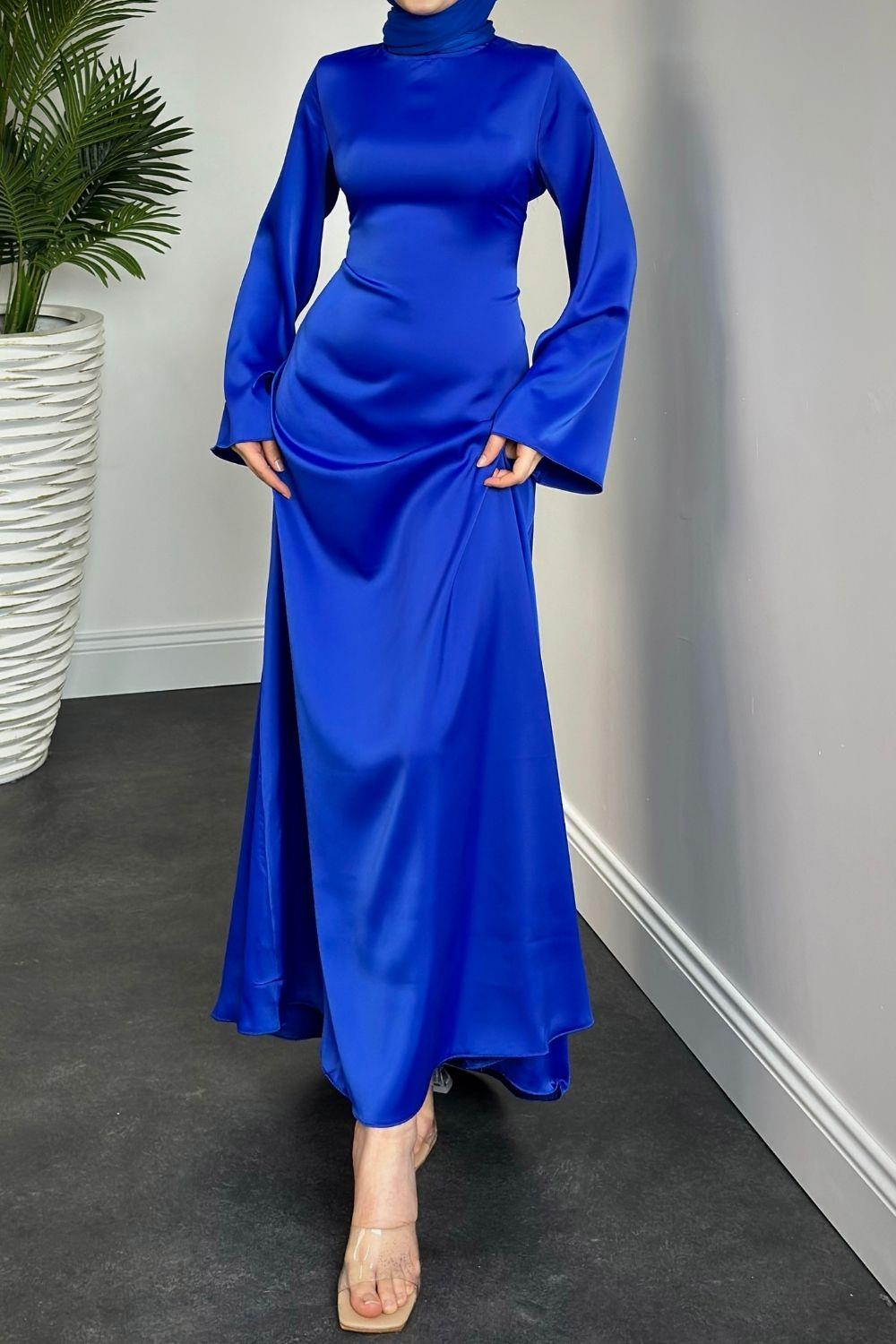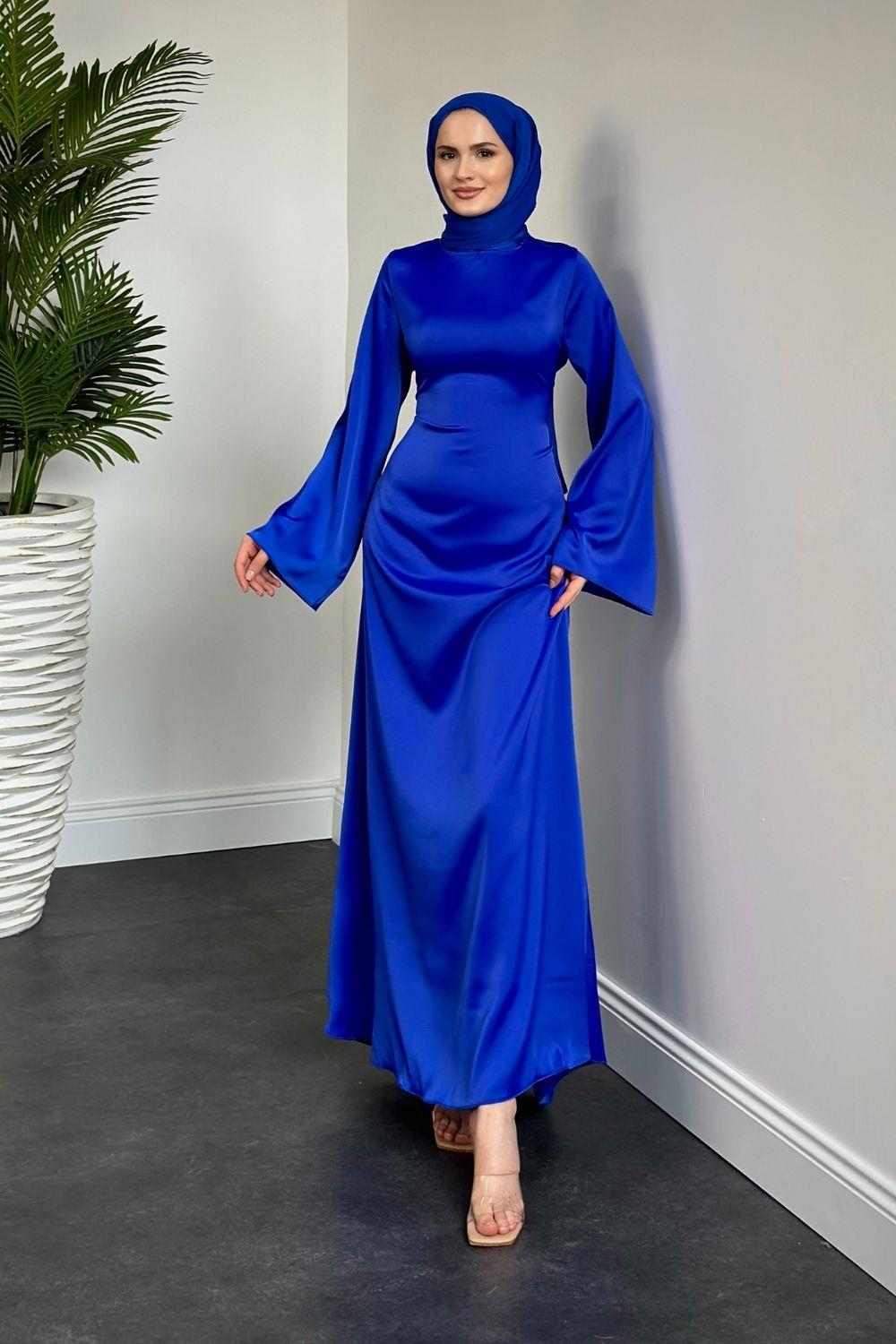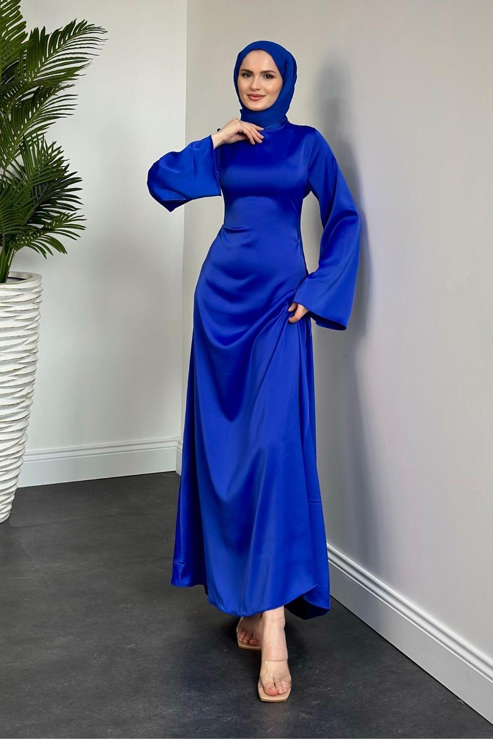 Kayra Arkadan Büzgülü Saten Abiye Saks