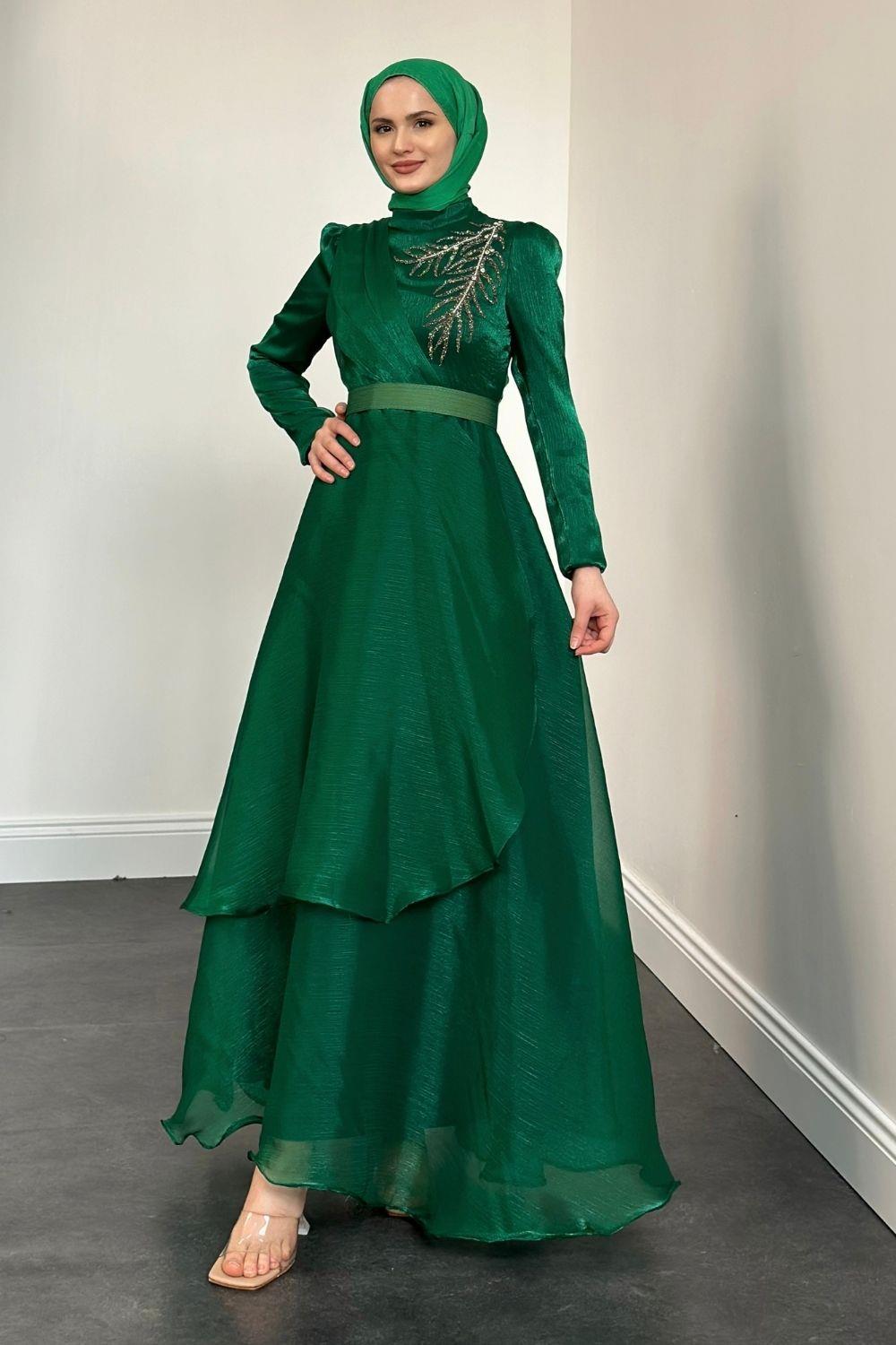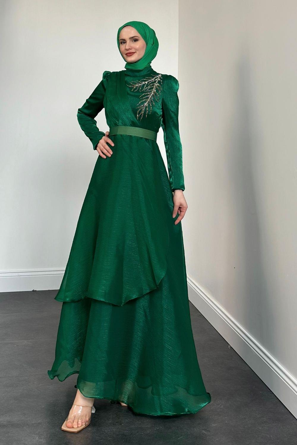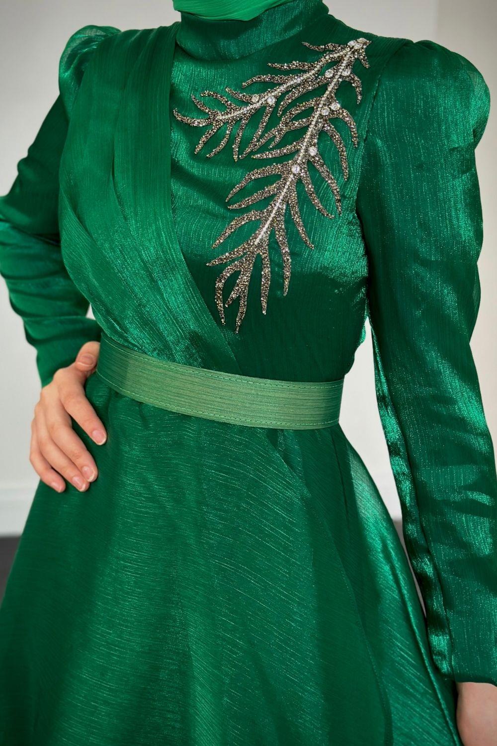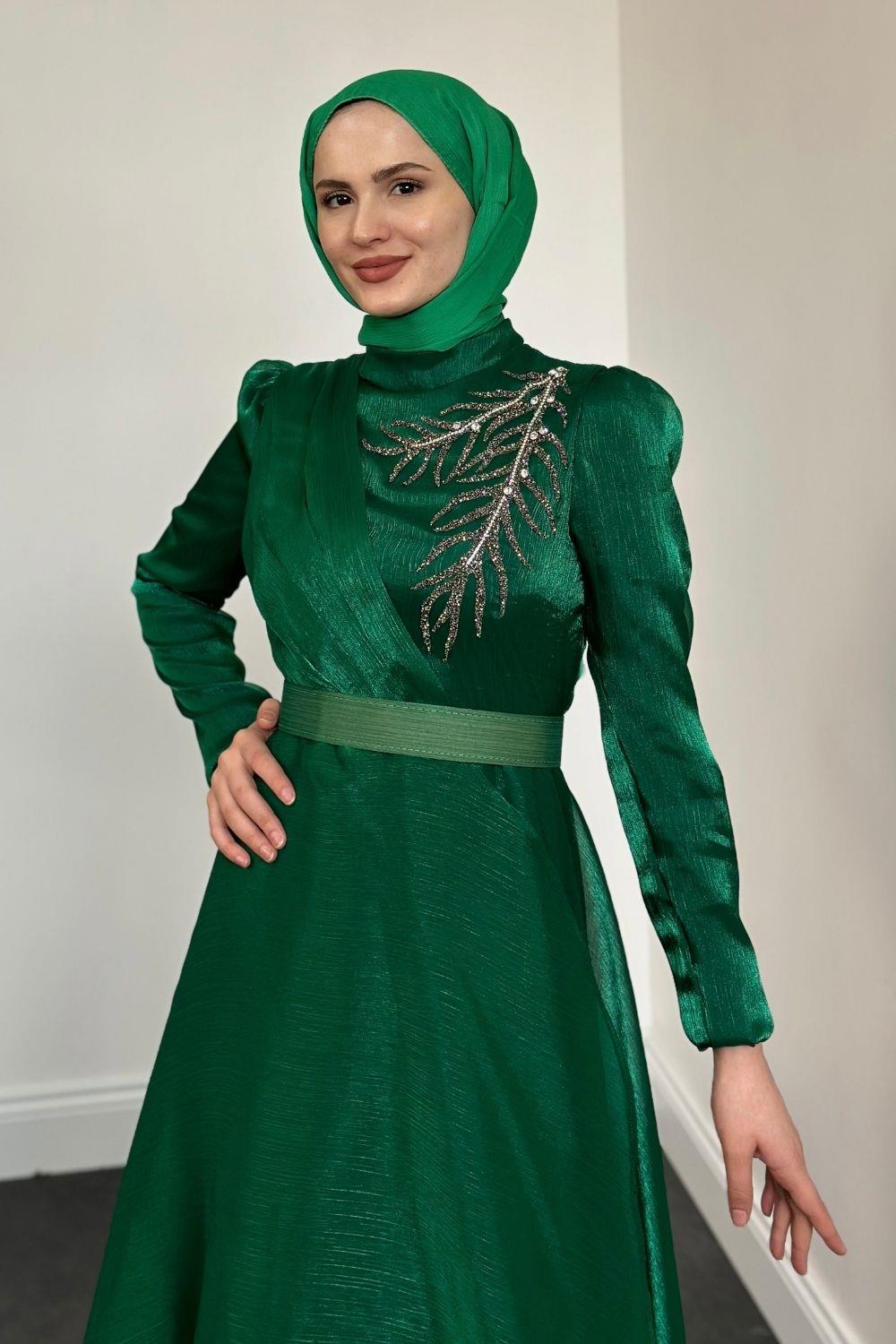 Ervah Taş Detay Abiye Yeşil