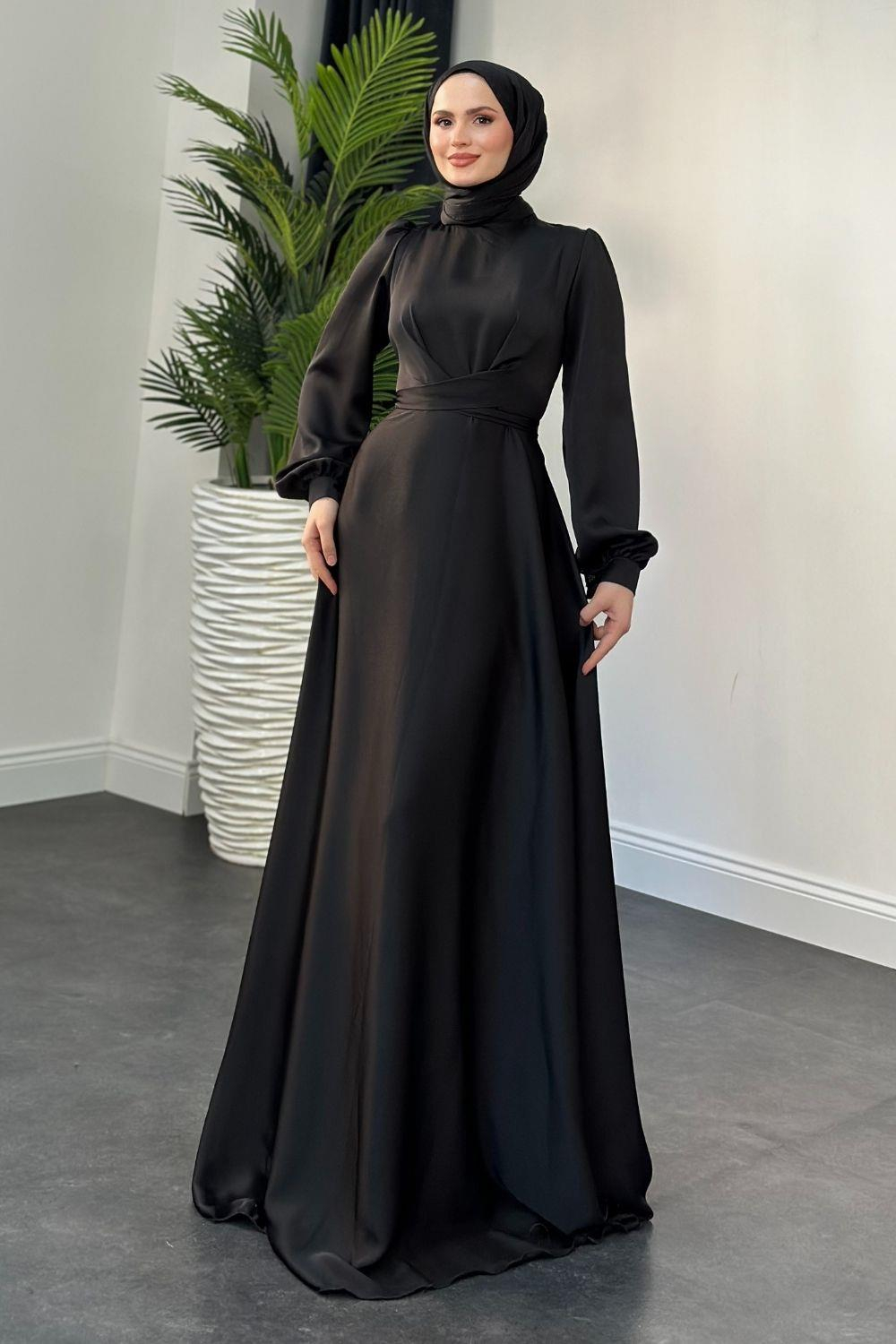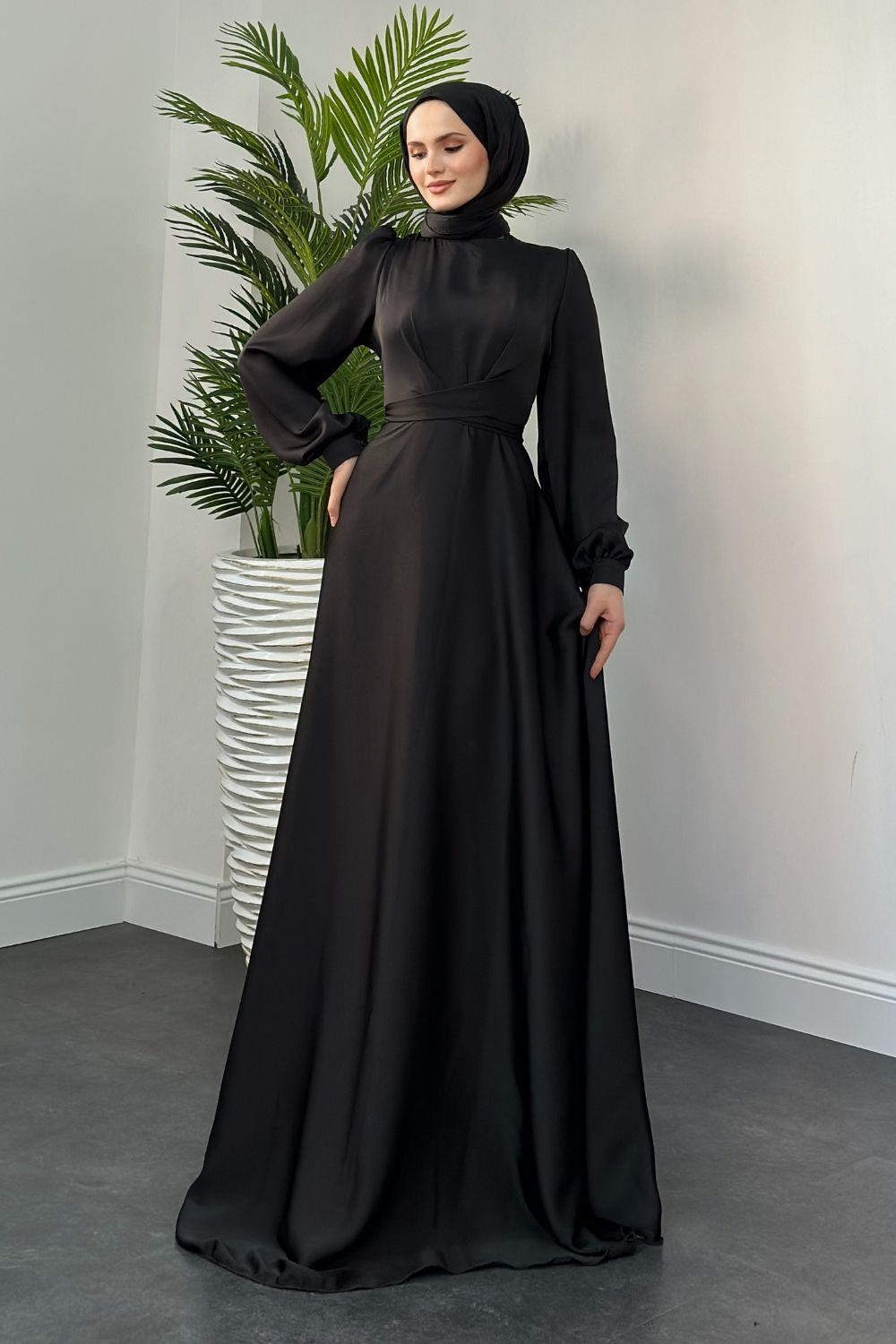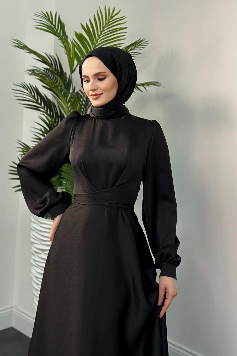 Samantha Önü Çapraz Detay Saten Abiye Siyah