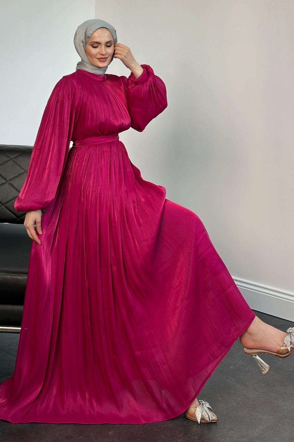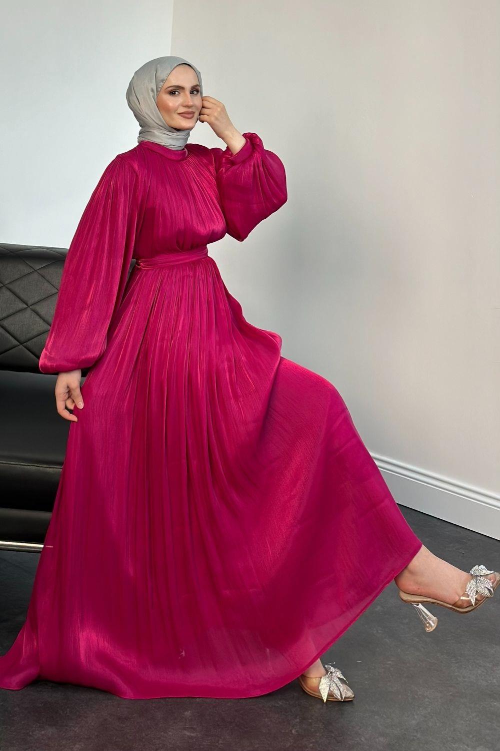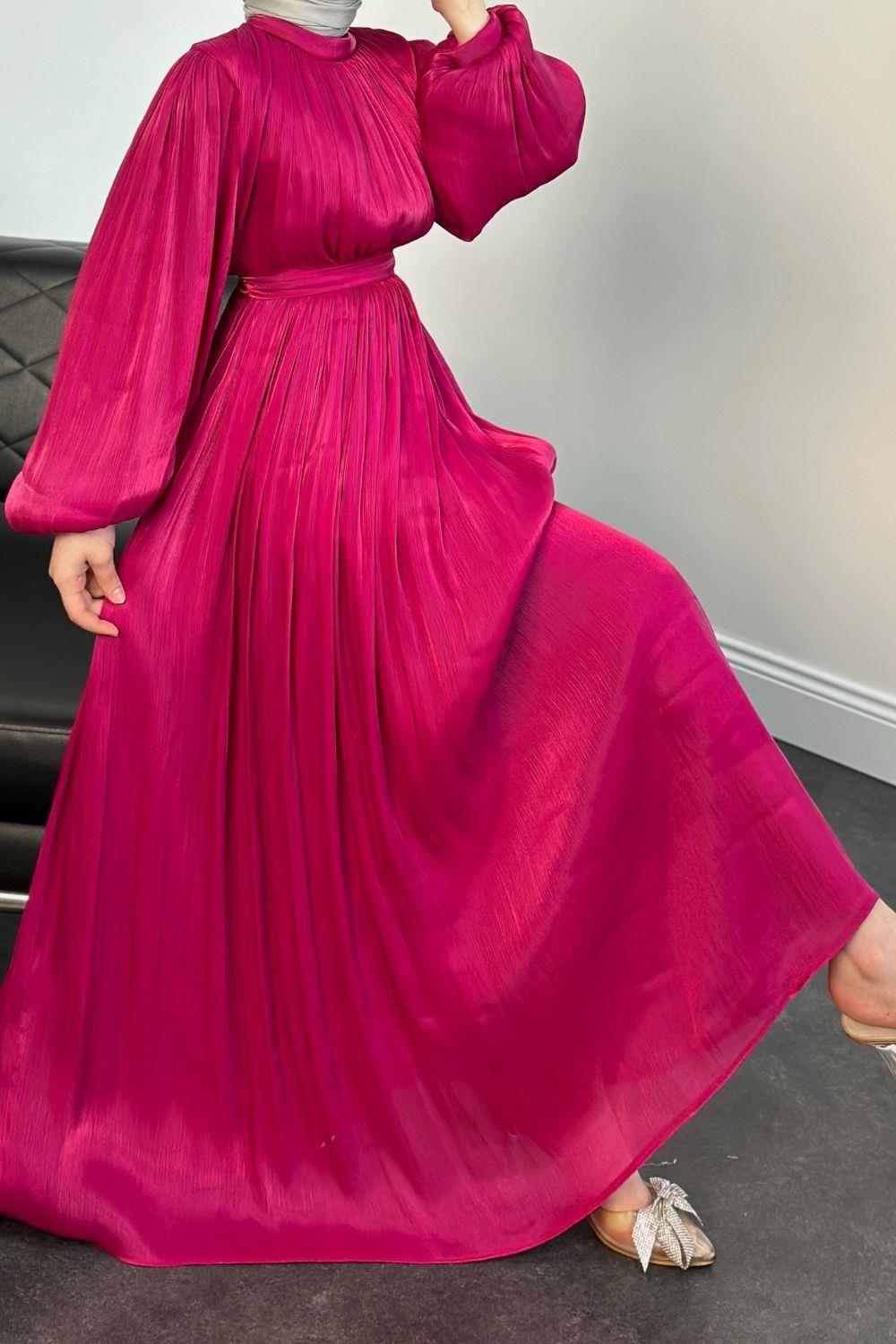 Hailey Janjan Kuşaklı Abiye Fuşya