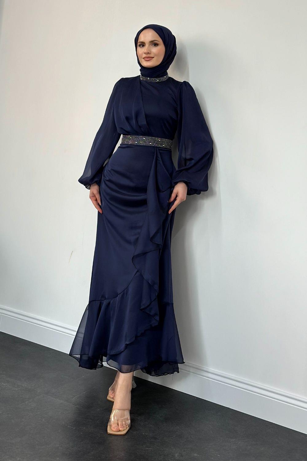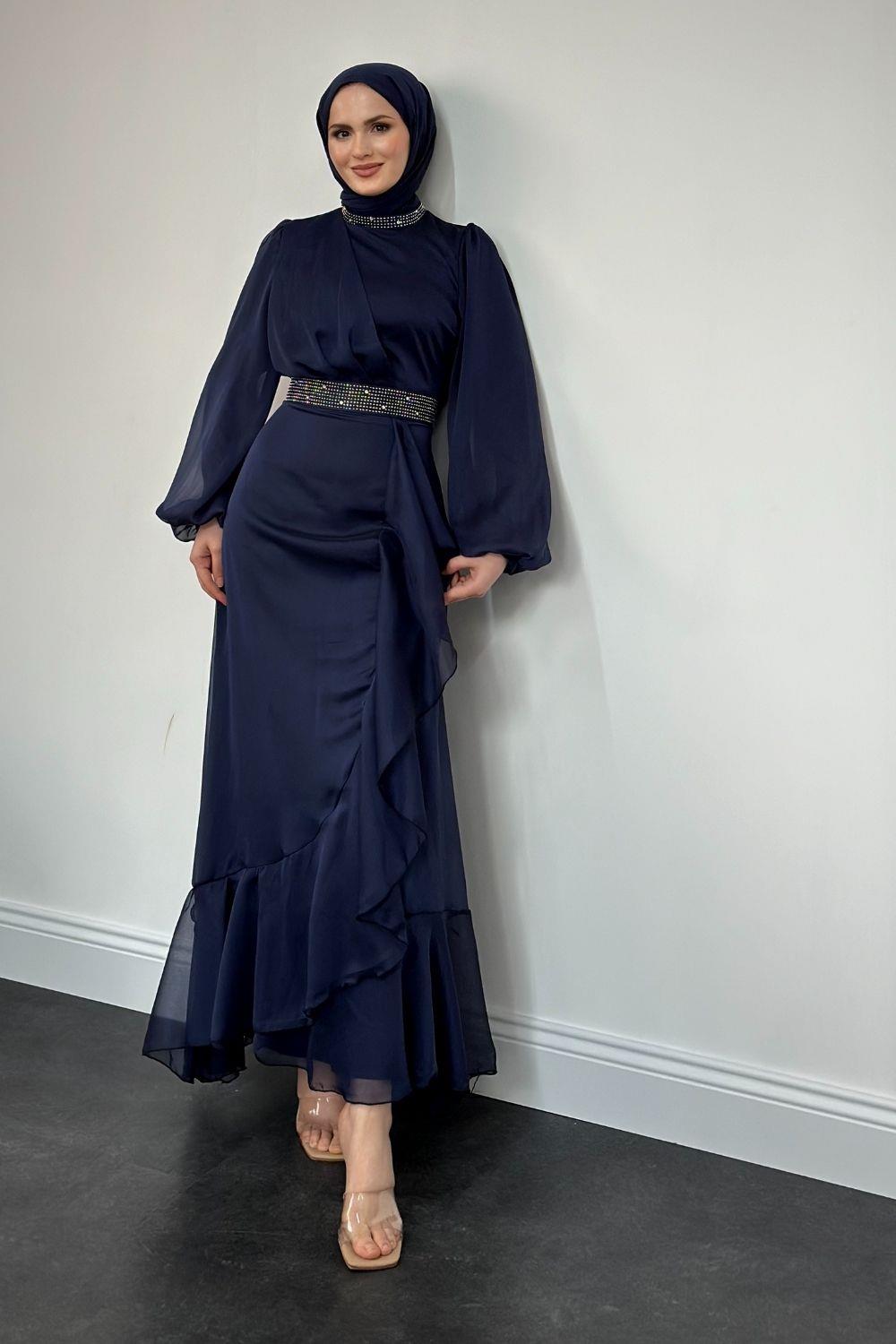 Efruz Janjan Önü Fırfır Abiye Lacivert