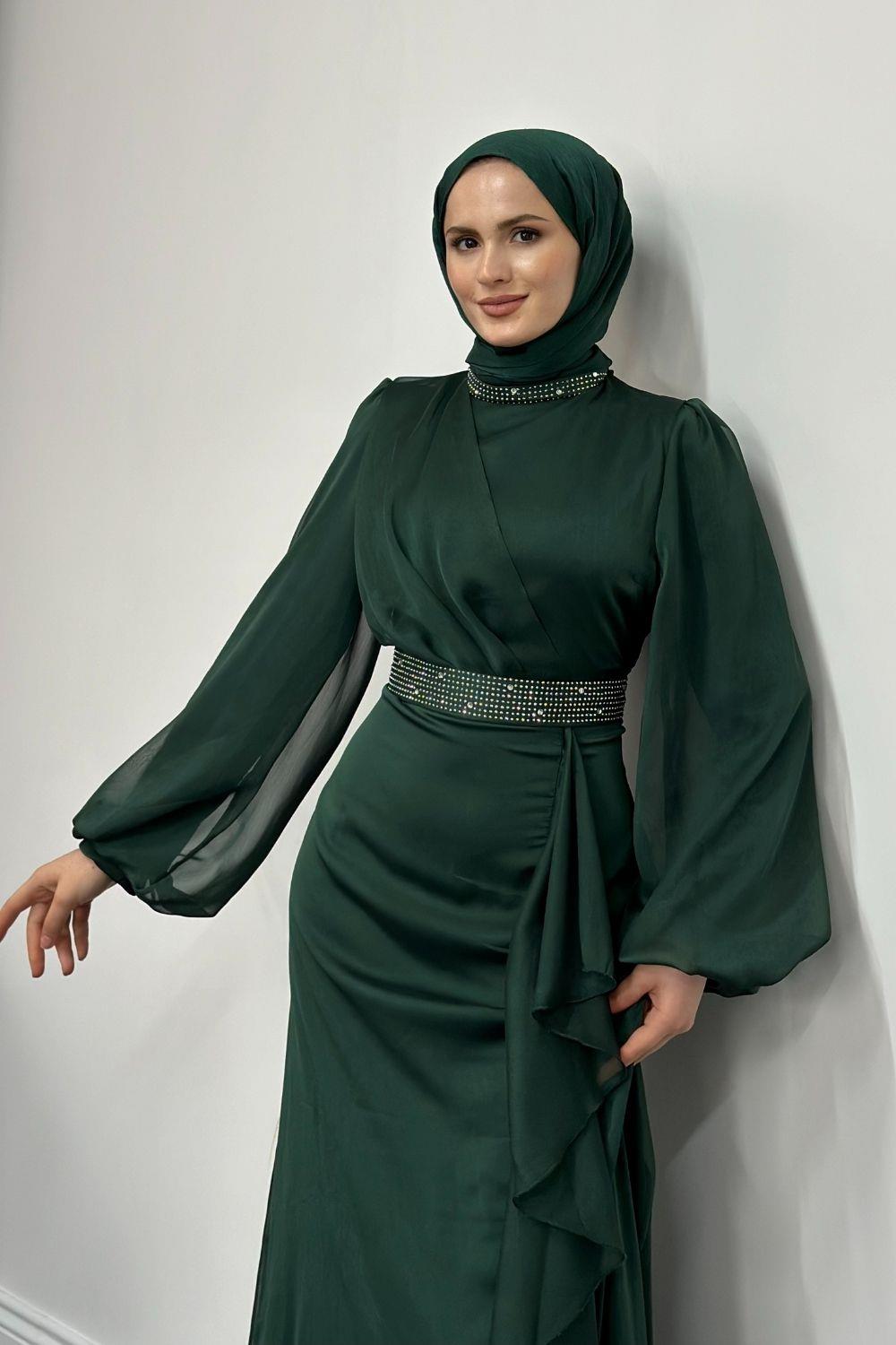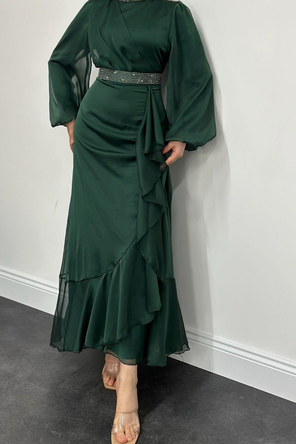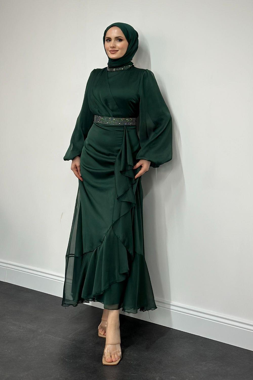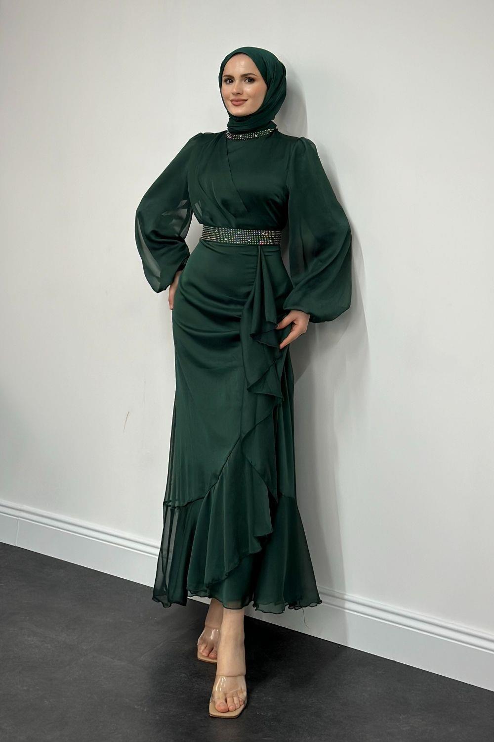 Efruz Janjan Önü Fırfır Abiye Zümrüt