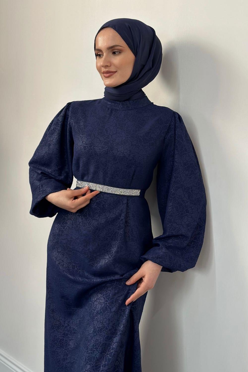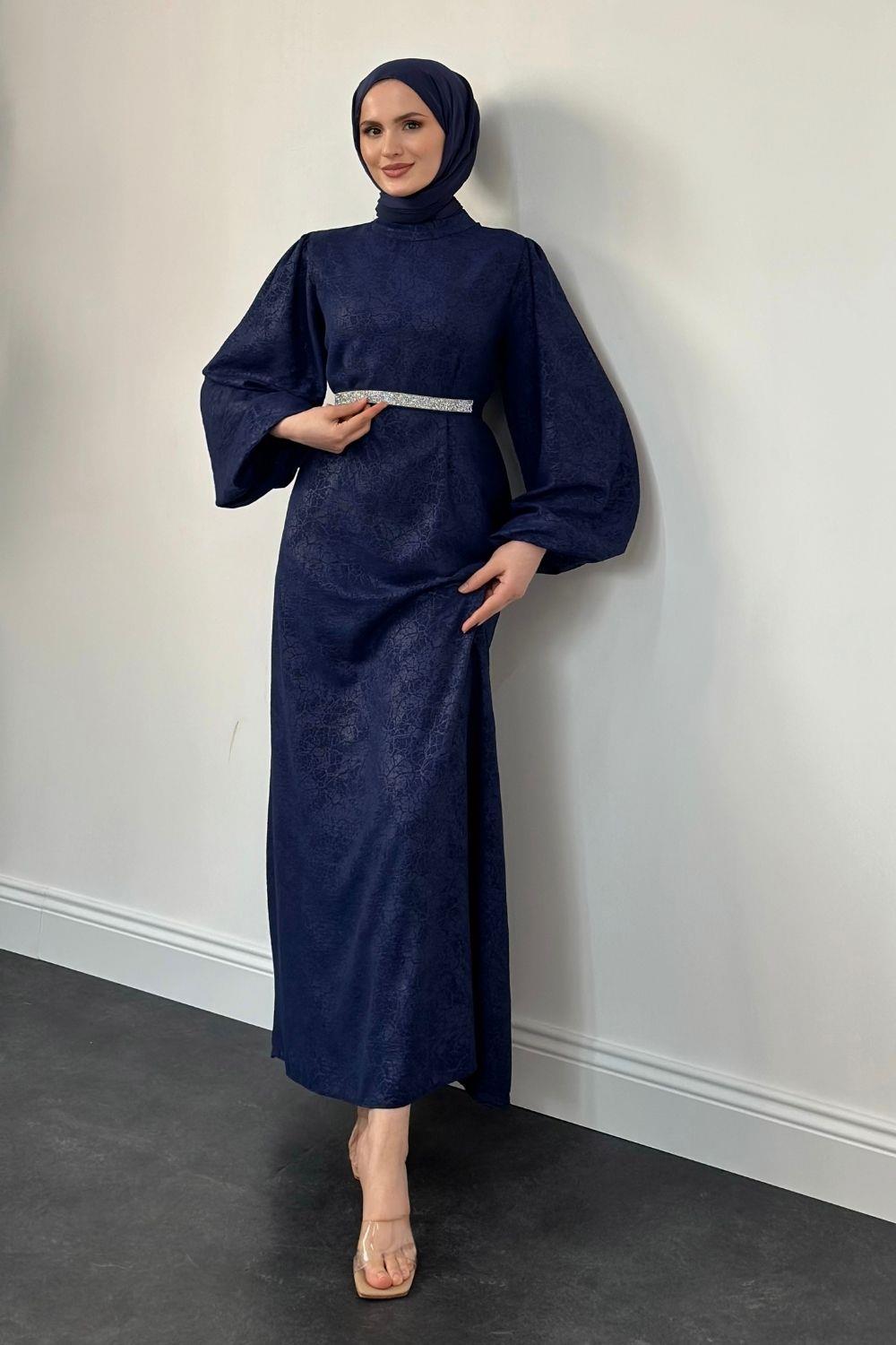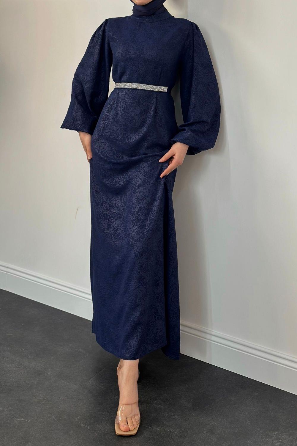 Hannah Beli Taşlı Abiye Lacivert