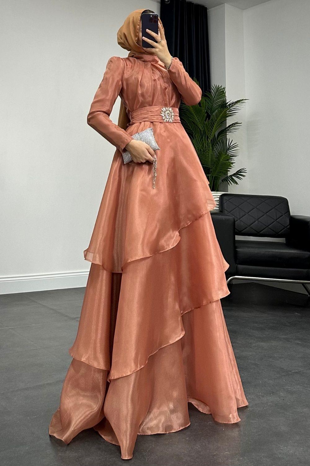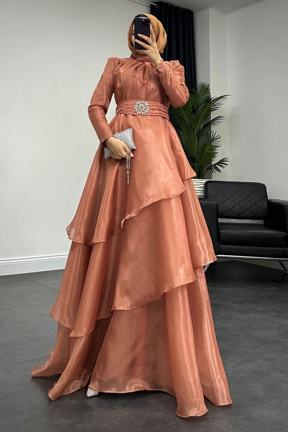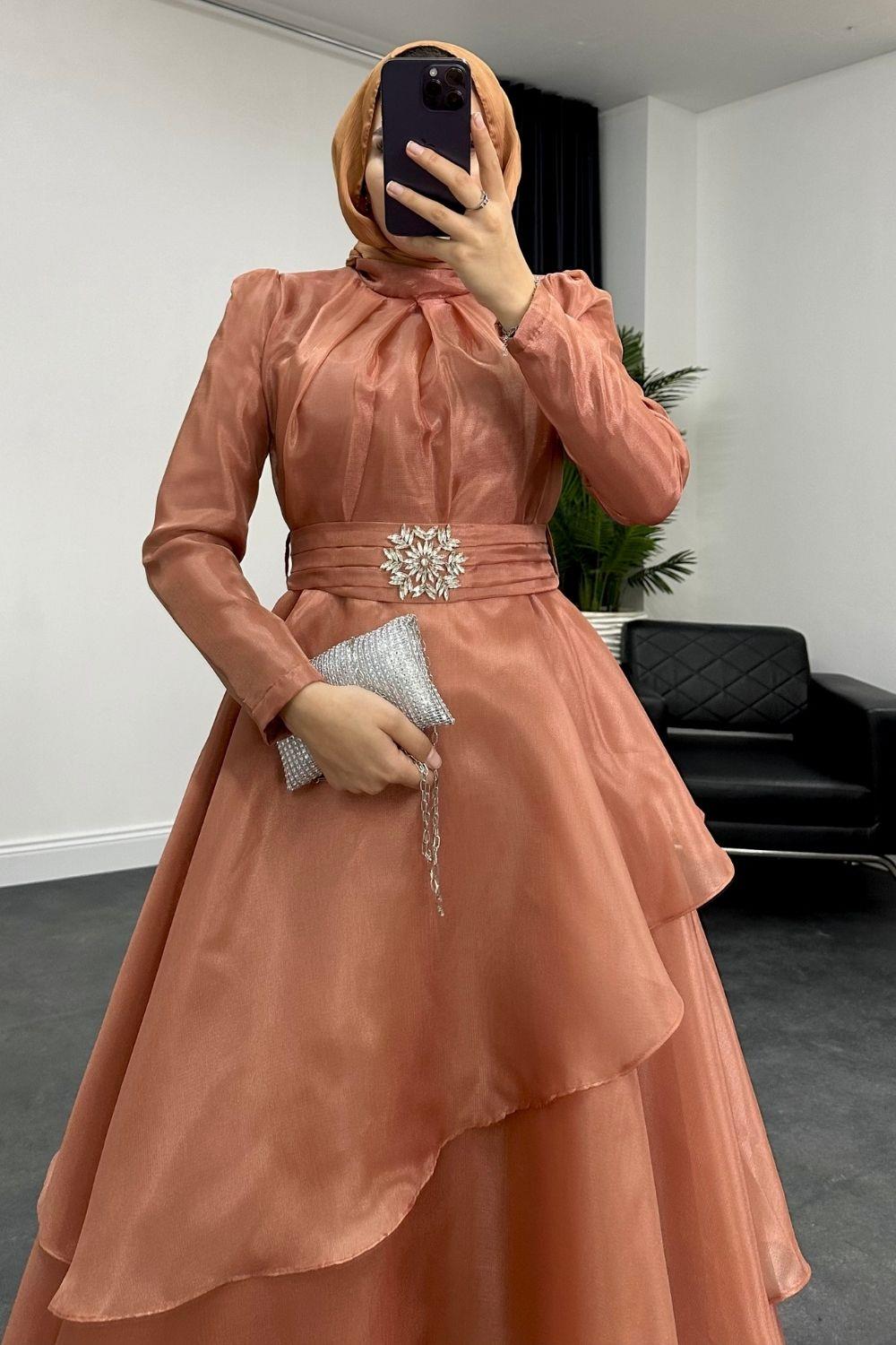 Şazeli Taş Tokalı Abiye Soğan Kabuğu