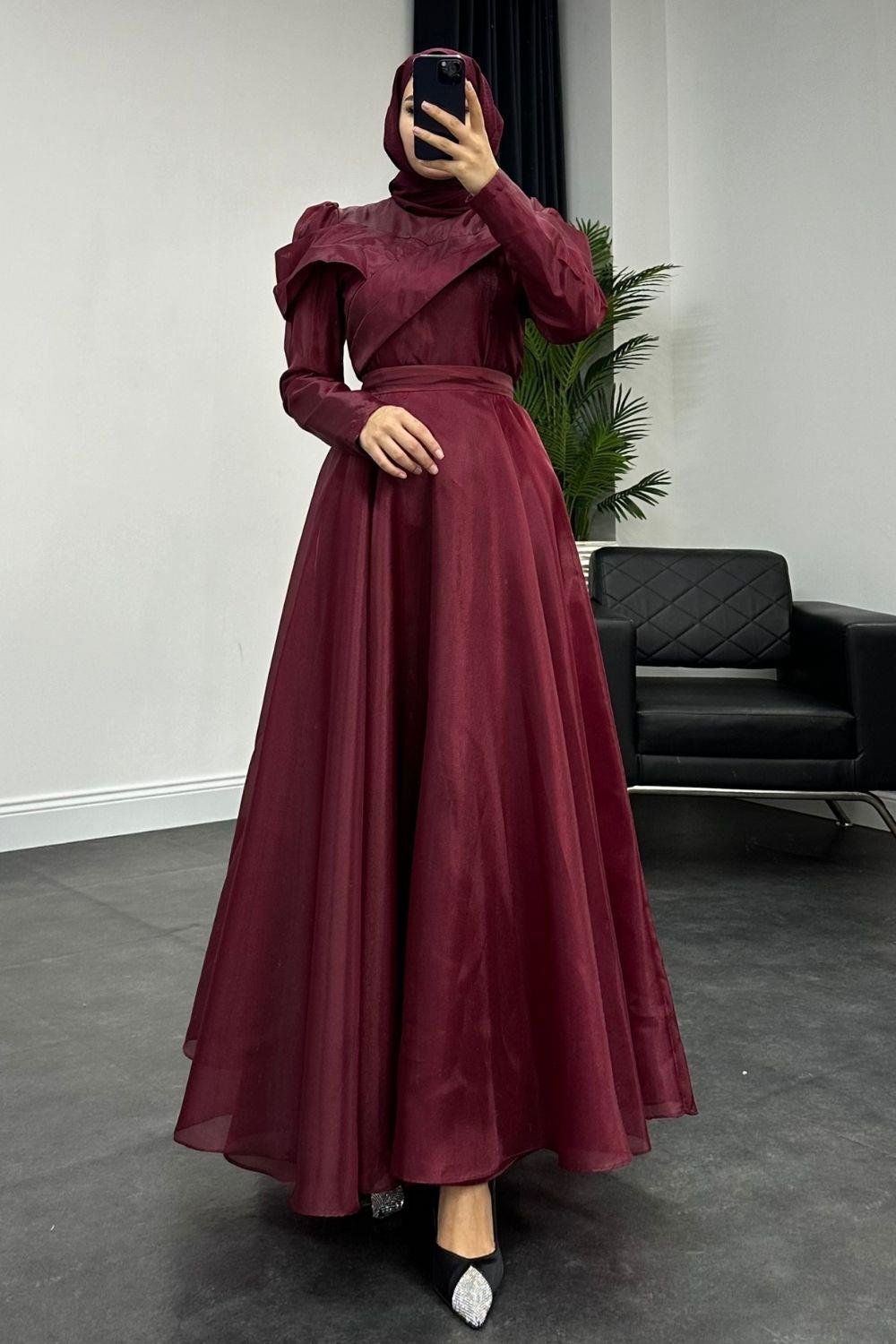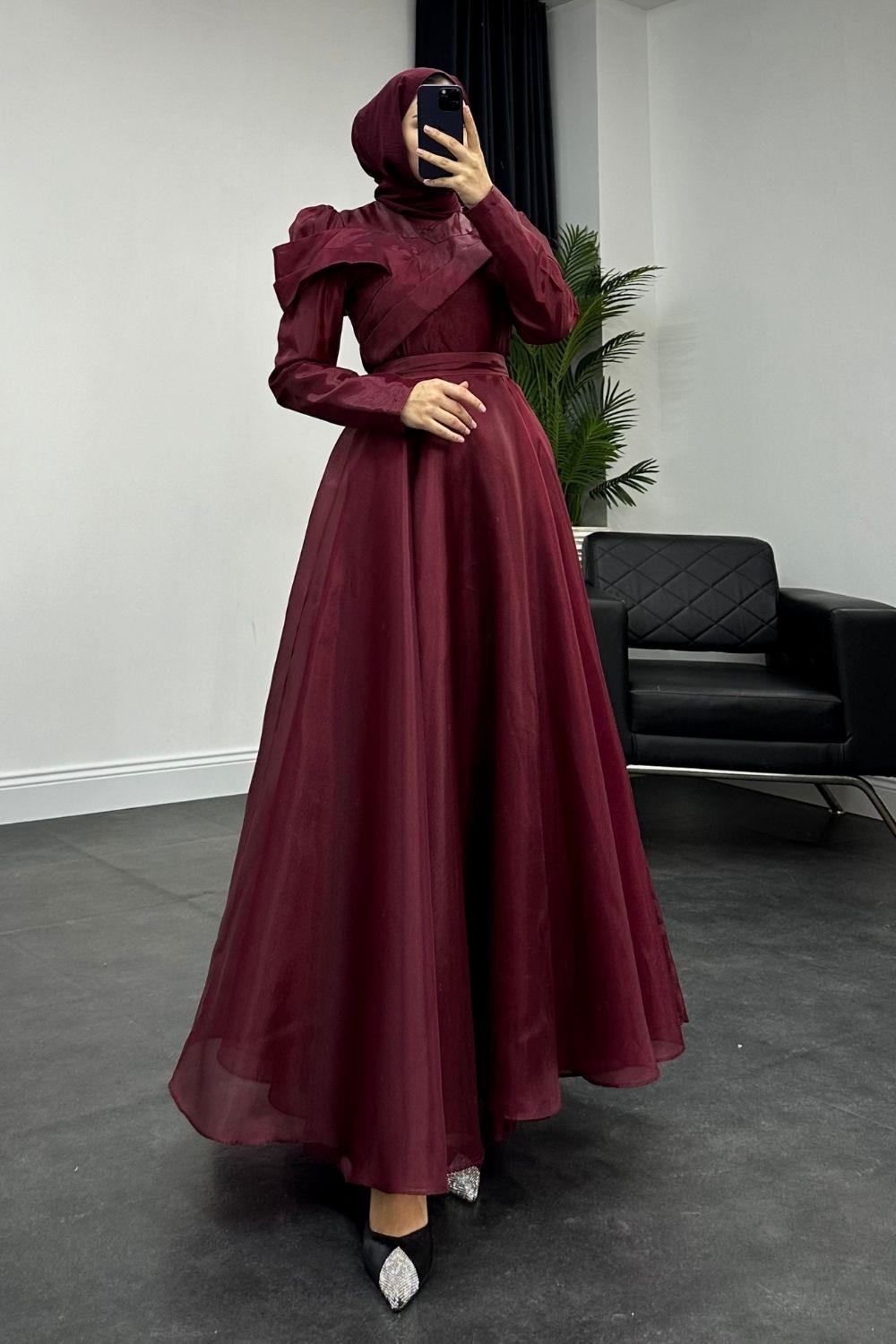 Longus Hayal Tül Abiye Bordo