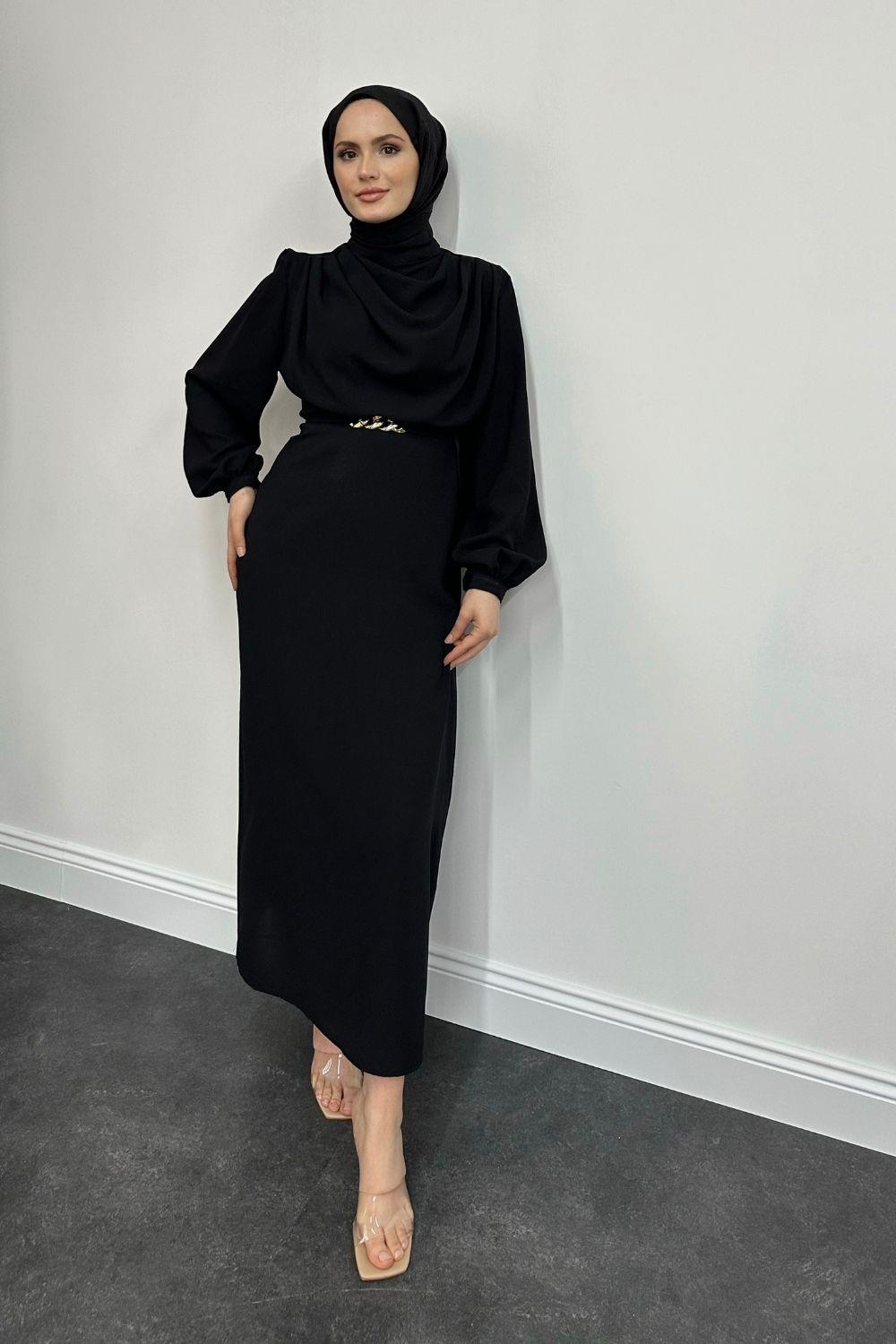 Meridan Üstü Drape Krep Abiye Siyah
