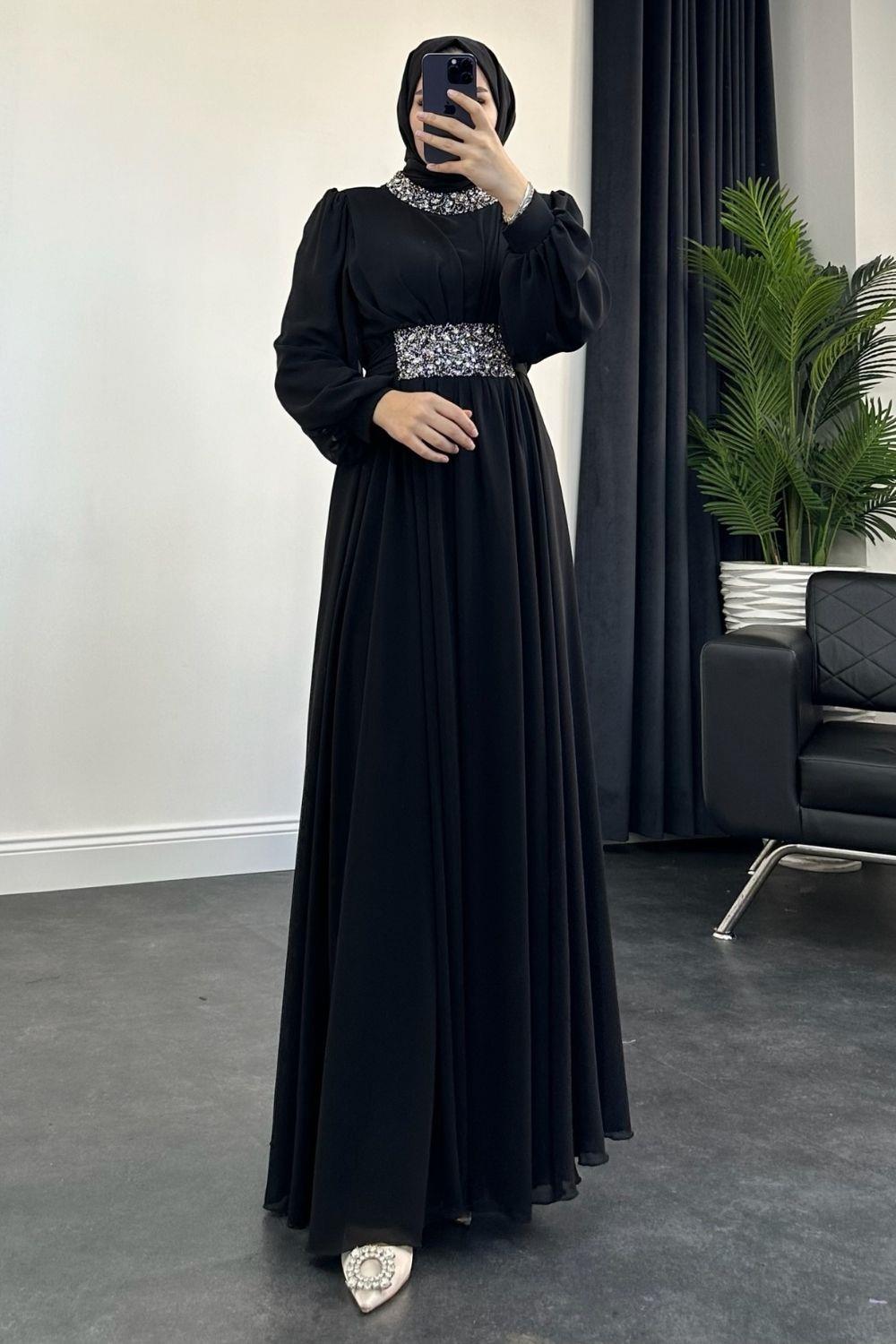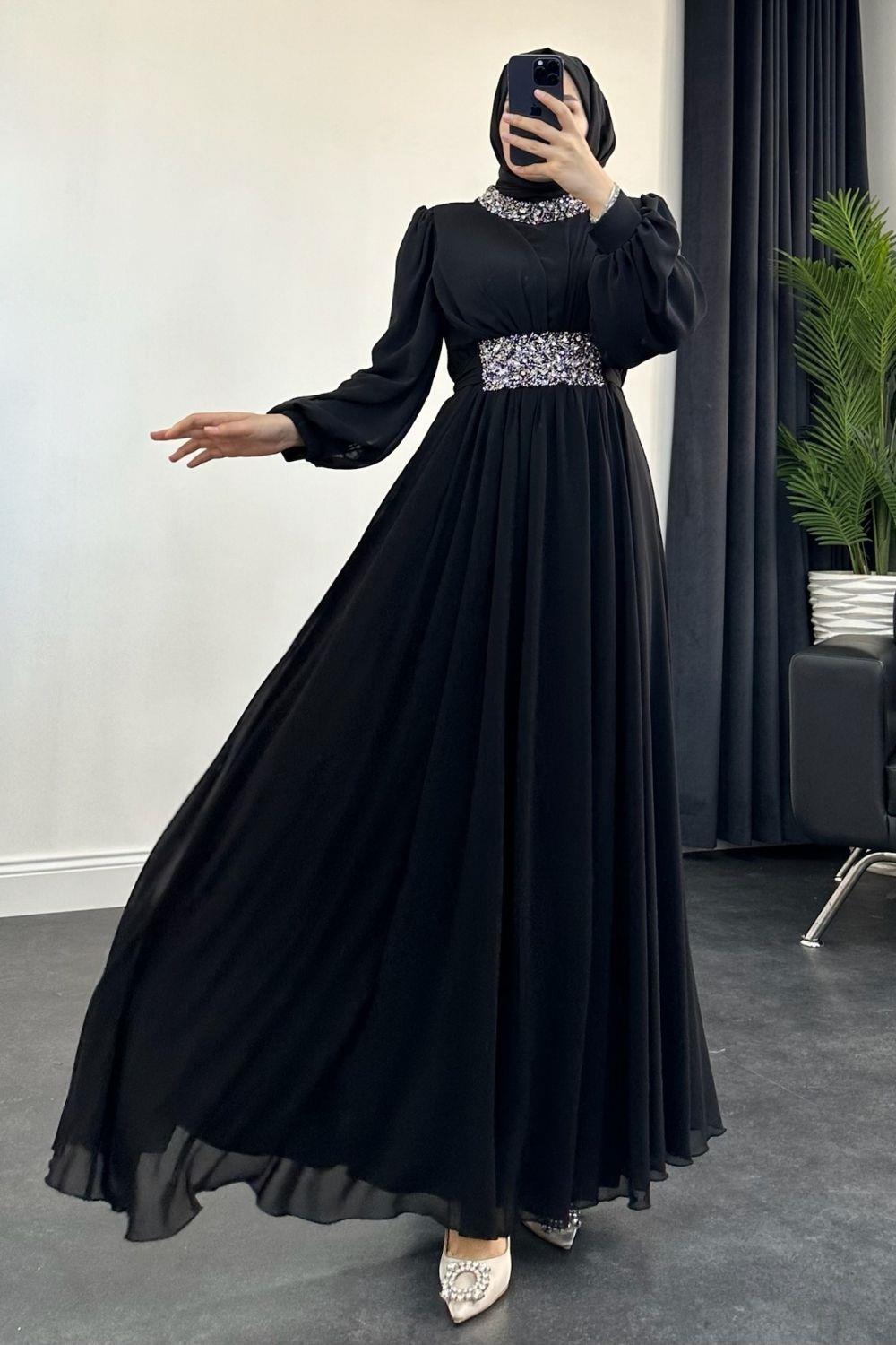 Mishe Şifon Abiye Siyah