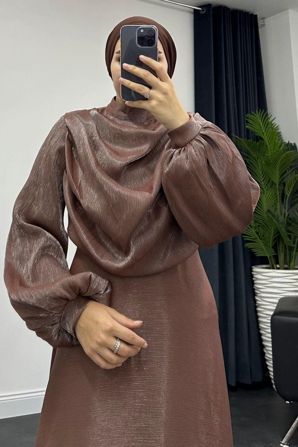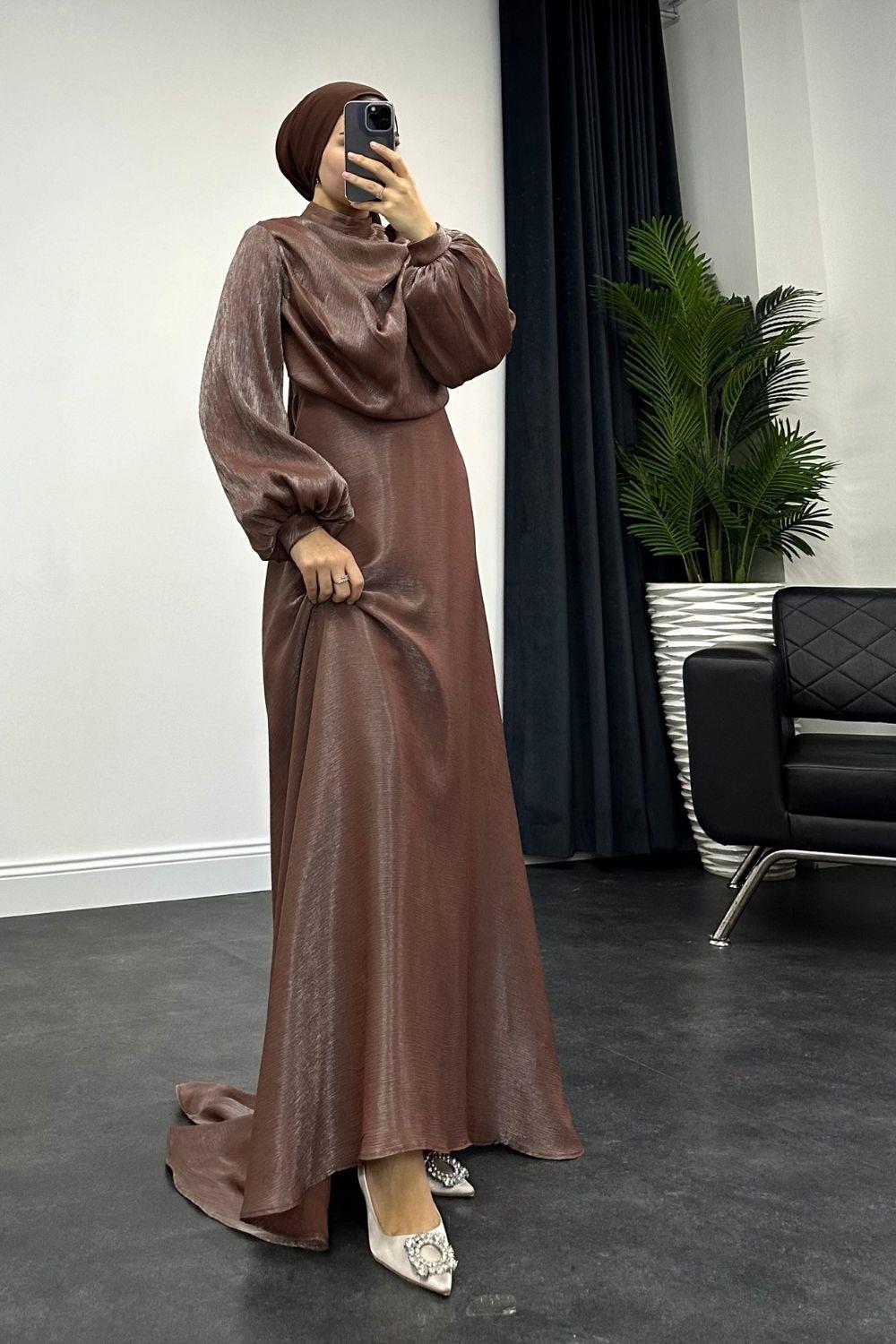 Sadem Volanlı Kuyruklu Janjan Abiye Kahverengi
