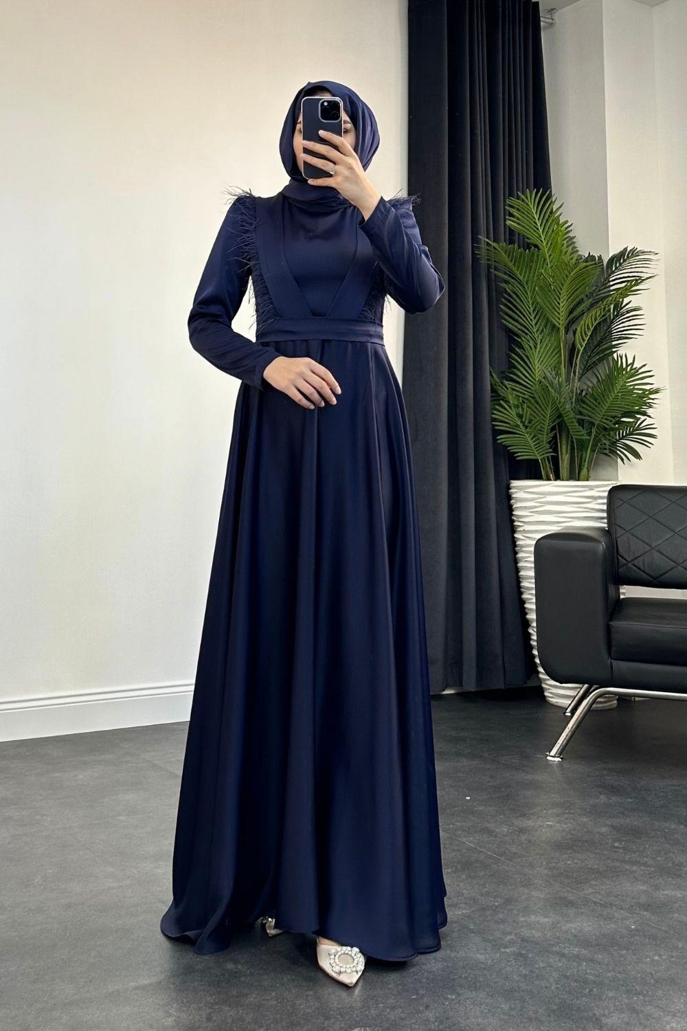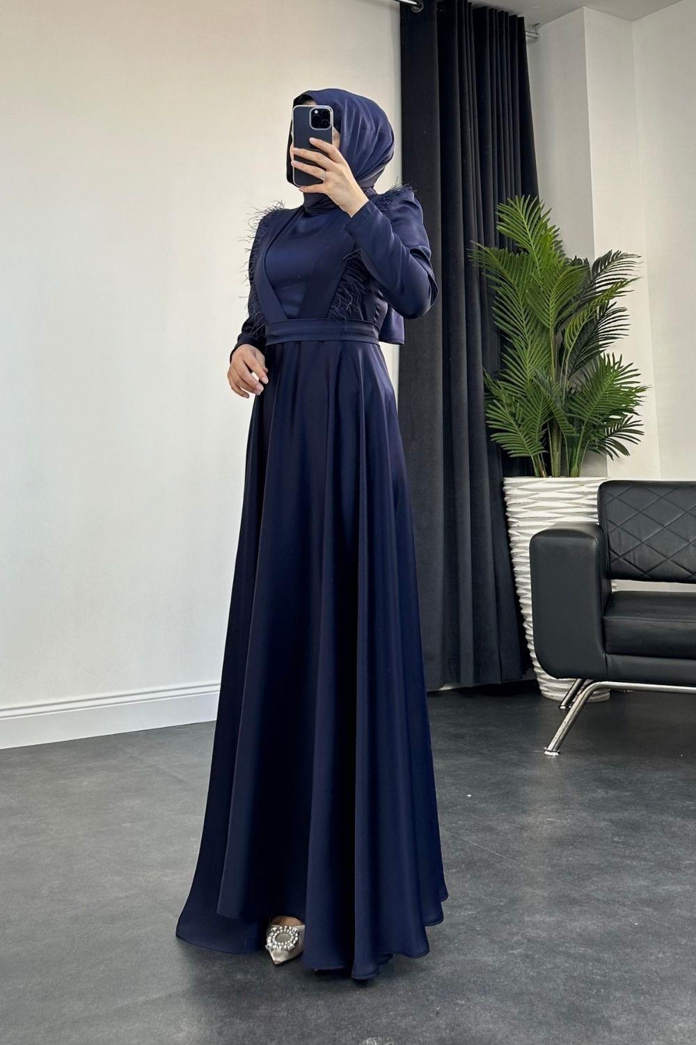 Rishi Tüy Detay Saten Abiye Lacivert