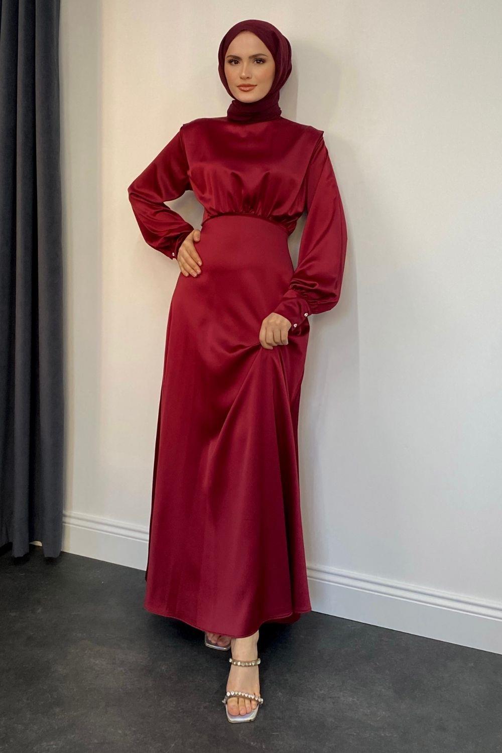 Holly Saten Abiye Bordo