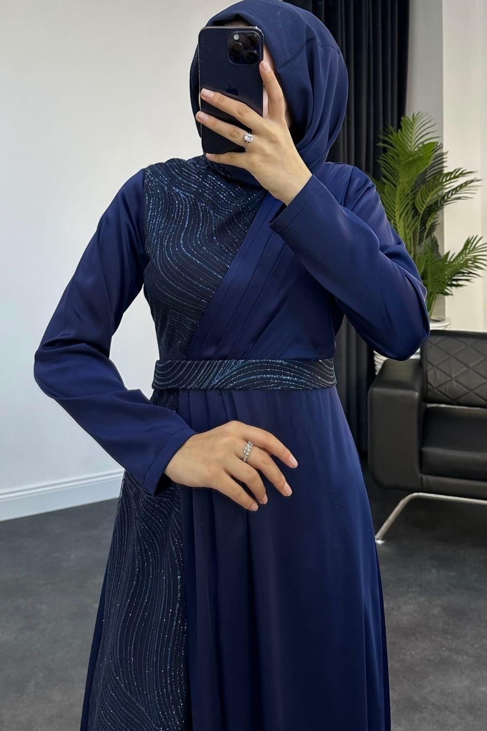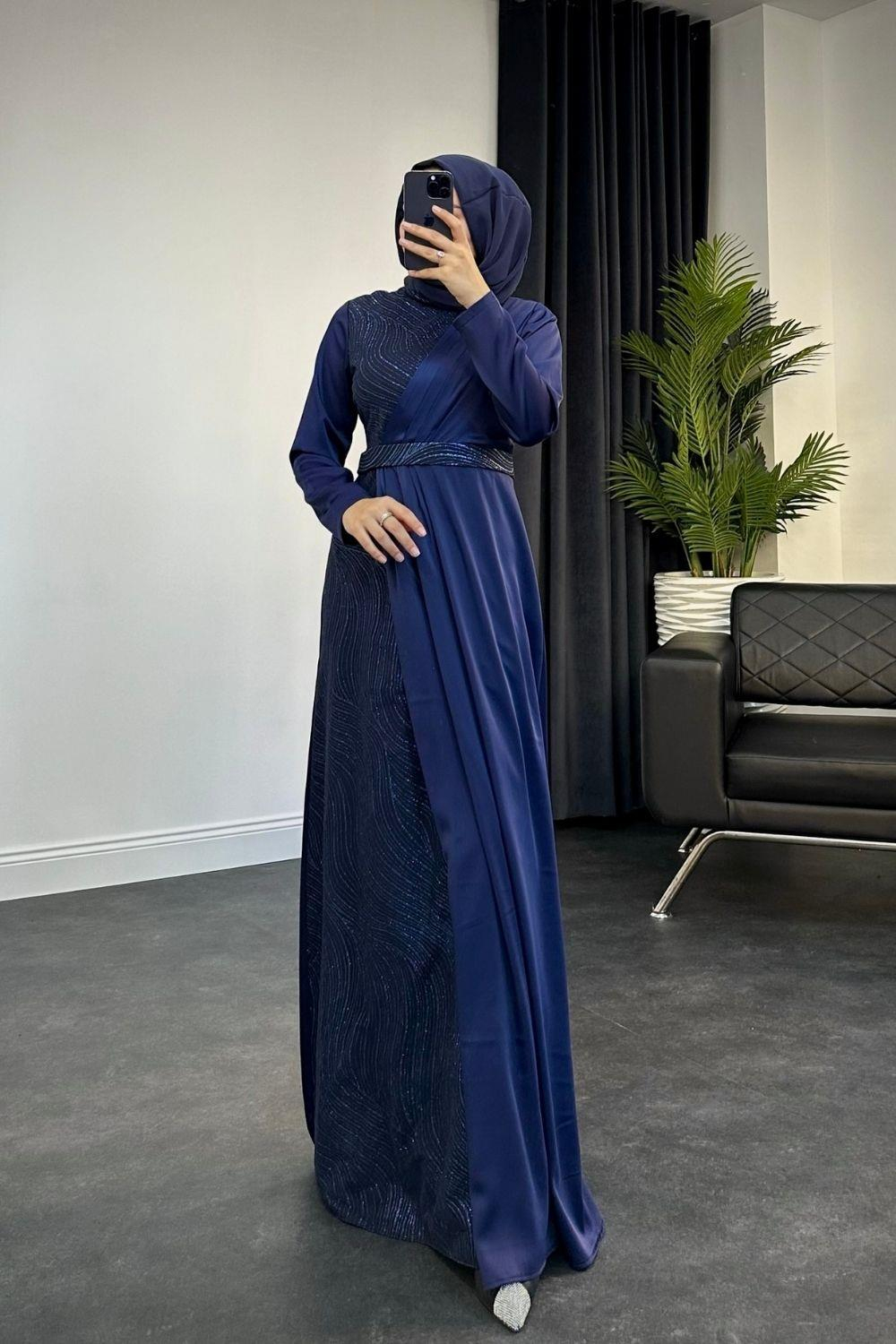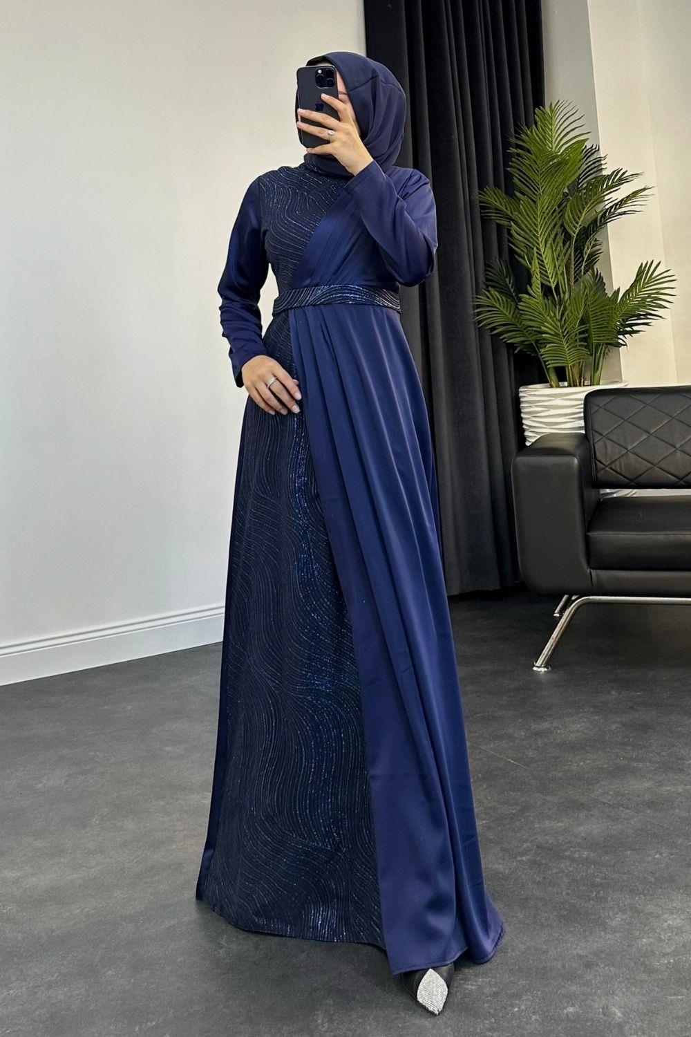 Antea Saten Simli Abiye Lacivert