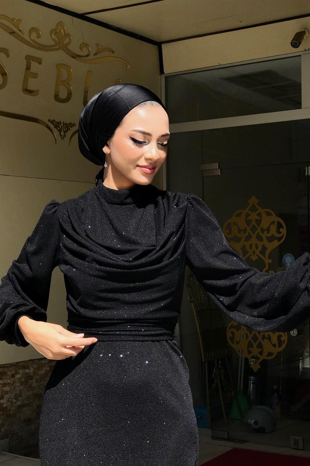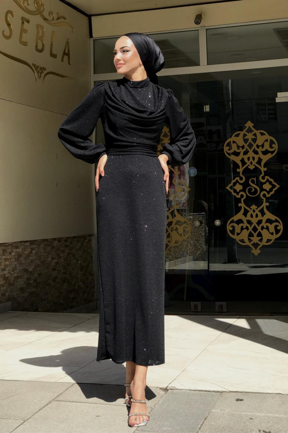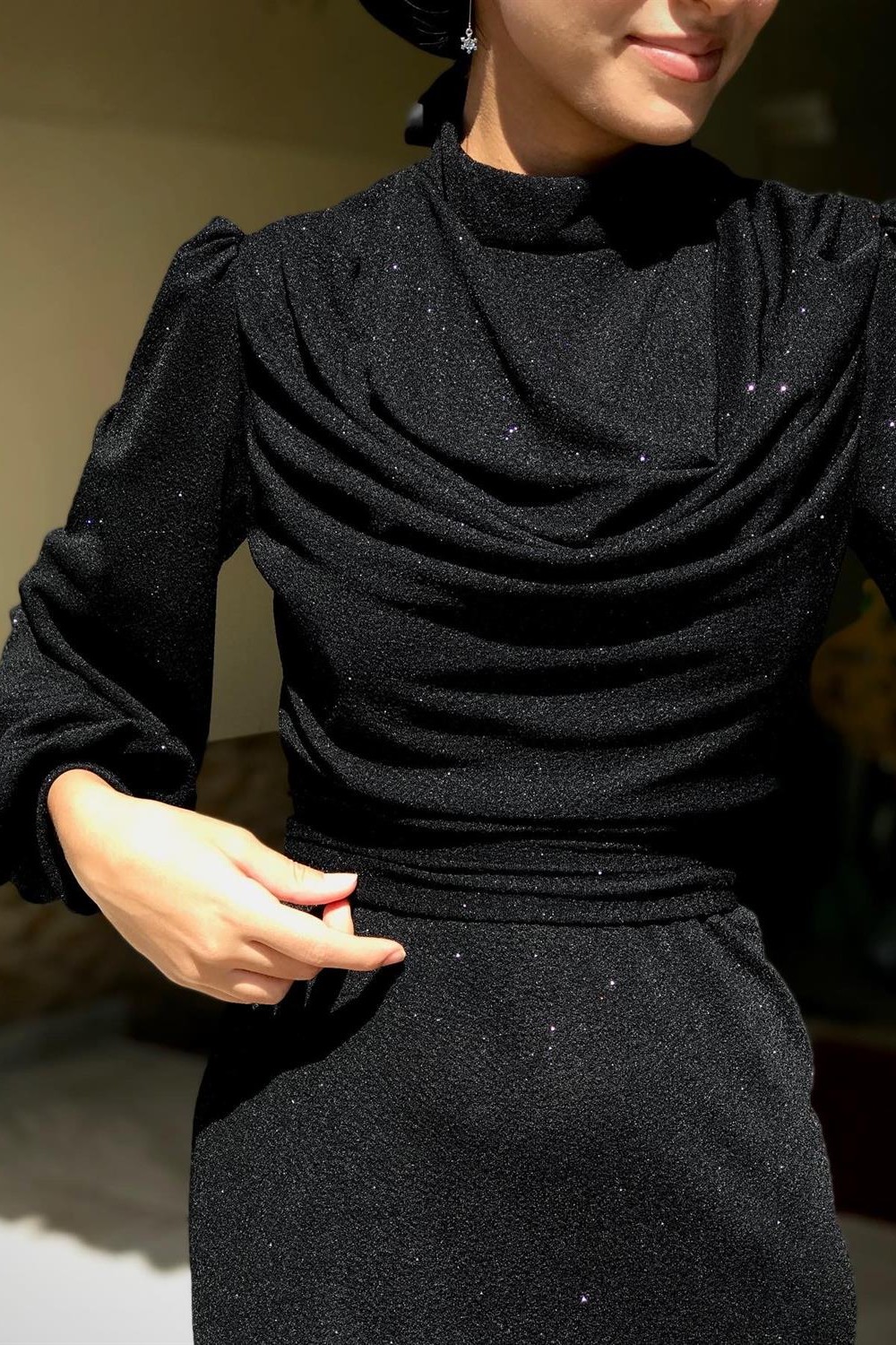 Lenora Bluzanlı Simli Kalem Abiye Siyah