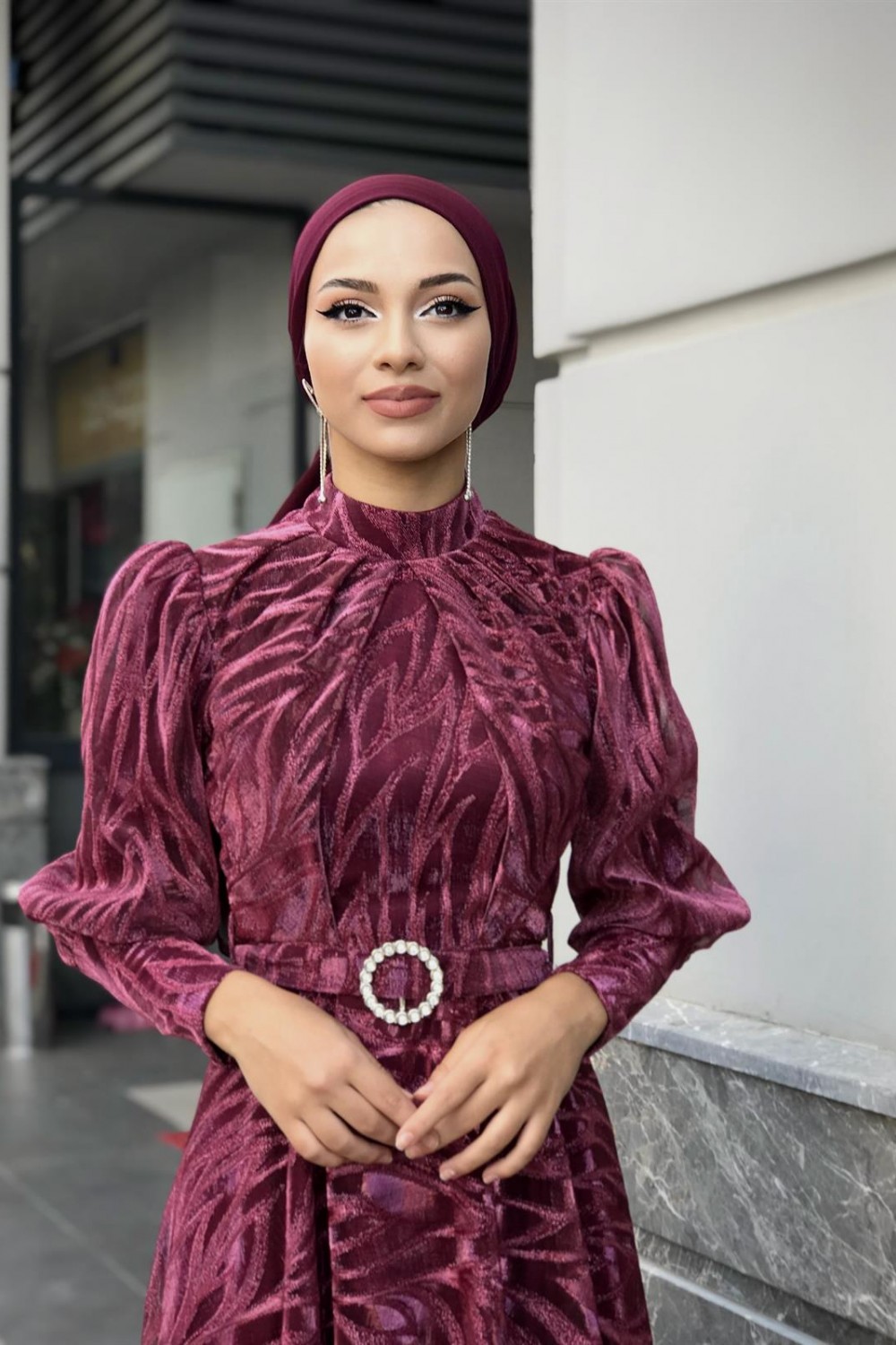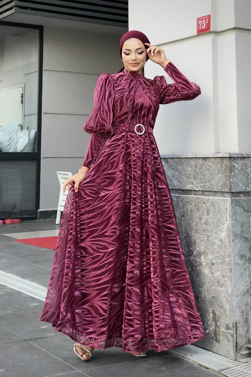 Asena Karpuz Kol Abiye Fuşya