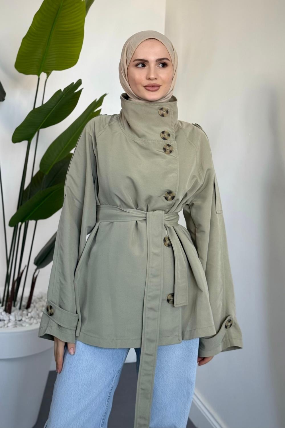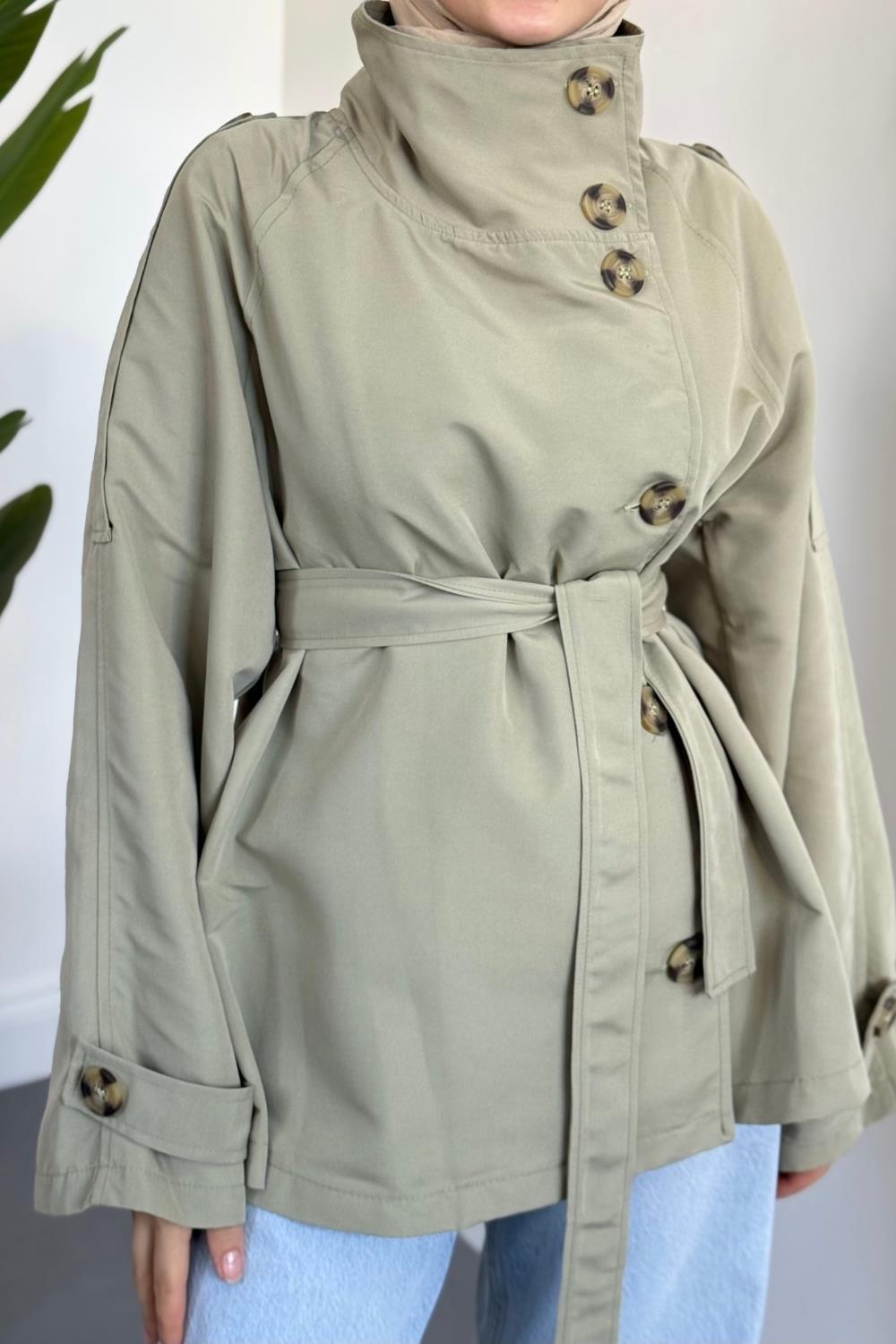 Marivelle Dik Yaka Trençkot Haki