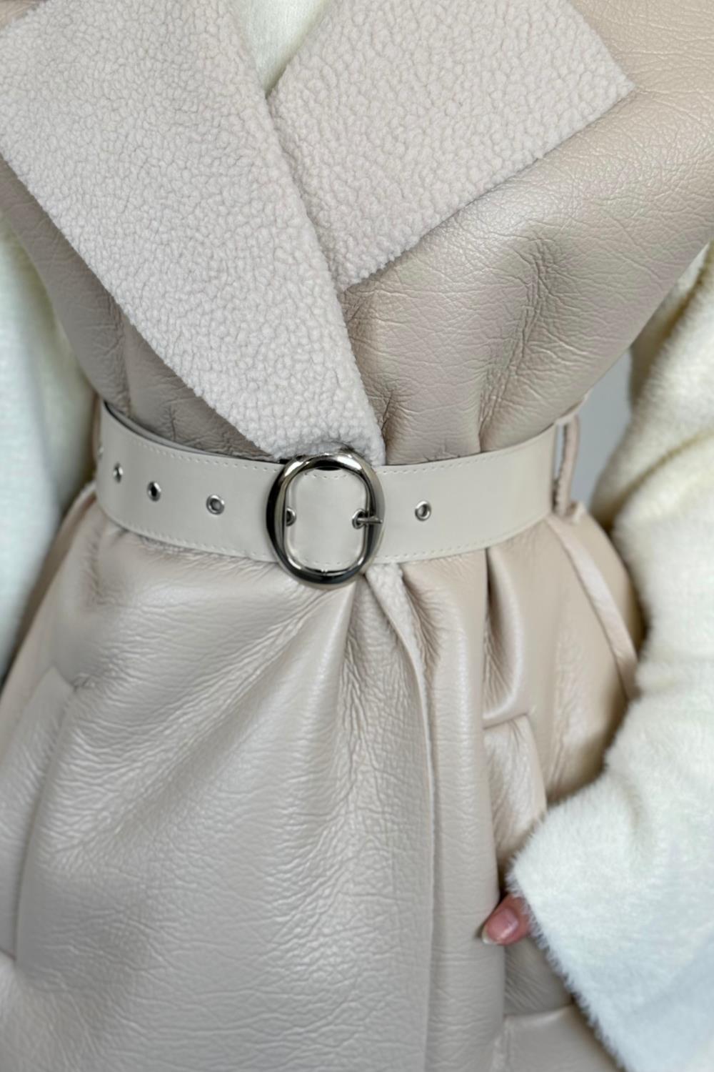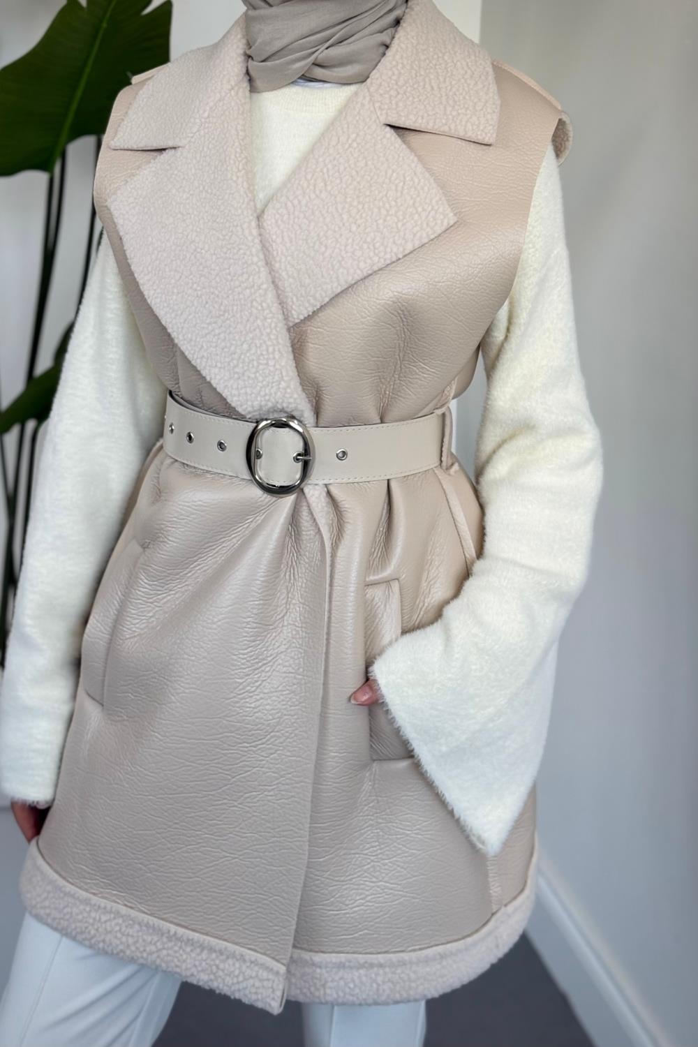 Amarila Deri Görünümlü Yelek Krem