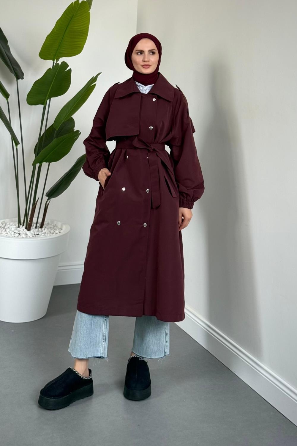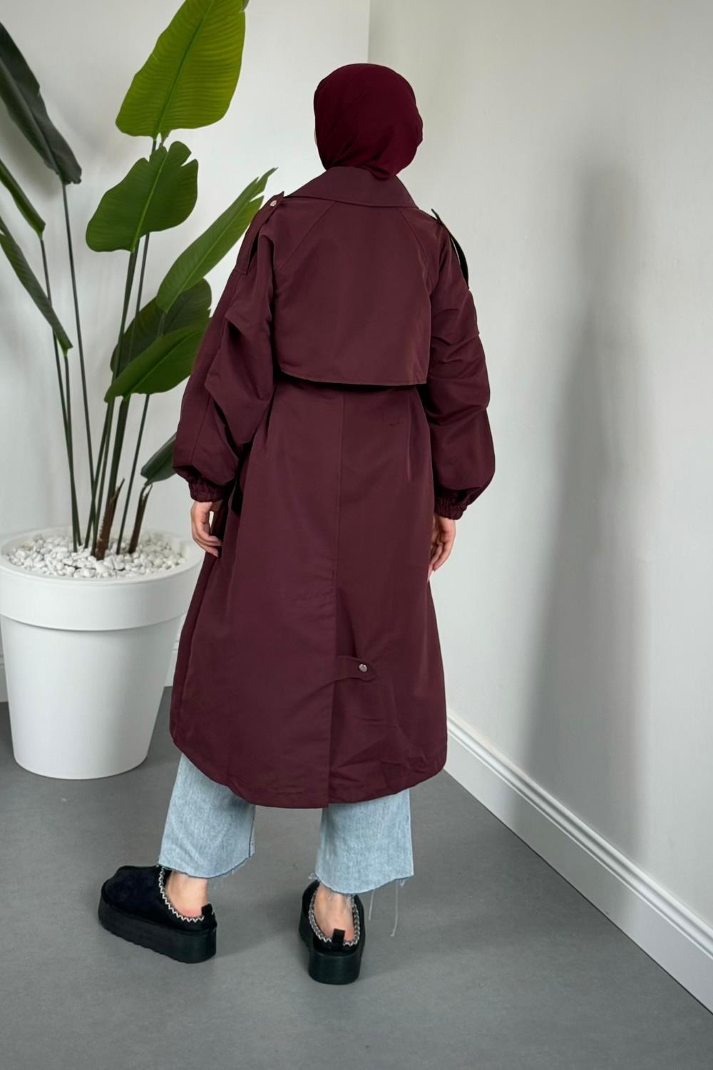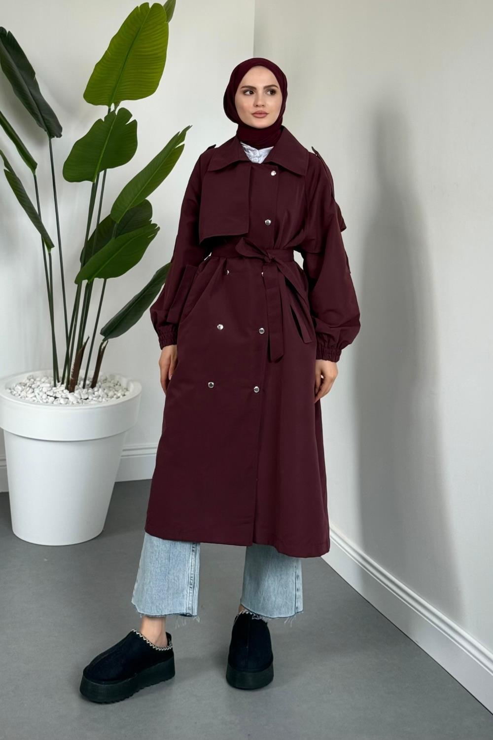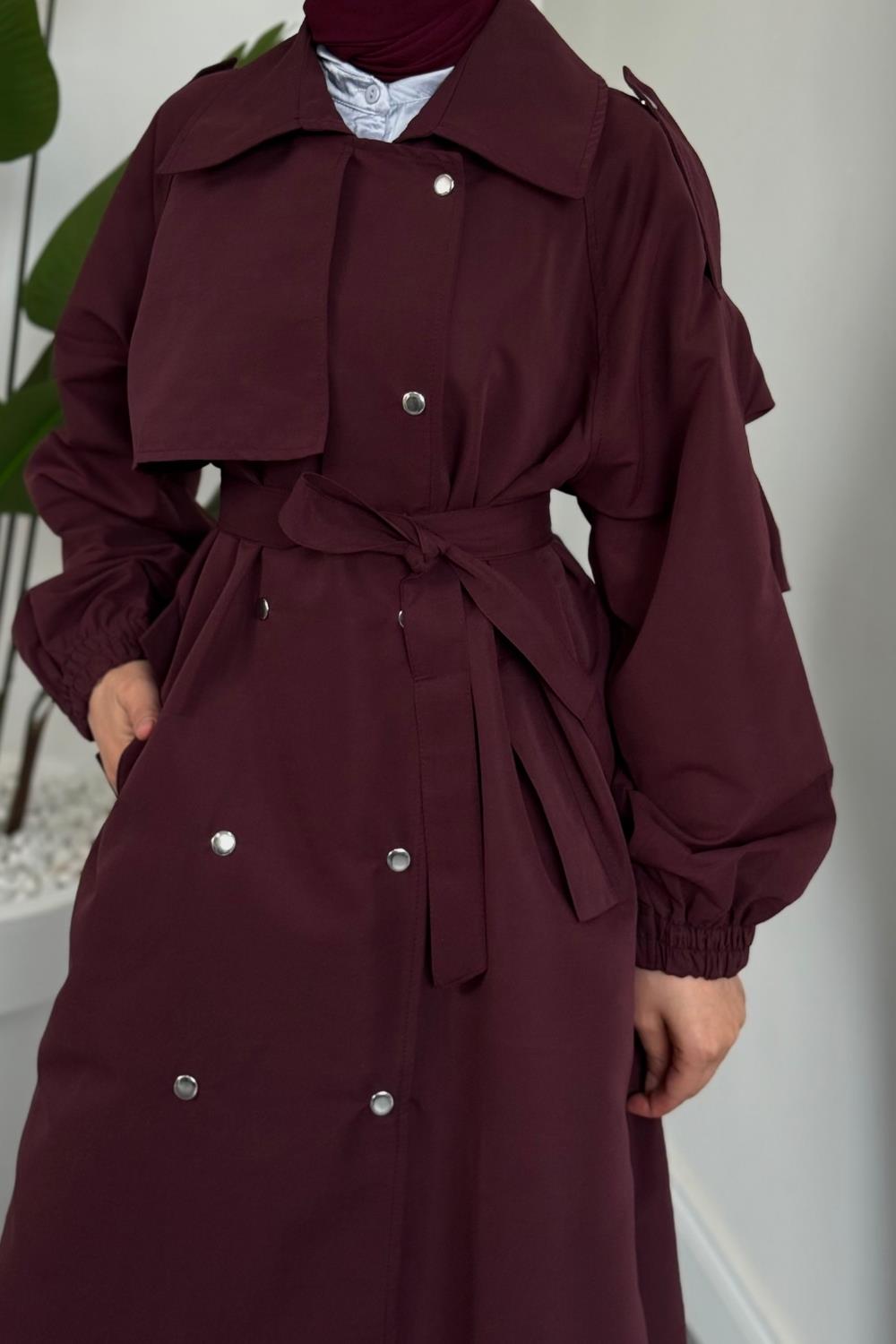 Haggy Çıtçıtlı Trençkot Vişne Çürüğü