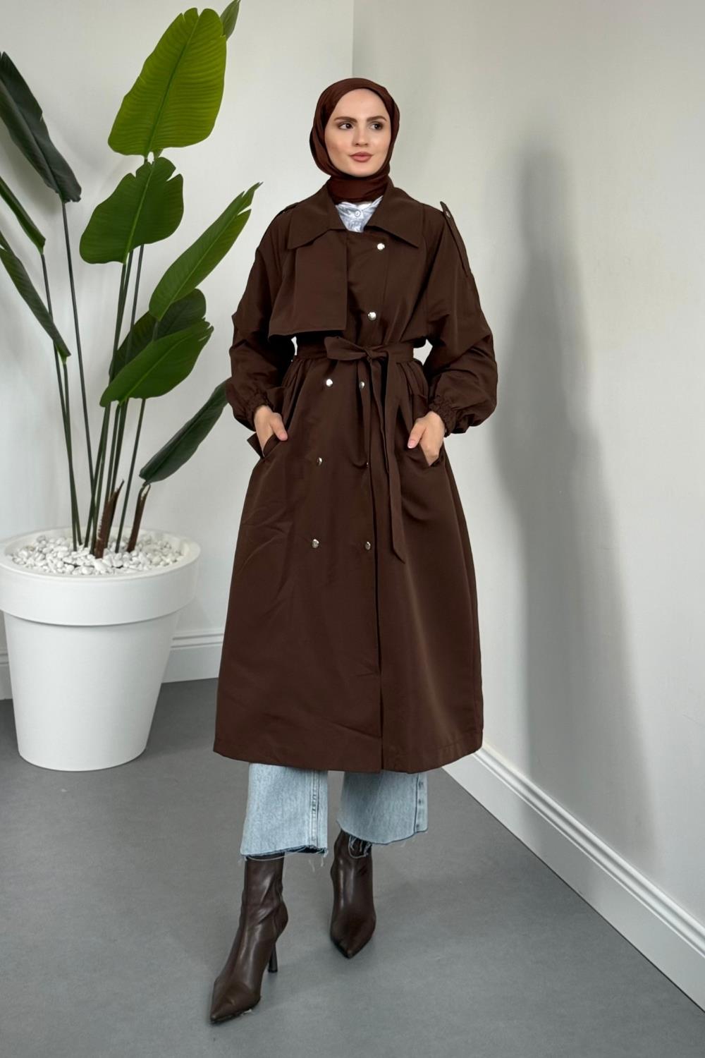 Haggy Çıtçıtlı Trençkot Kahverengi