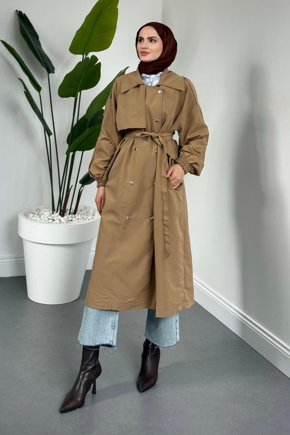 Haggy Çıtçıtlı Trençkot Camel