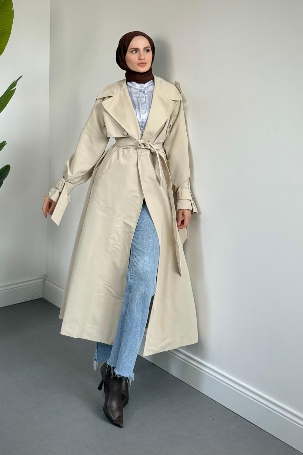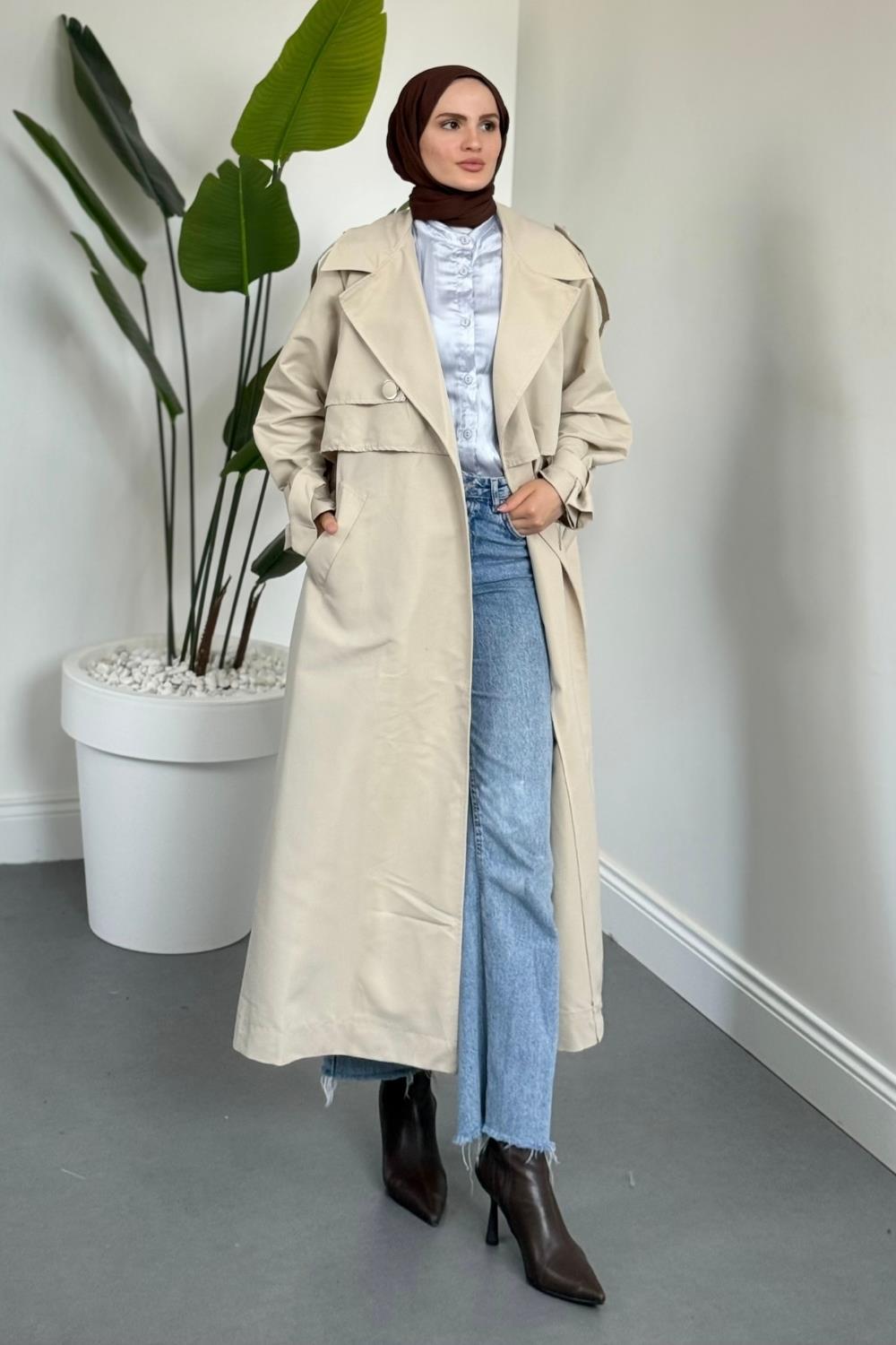 Brona Kolları Aporetli Trençkot Krem