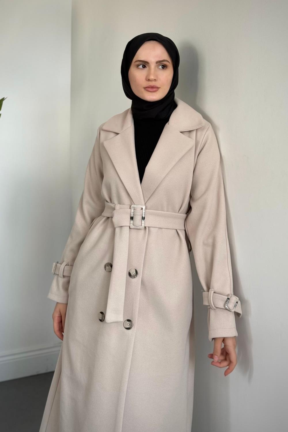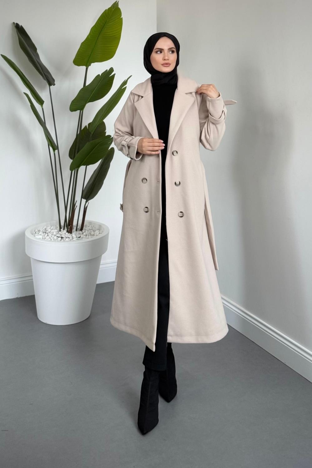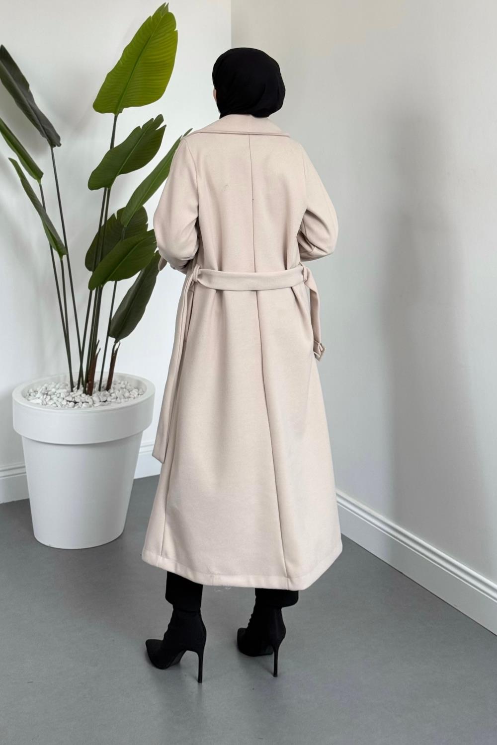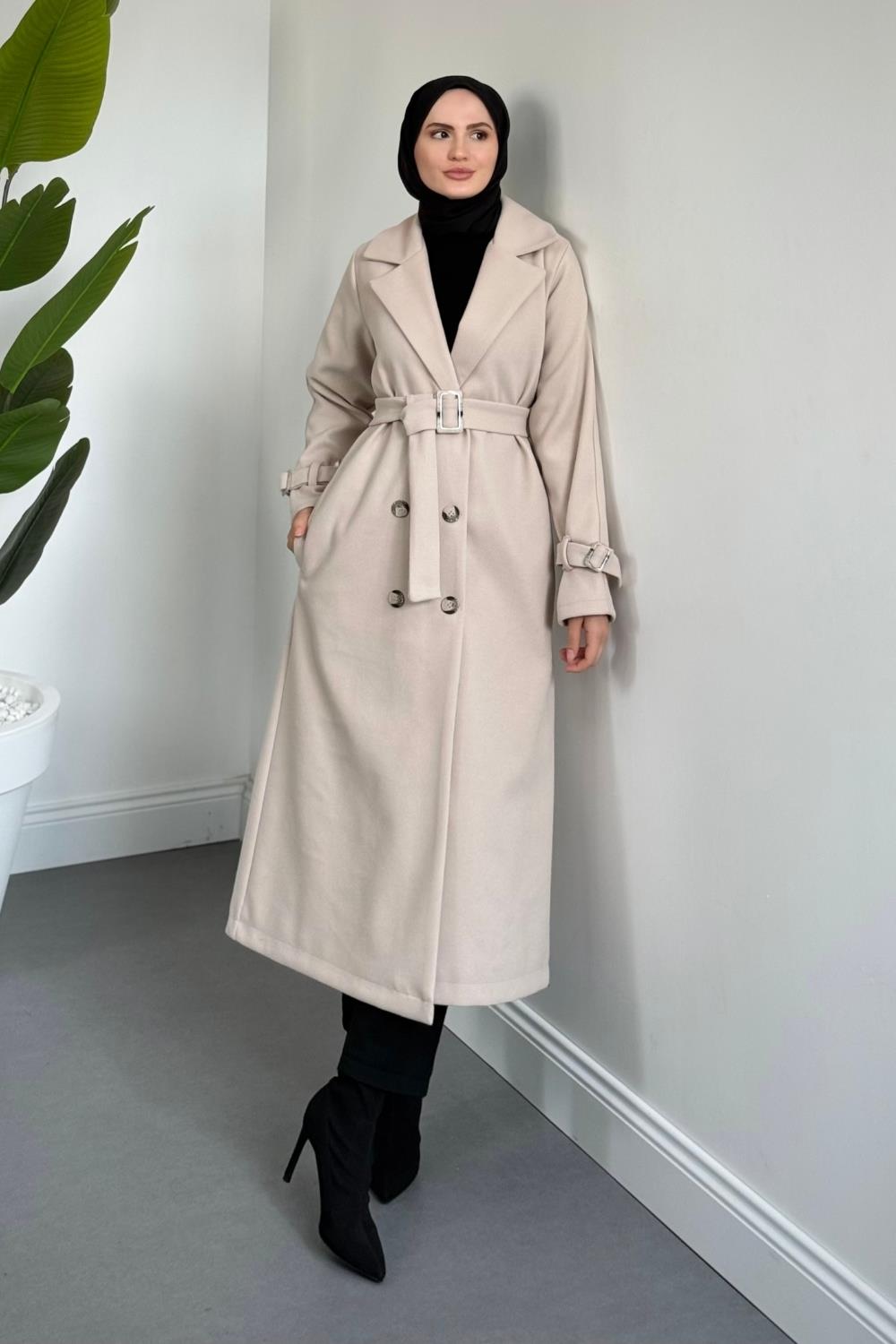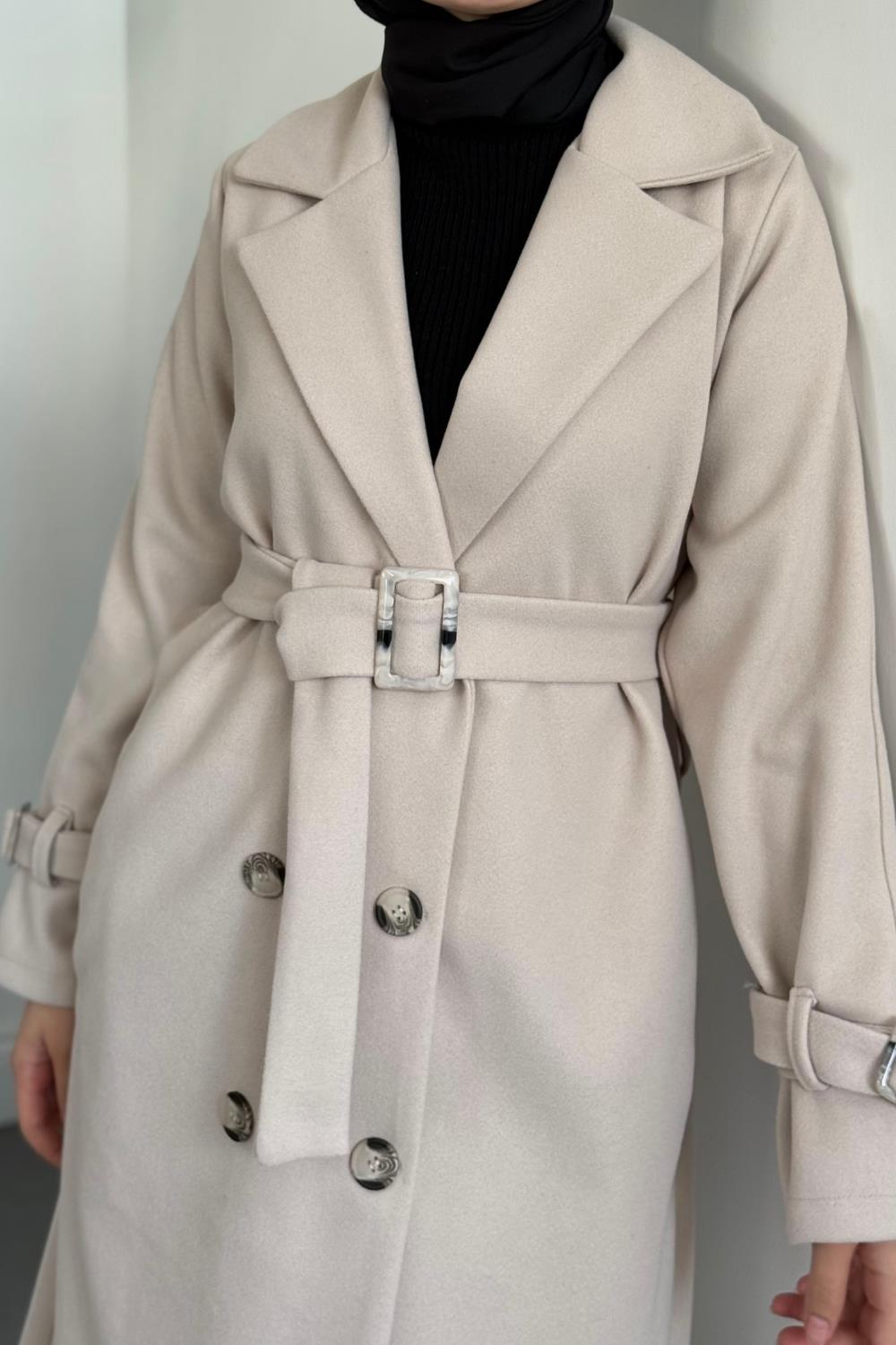 Eliane Astarlı Kemerli Kaşe Kaban Krem