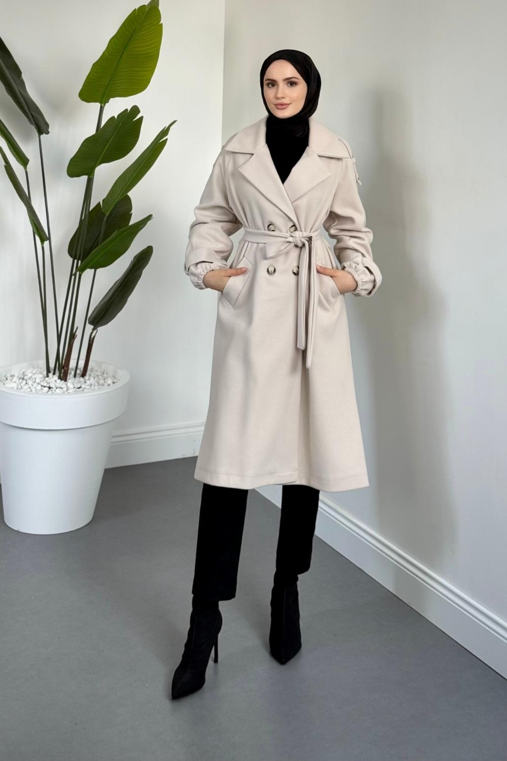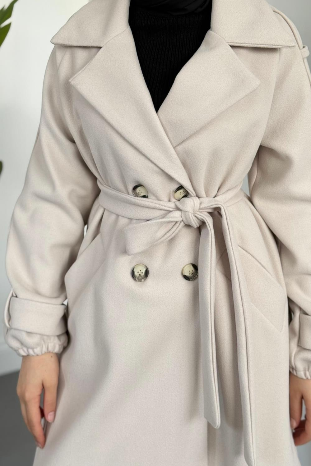 Camora Astarlı Kaşe Kaban Krem