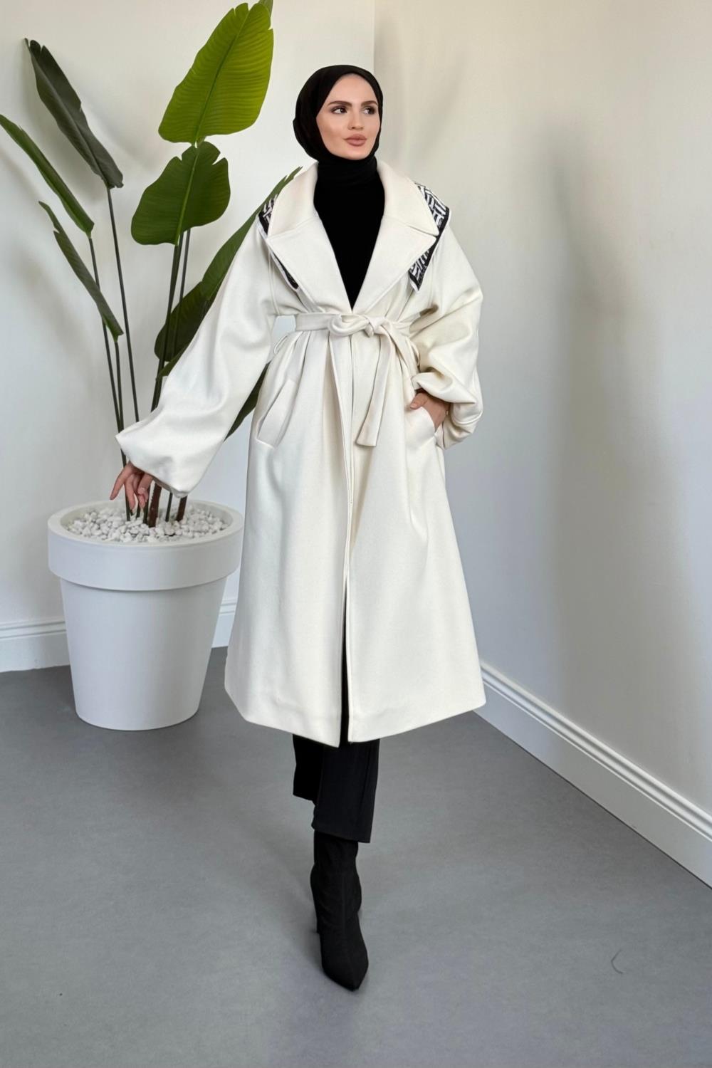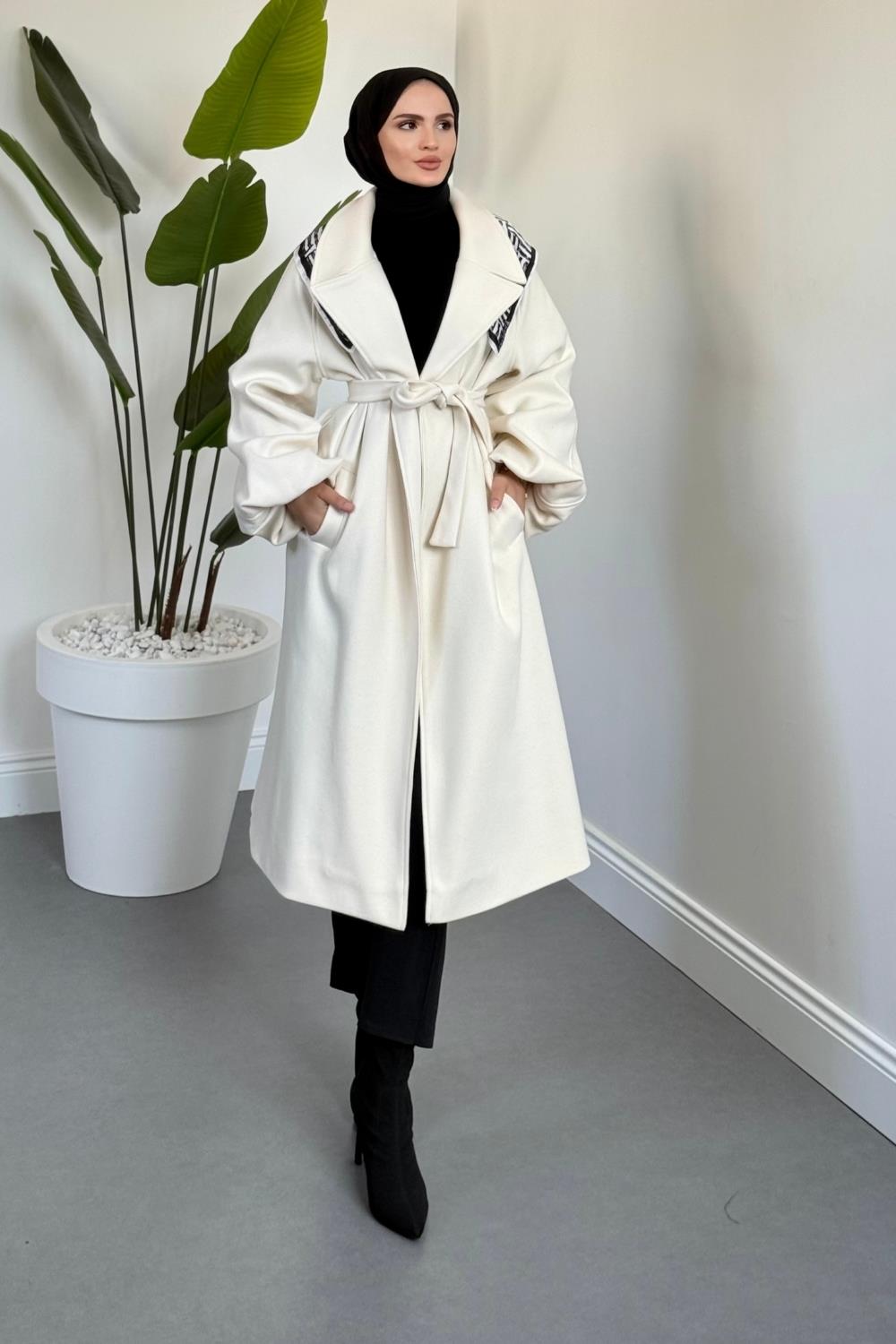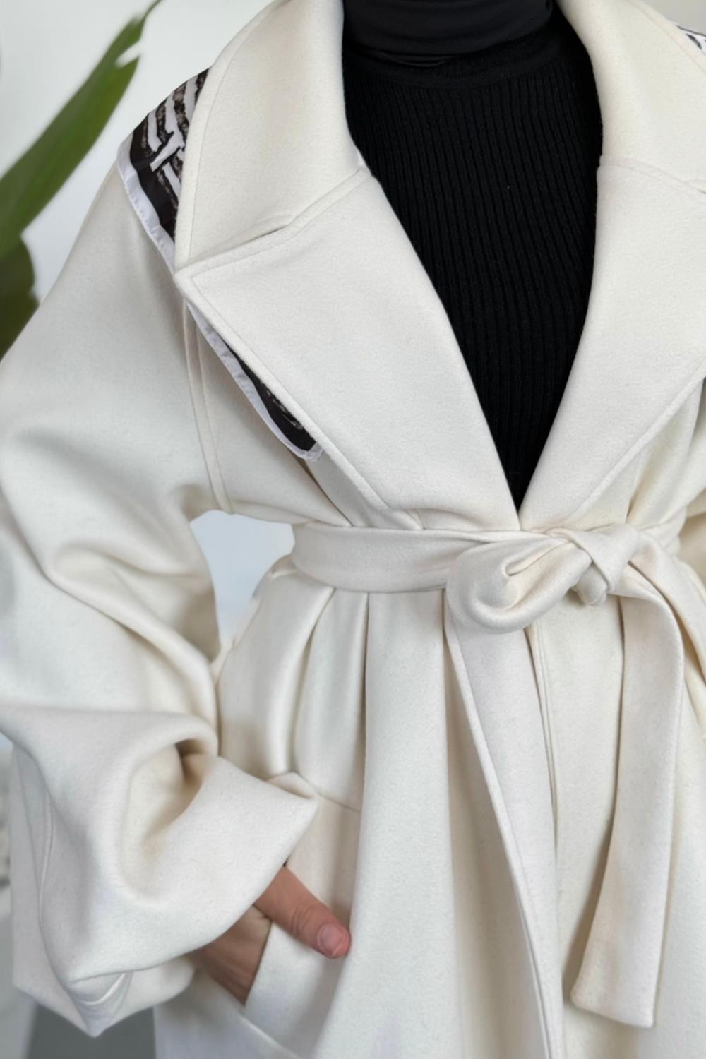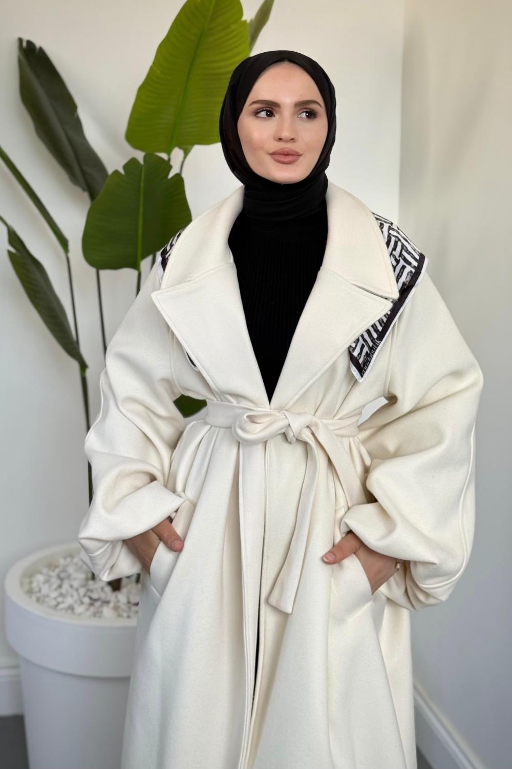 Olinn Astarlı Balon Kol Kaşe Kaban Krem