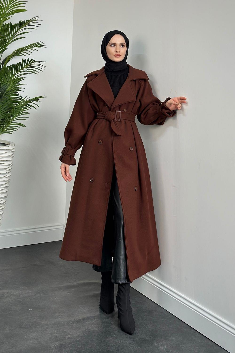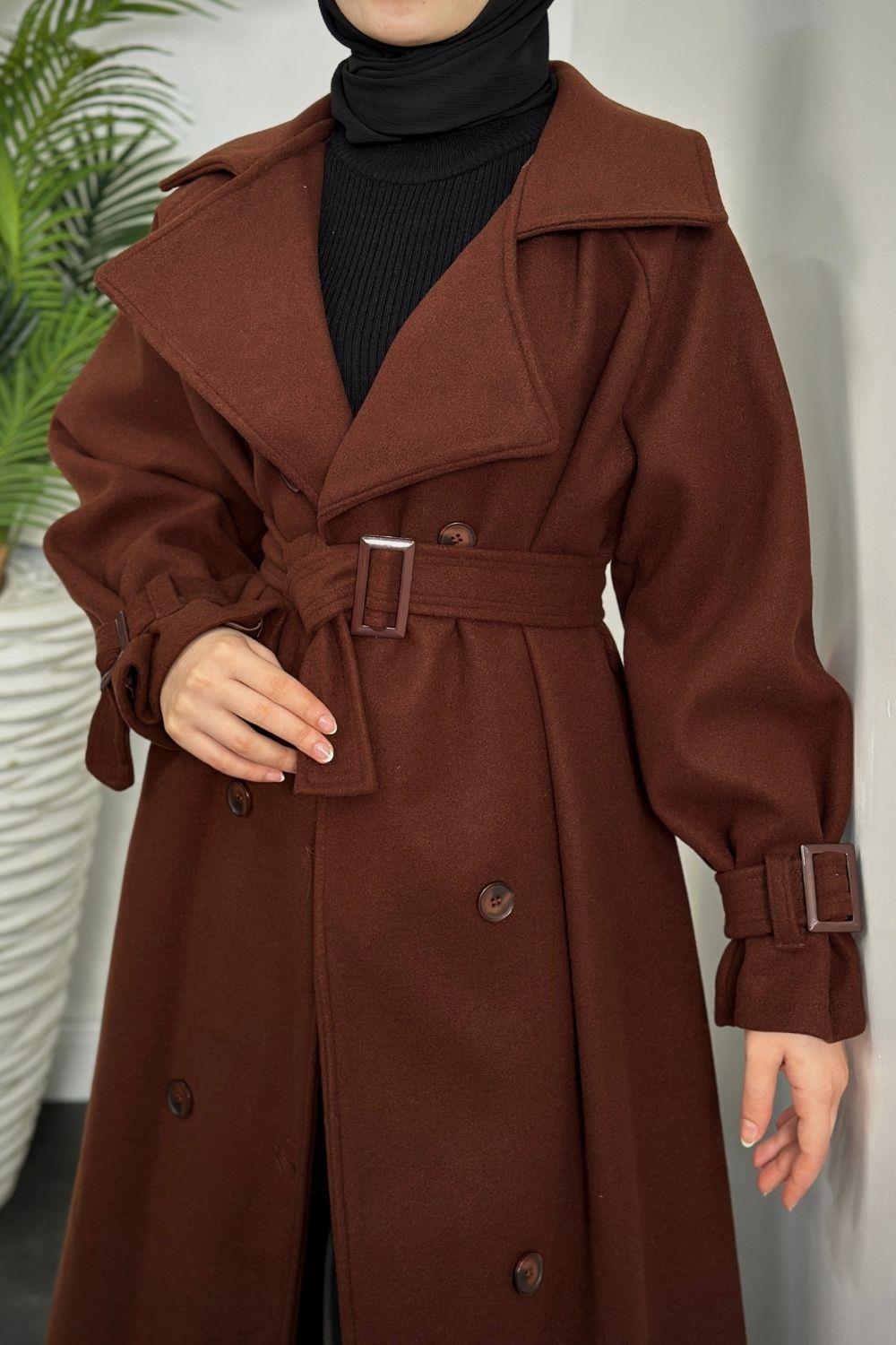 Clover Oversize Astarlı Kaşe Kaban Kahverengi