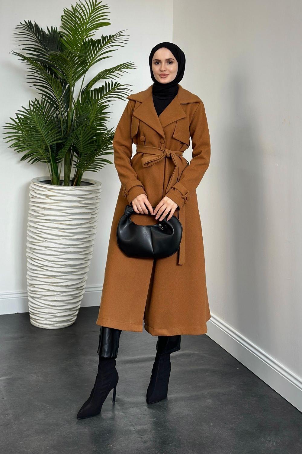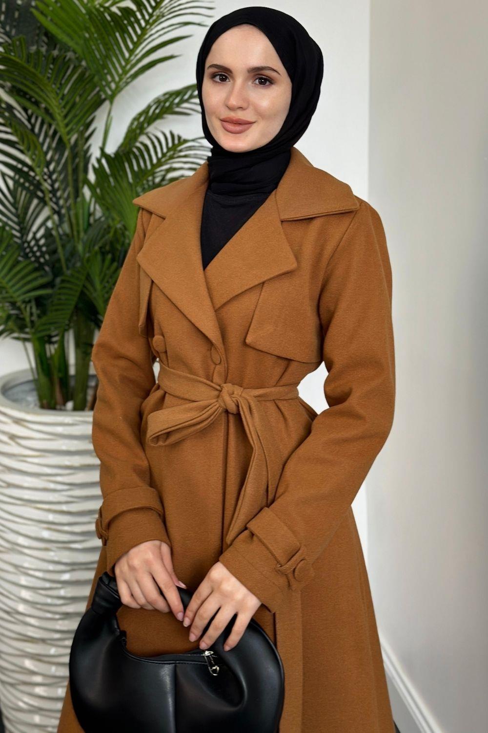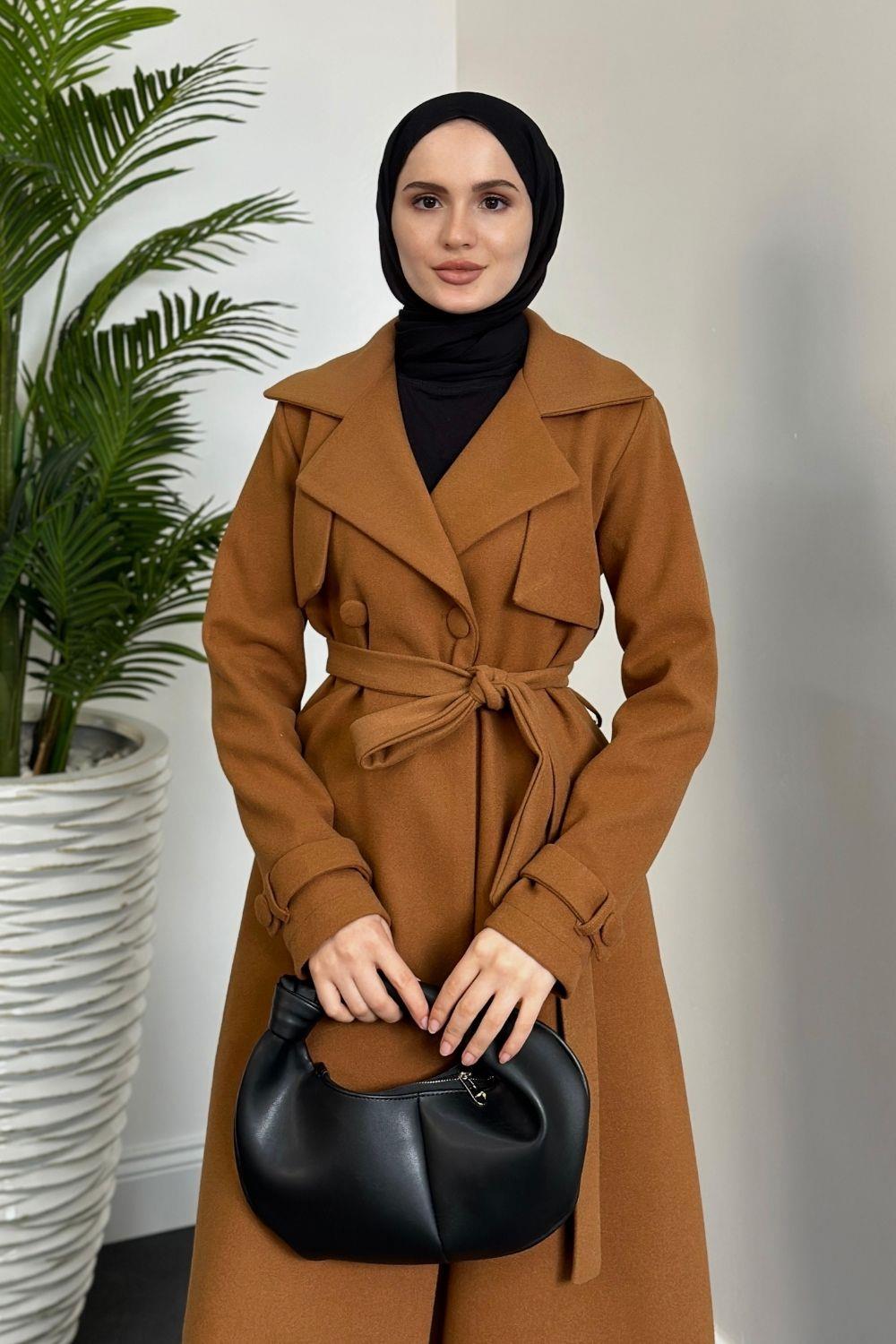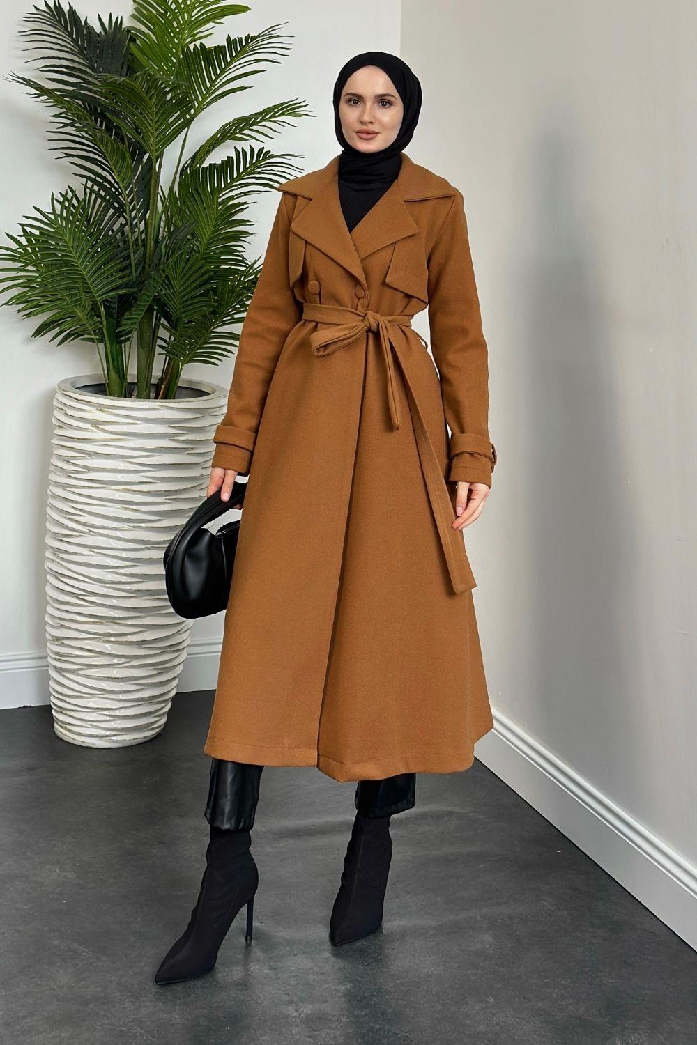 Lucky Astarlı Kaşe Kaban Camel