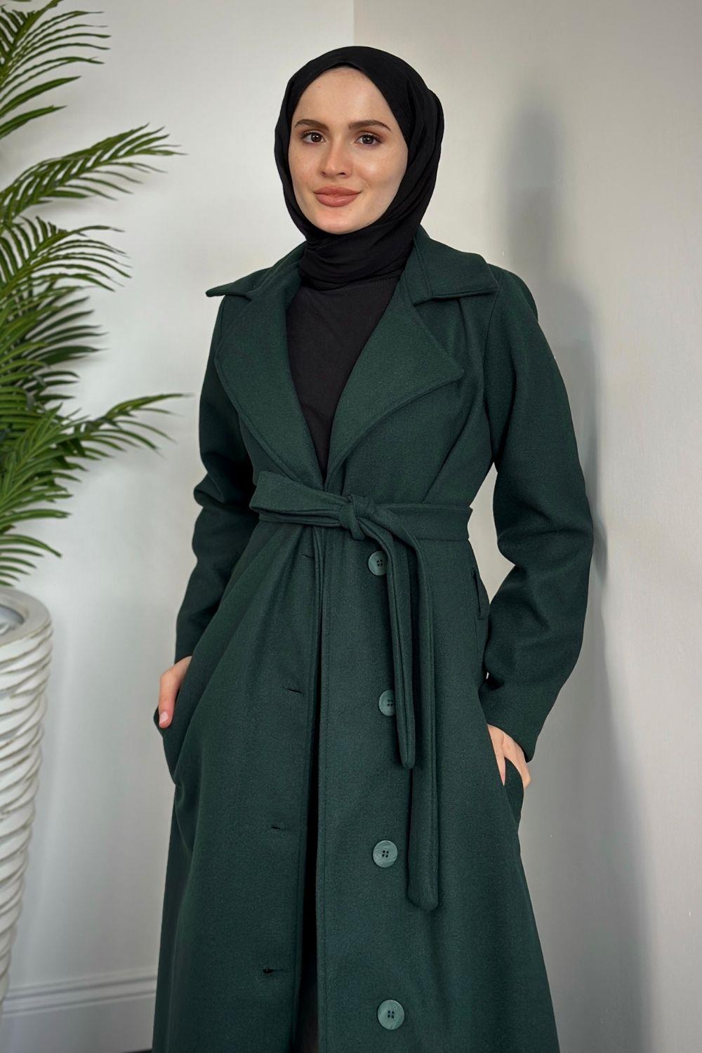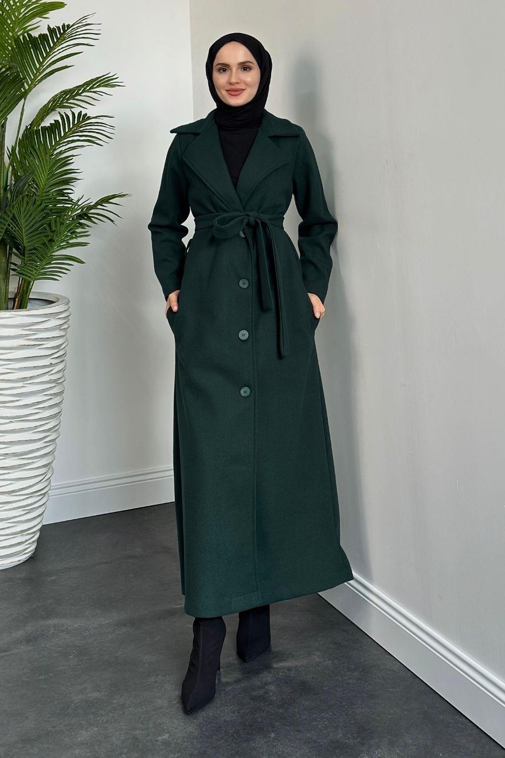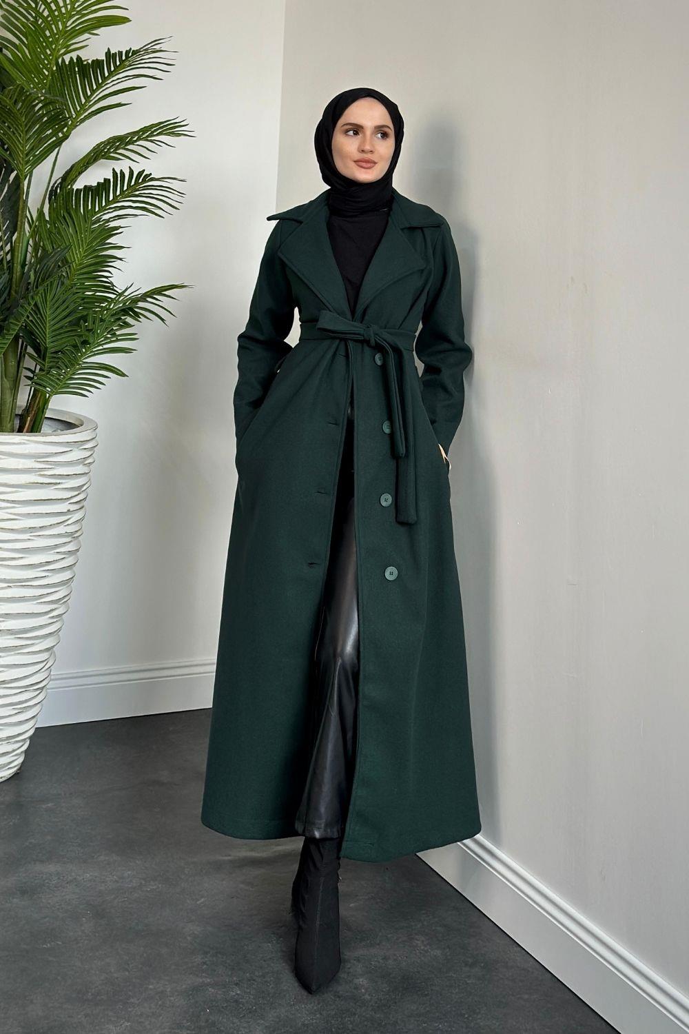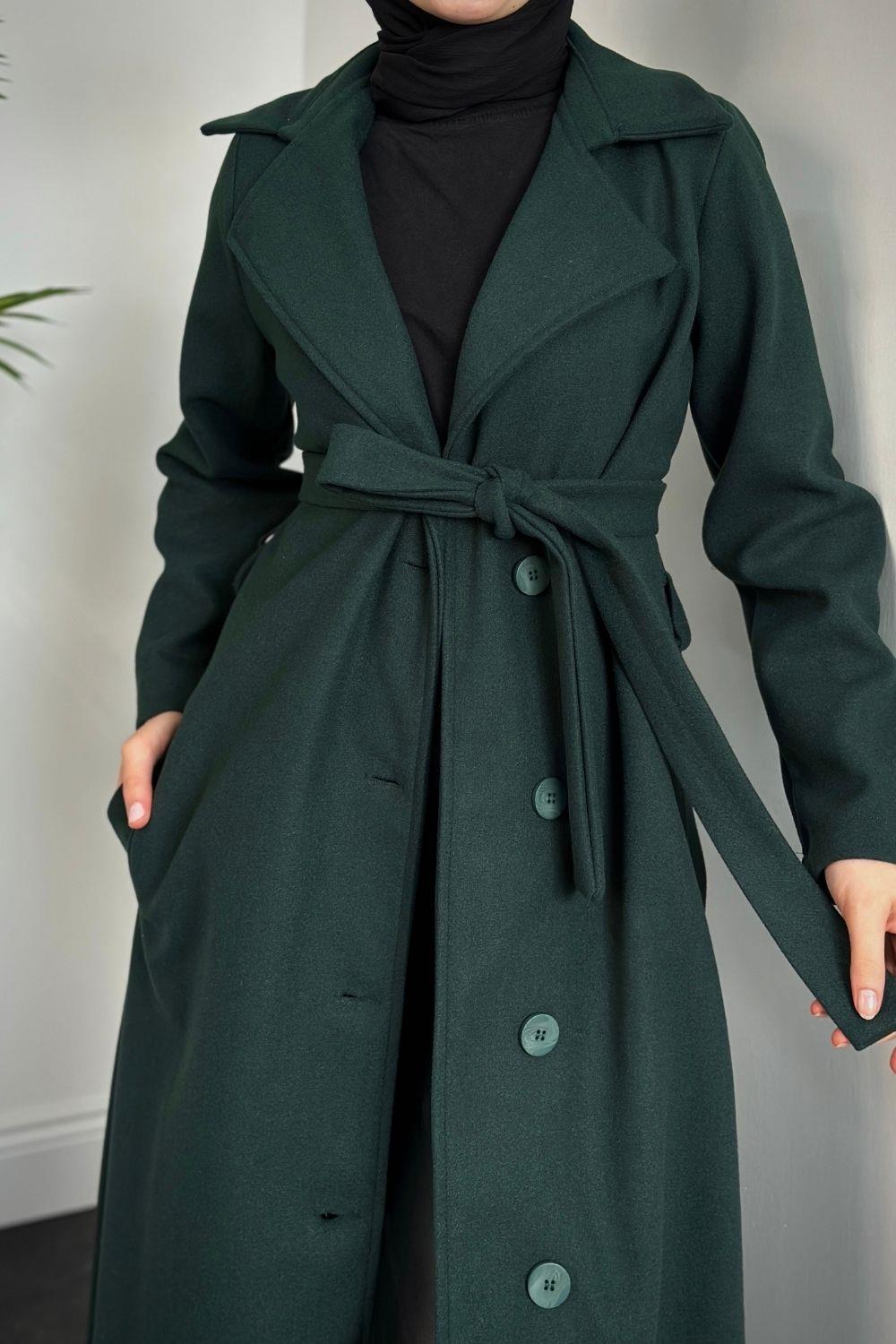 Savanna Astarlı Tam Boy Kaşe Kaban Zümrüt