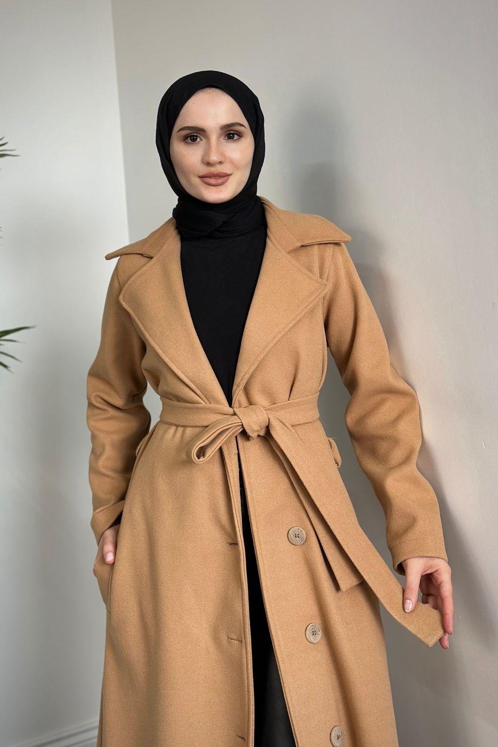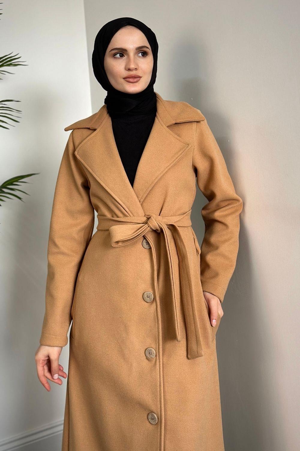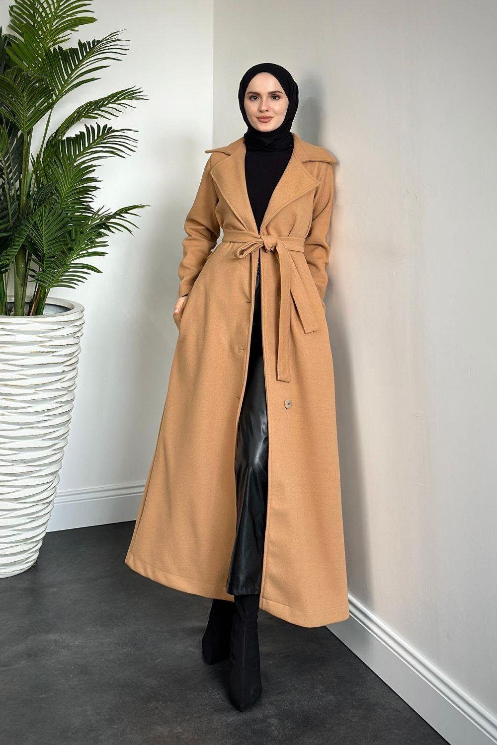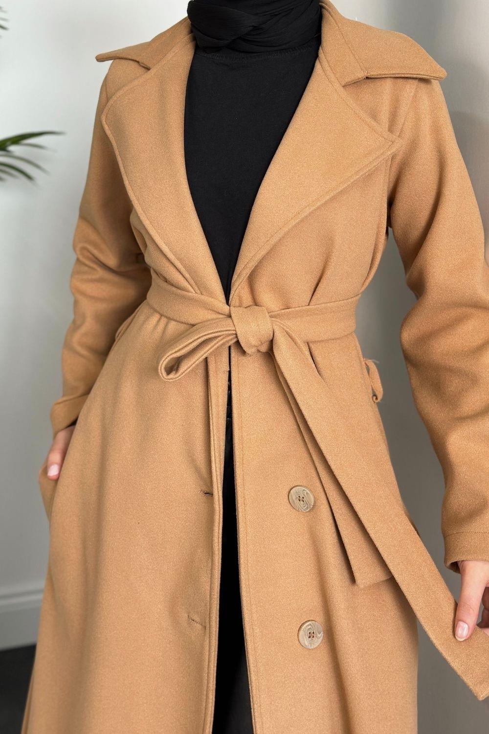 Savanna Astarlı Tam Boy Kaşe Kaban Camel