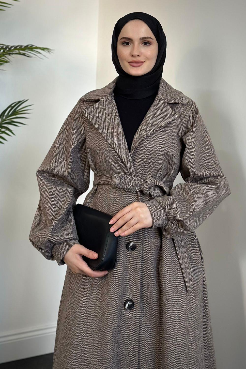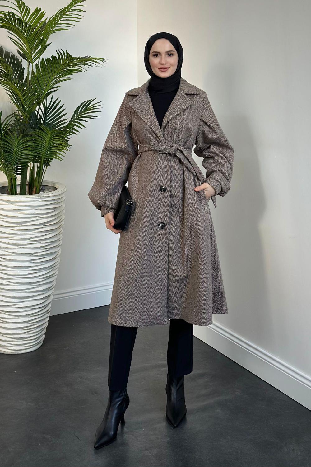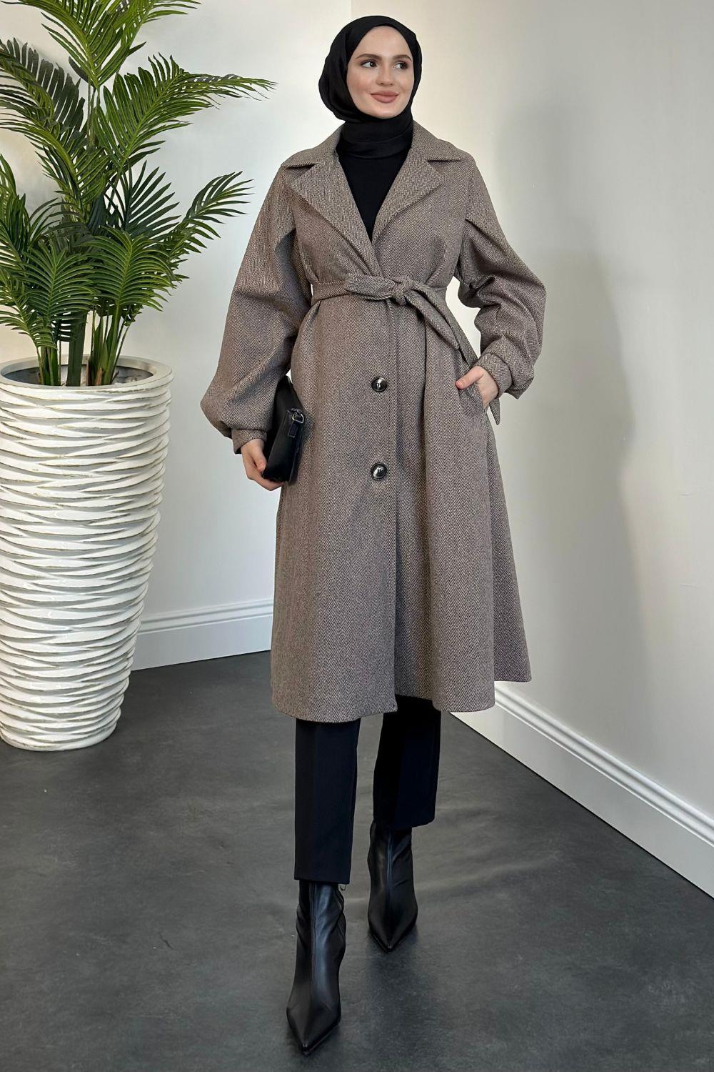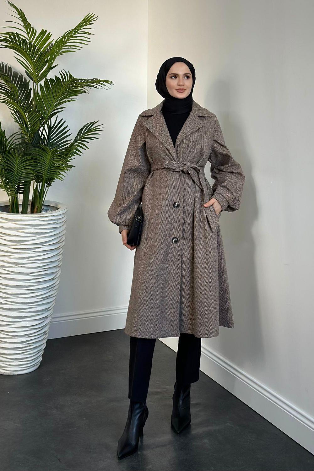 Lianda Düğmeli Astarlı Mevlana Kaban Kahverengi