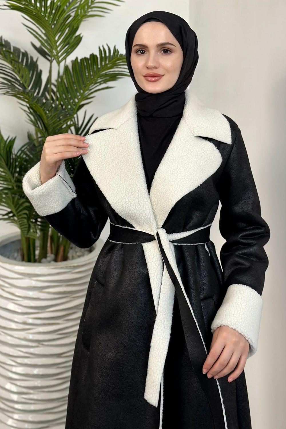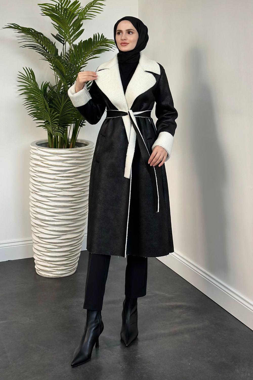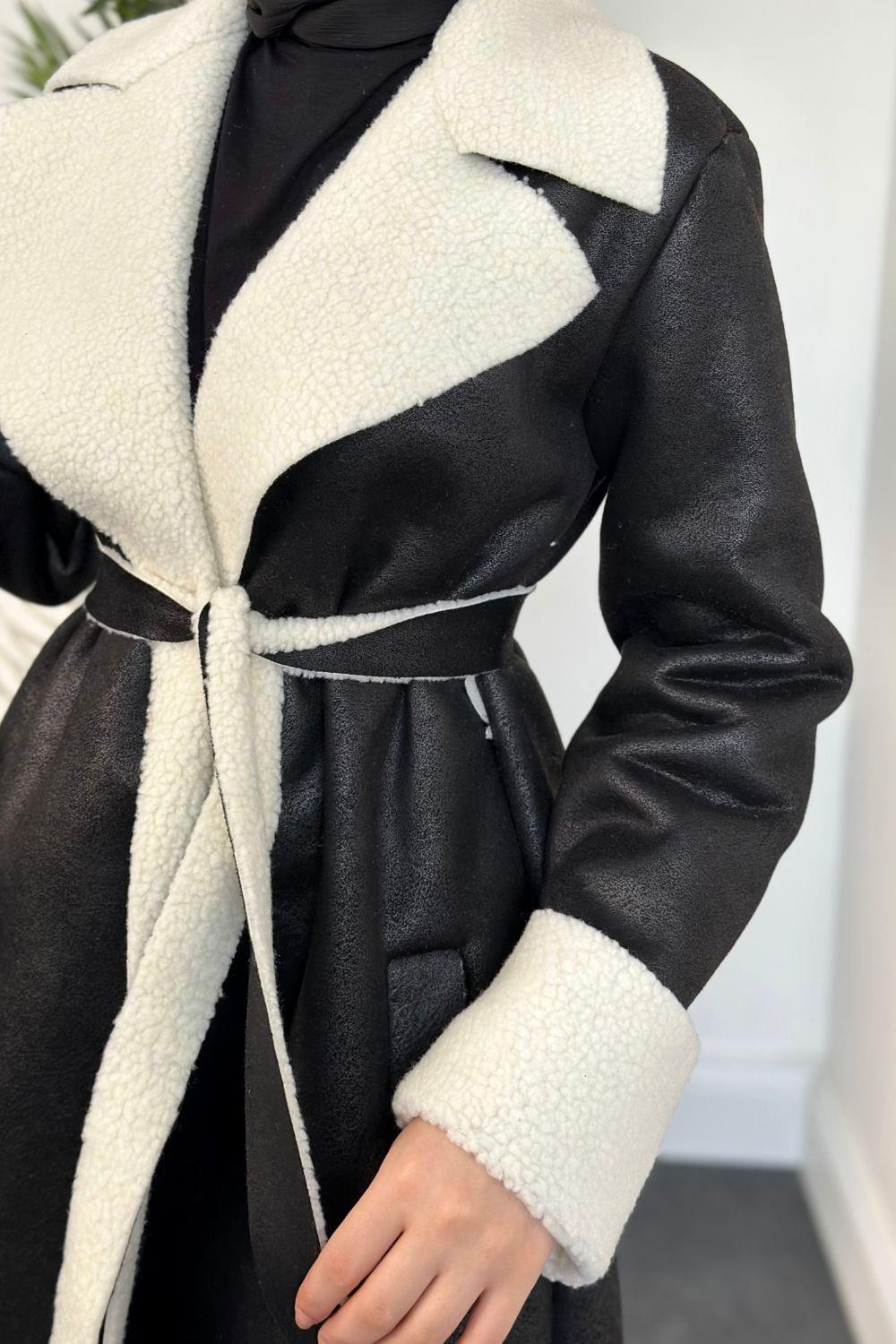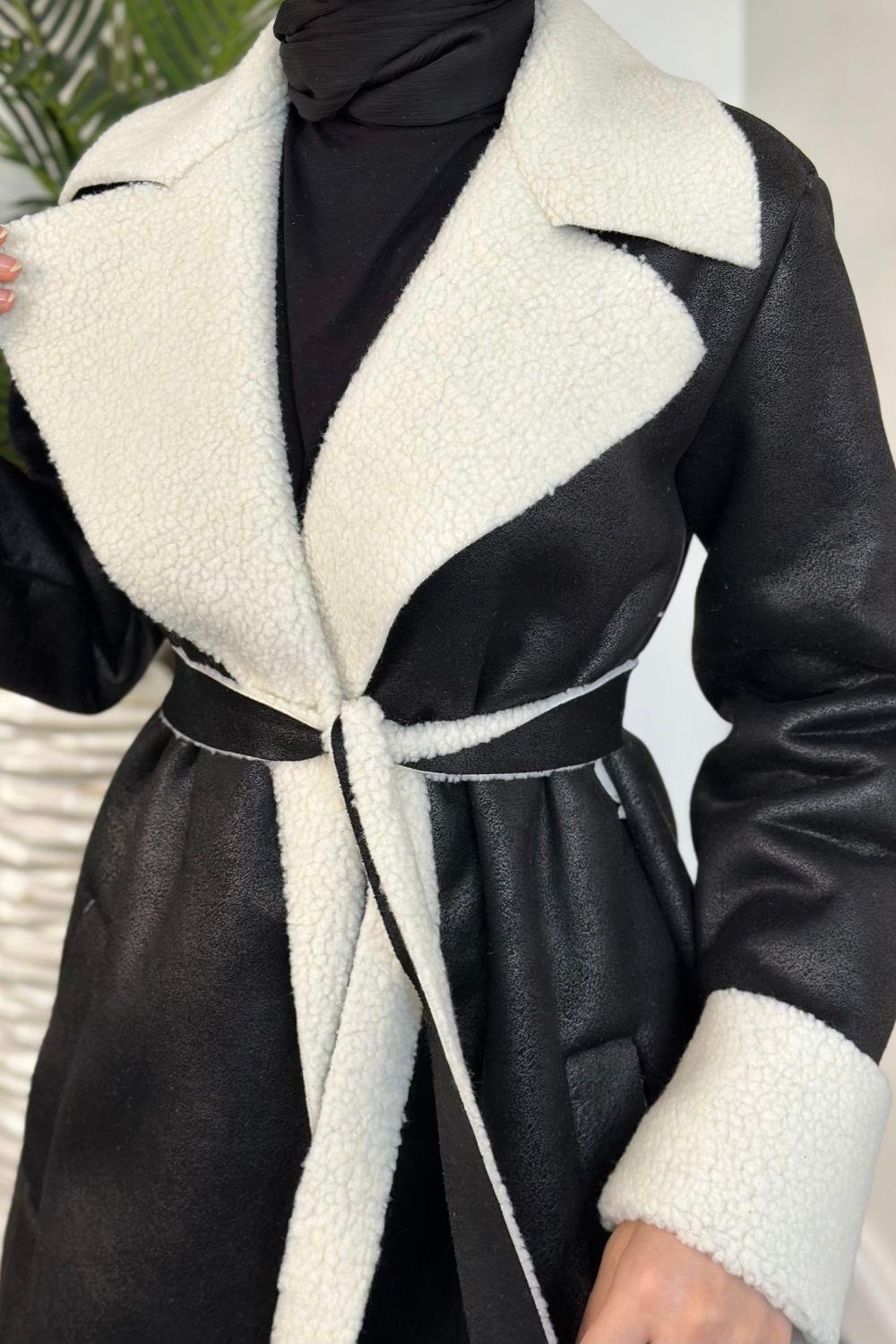 Rima İçi Yünlü Kaşe Kaban Siyah