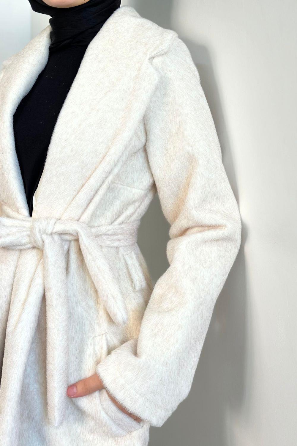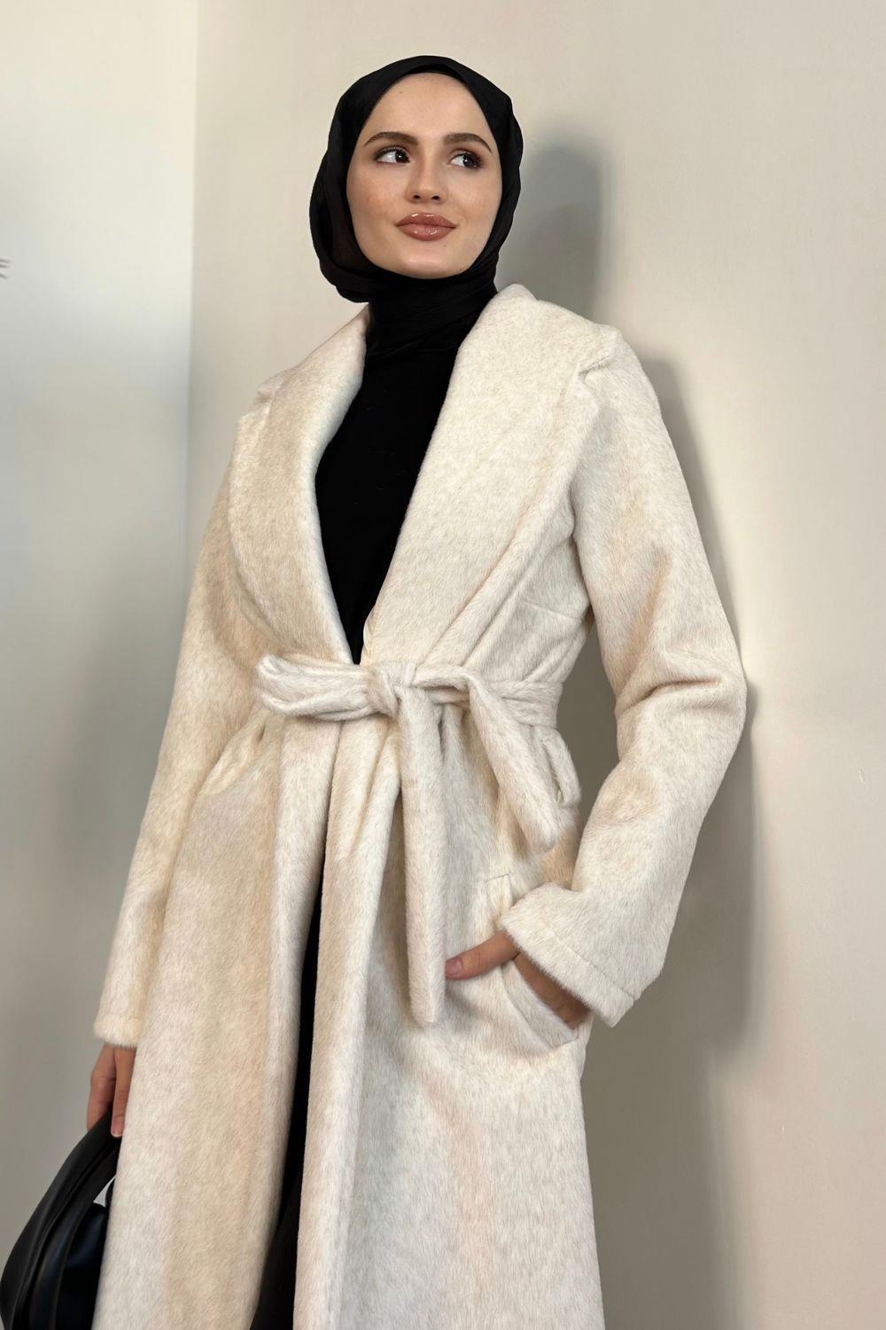Elvis İçi Astarlı Kürklü Kaban Krem