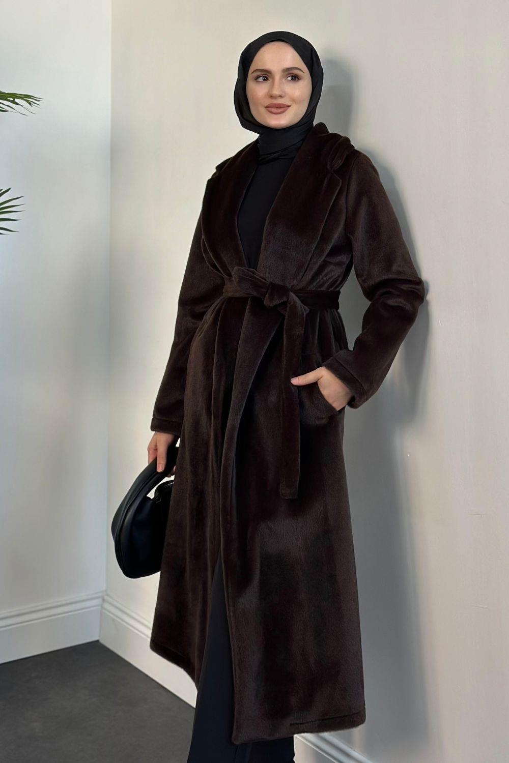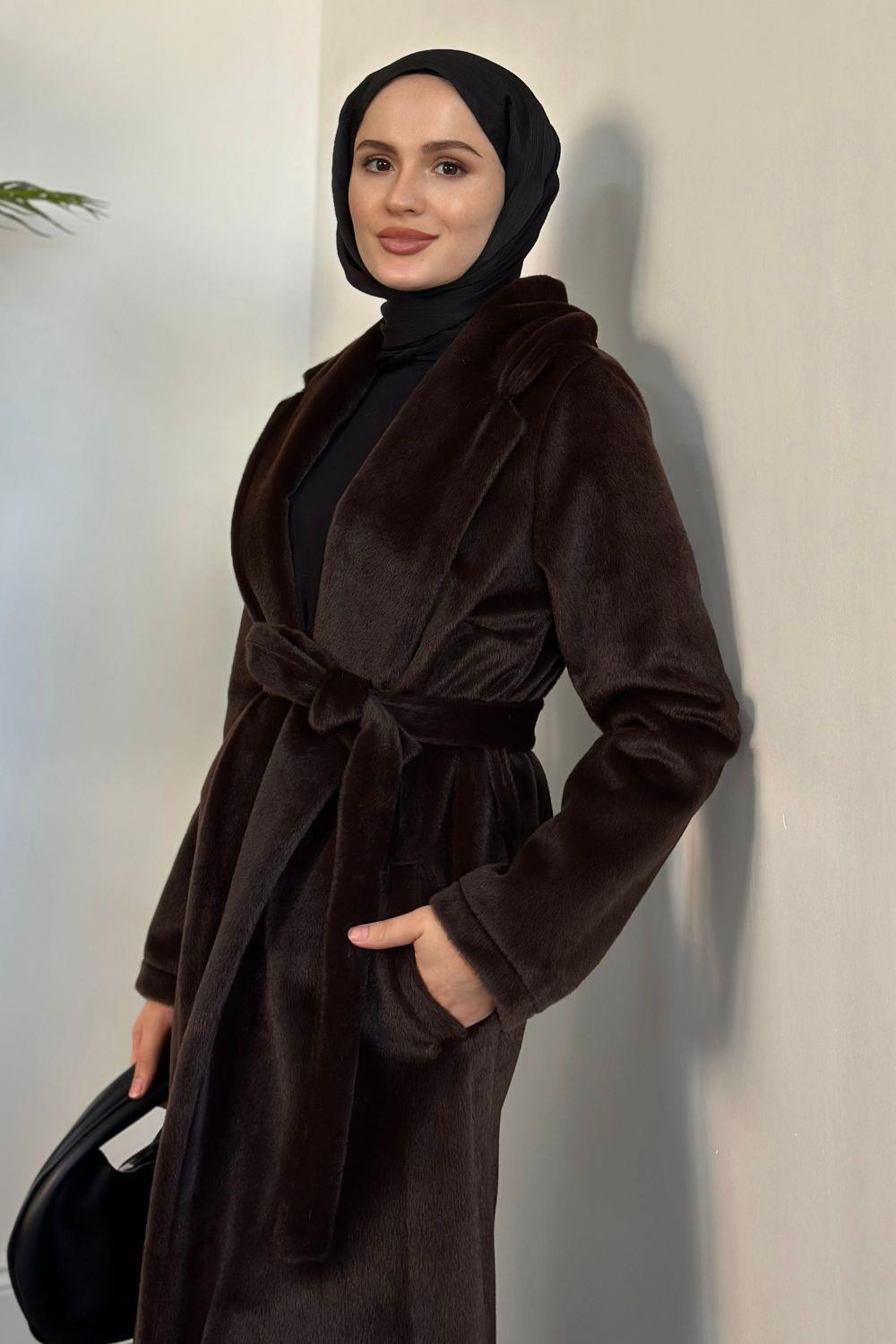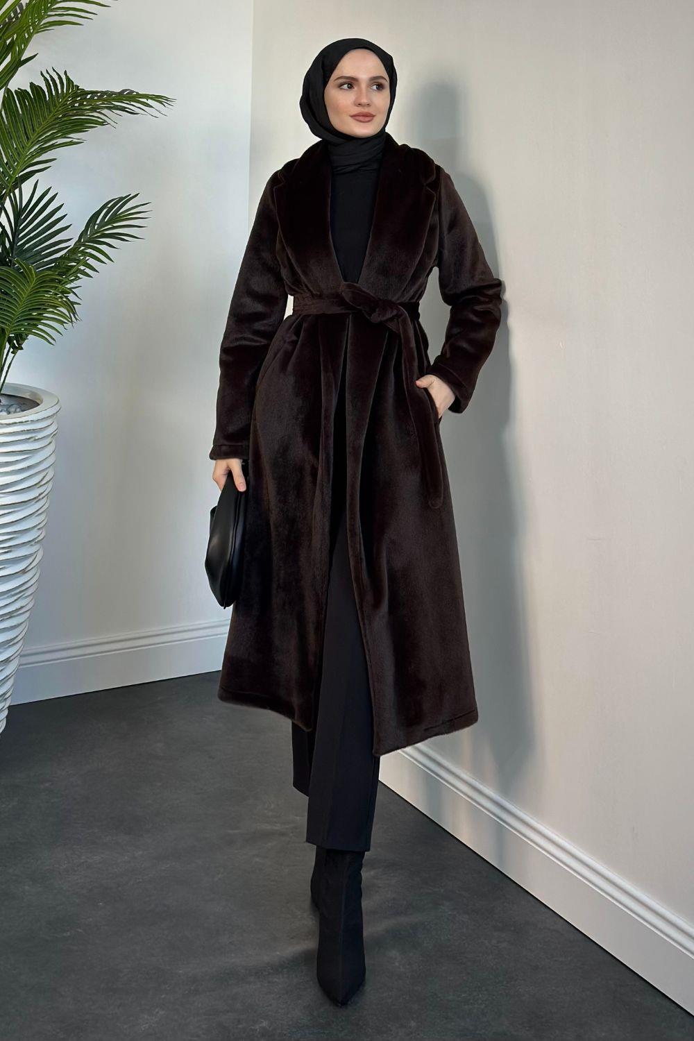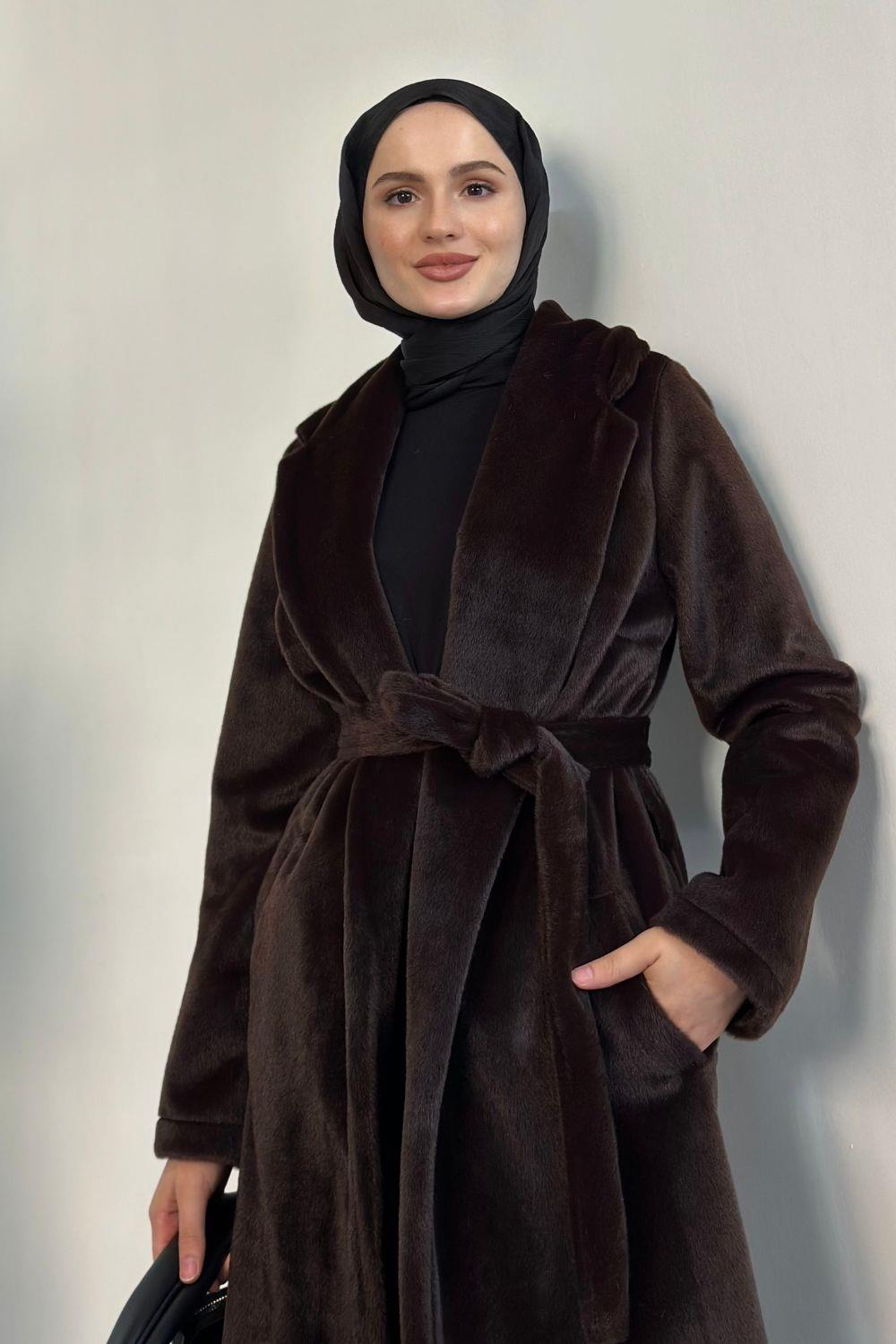 Elvis İçi Astarlı Kürklü Kaban Kahverengi
