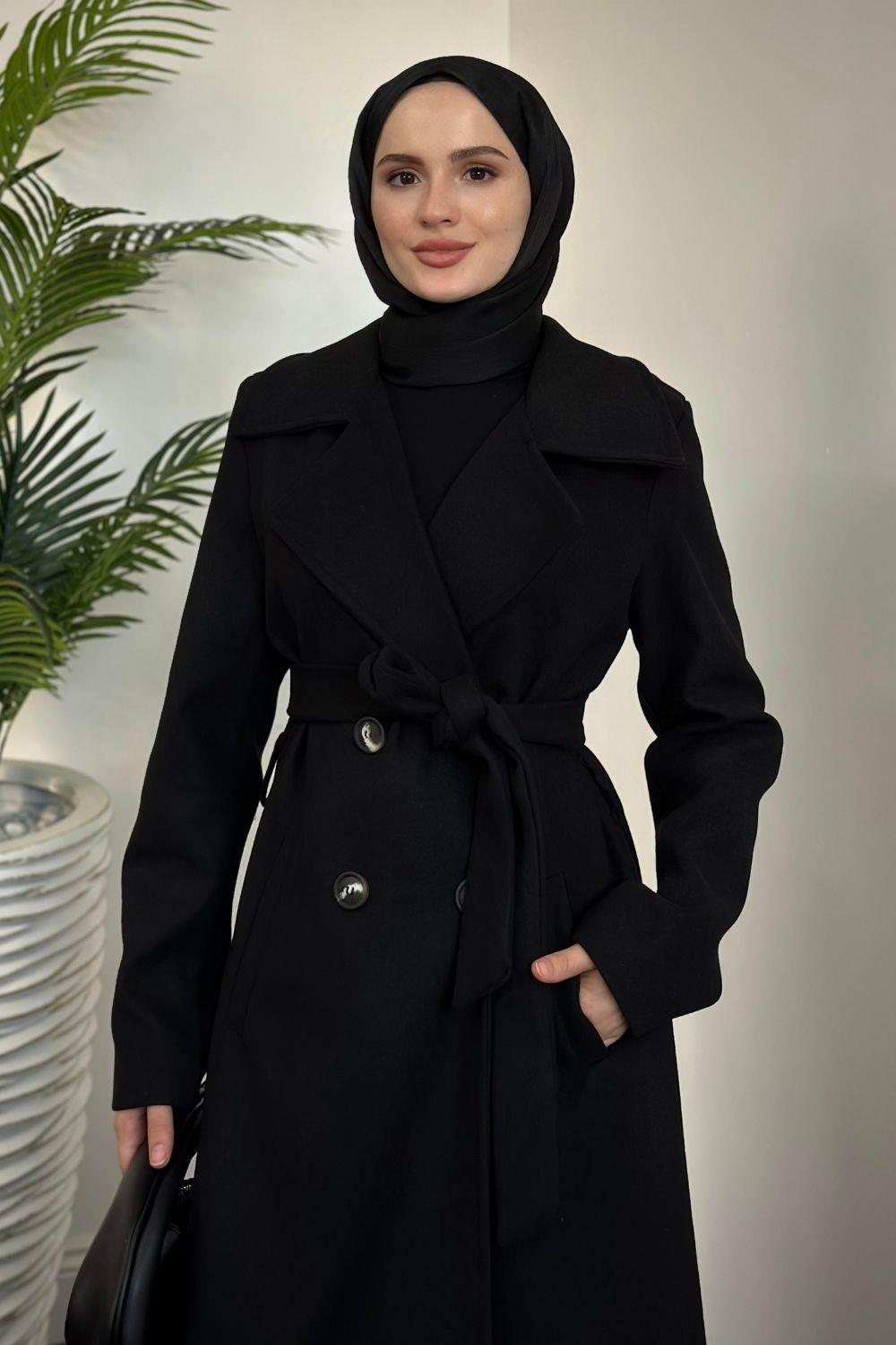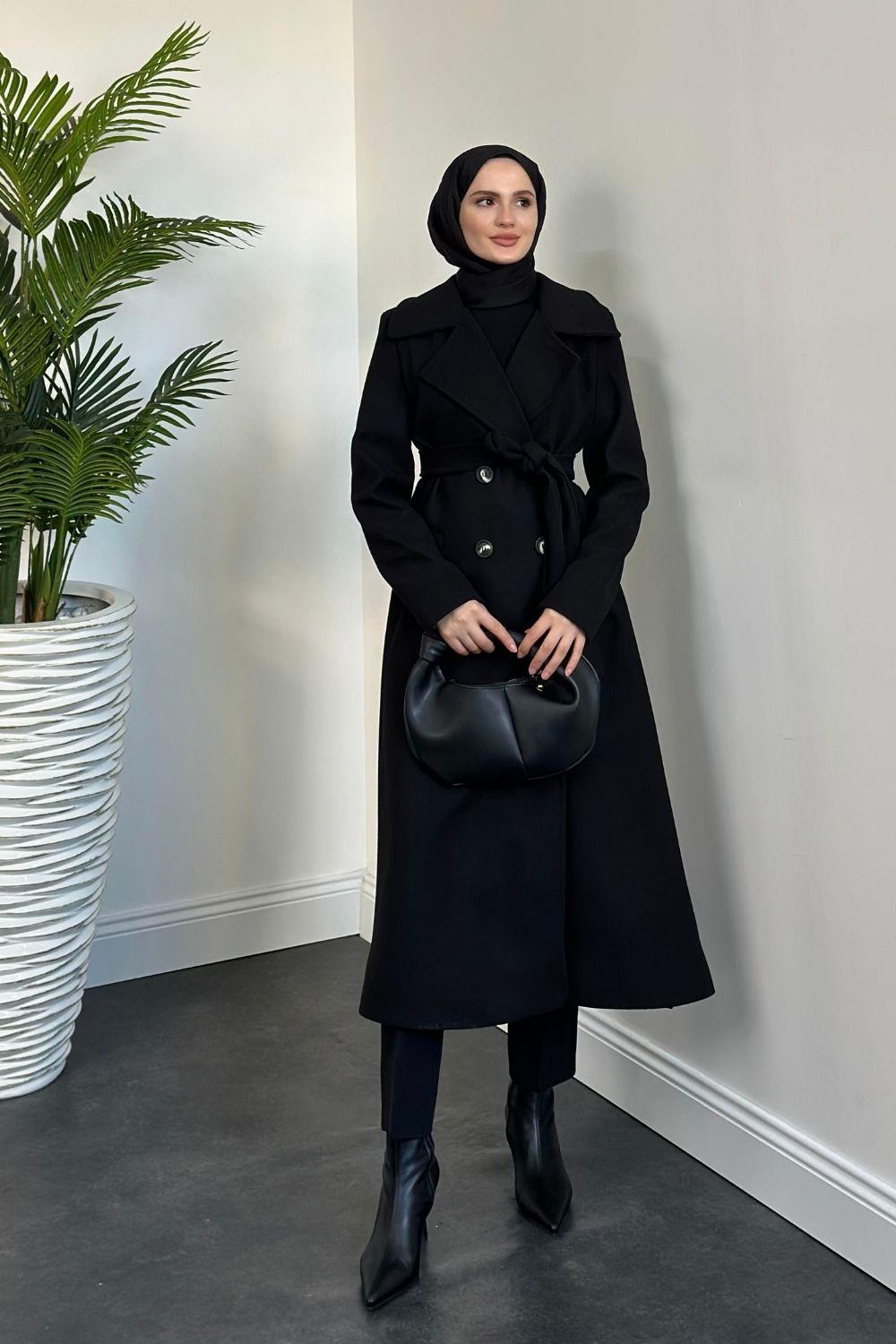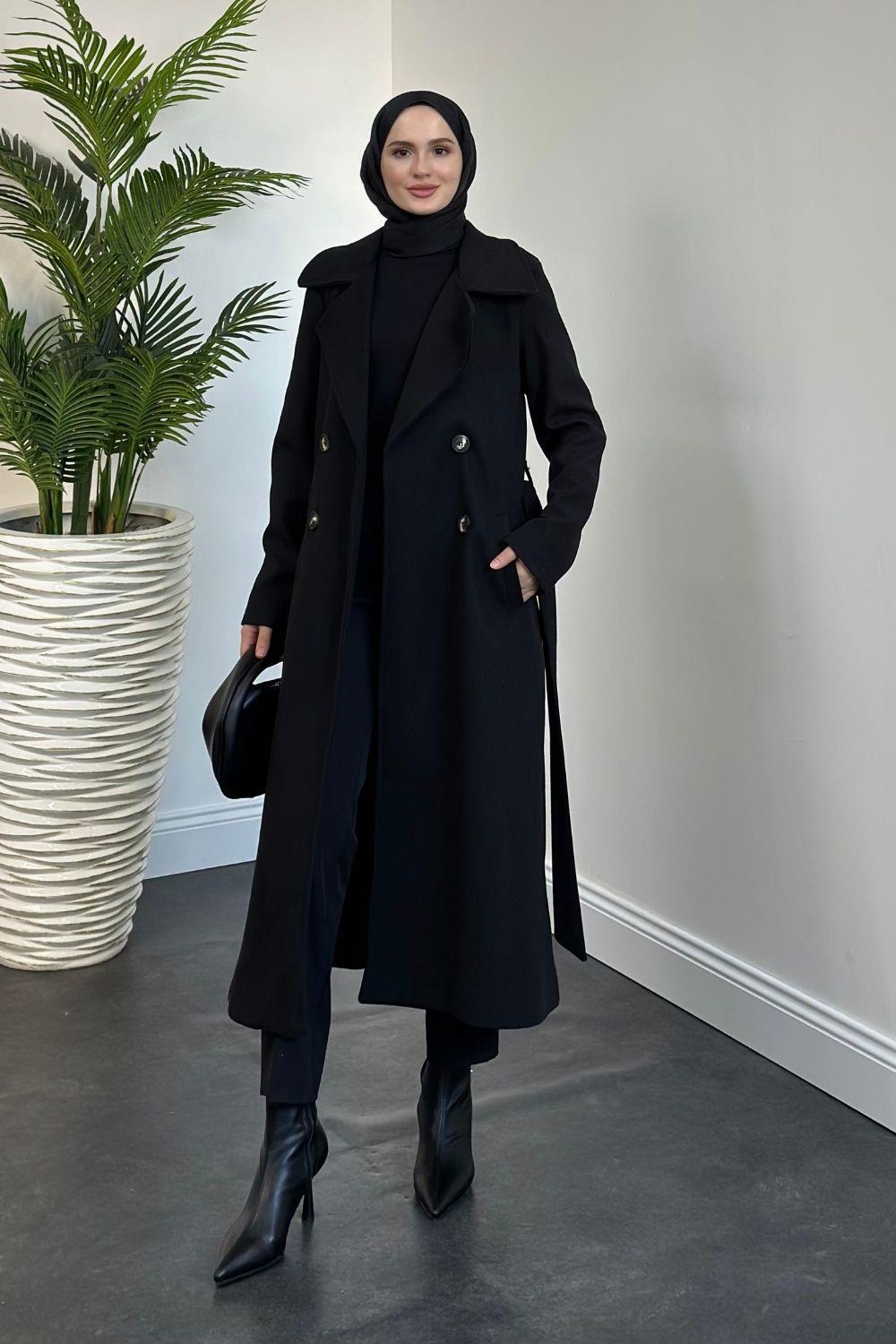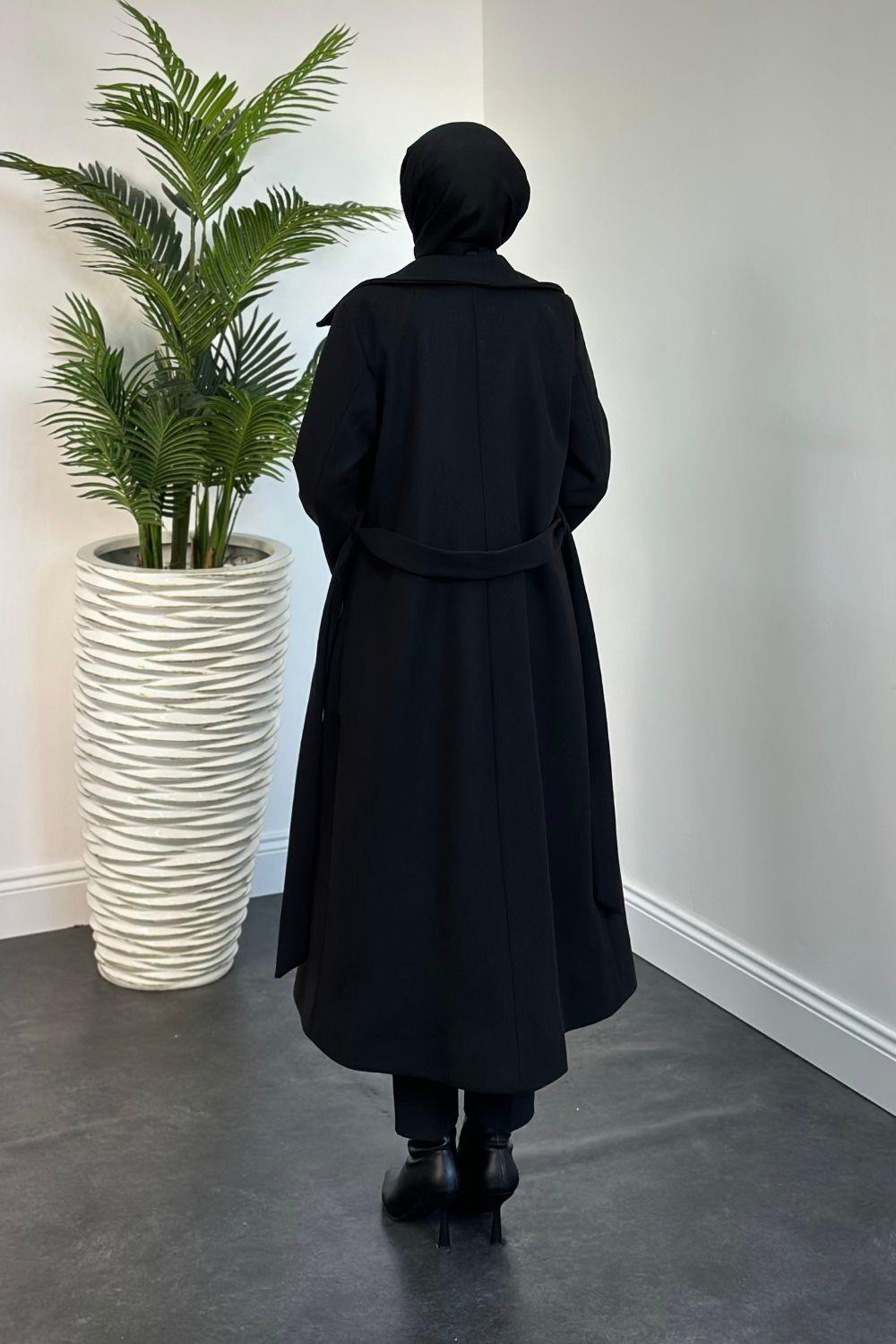 Darell Astarlı Düğmeli Kaban Siyah