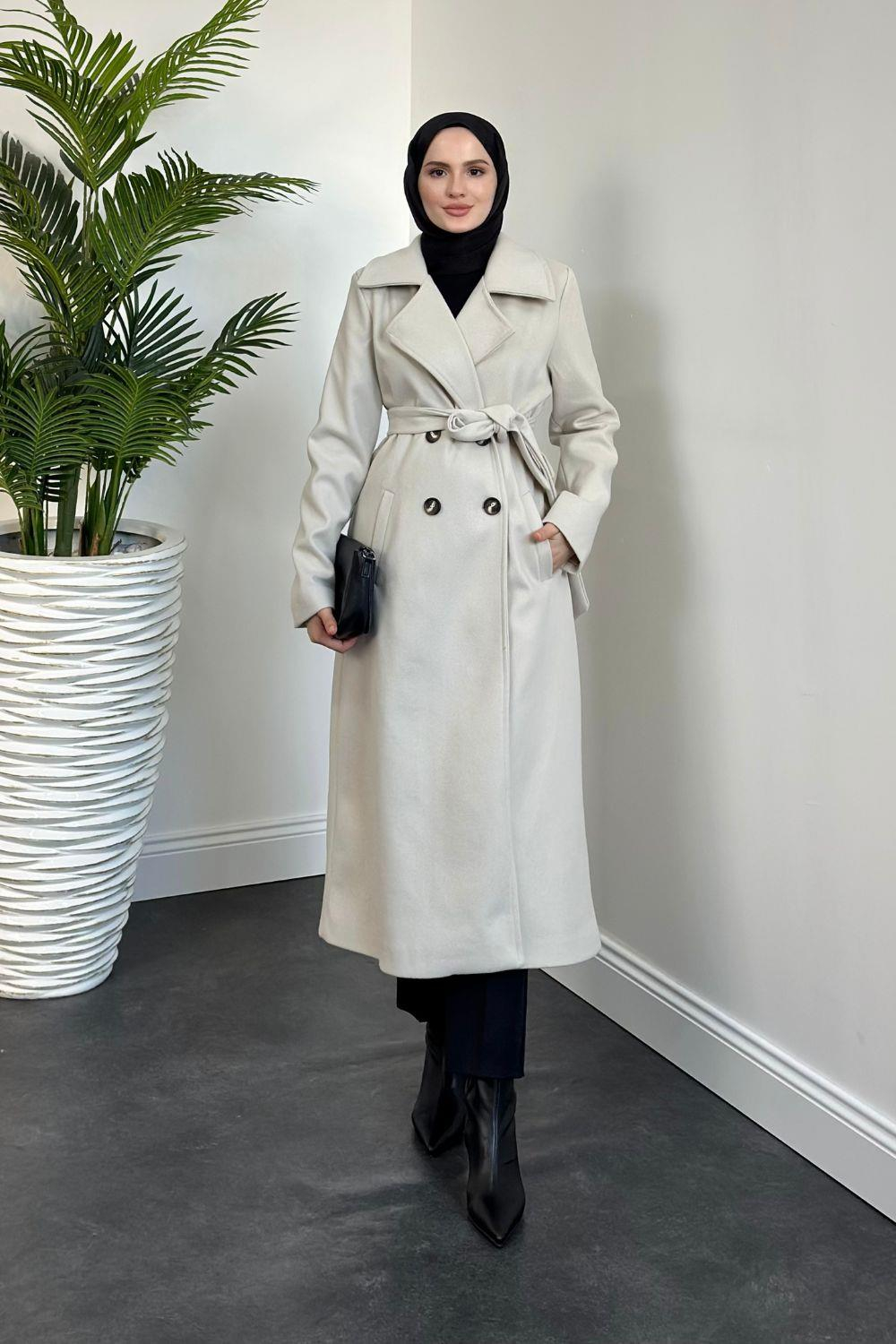 Darell Astarlı Düğmeli Kaban Krem