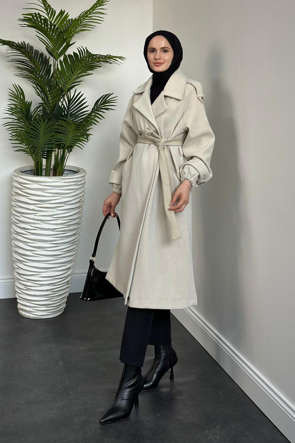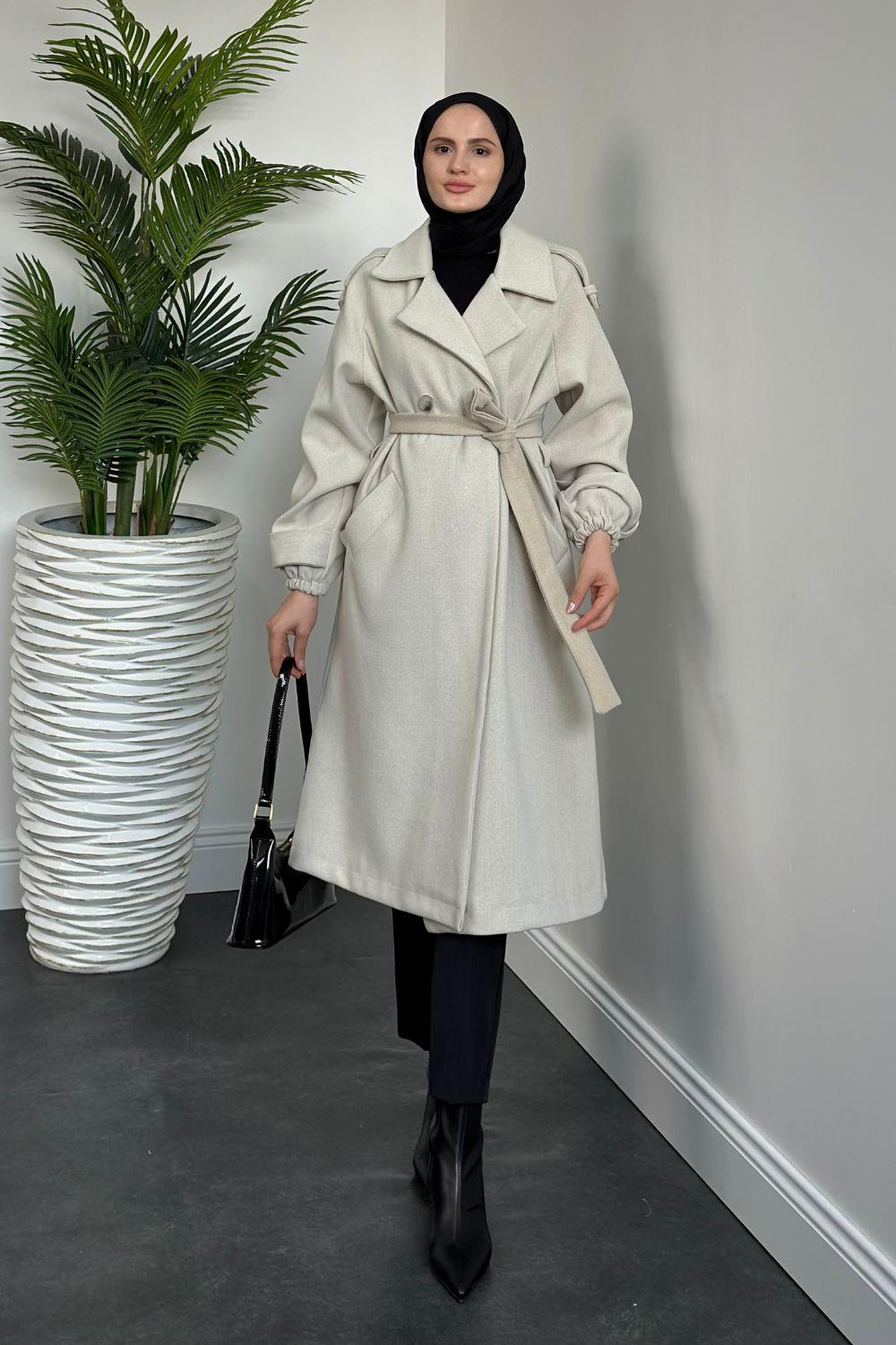 Zora Astarlı Kaşe Kaban Krem