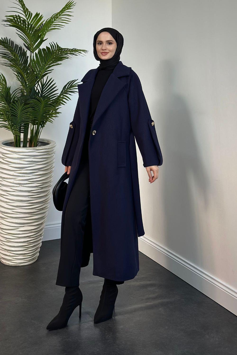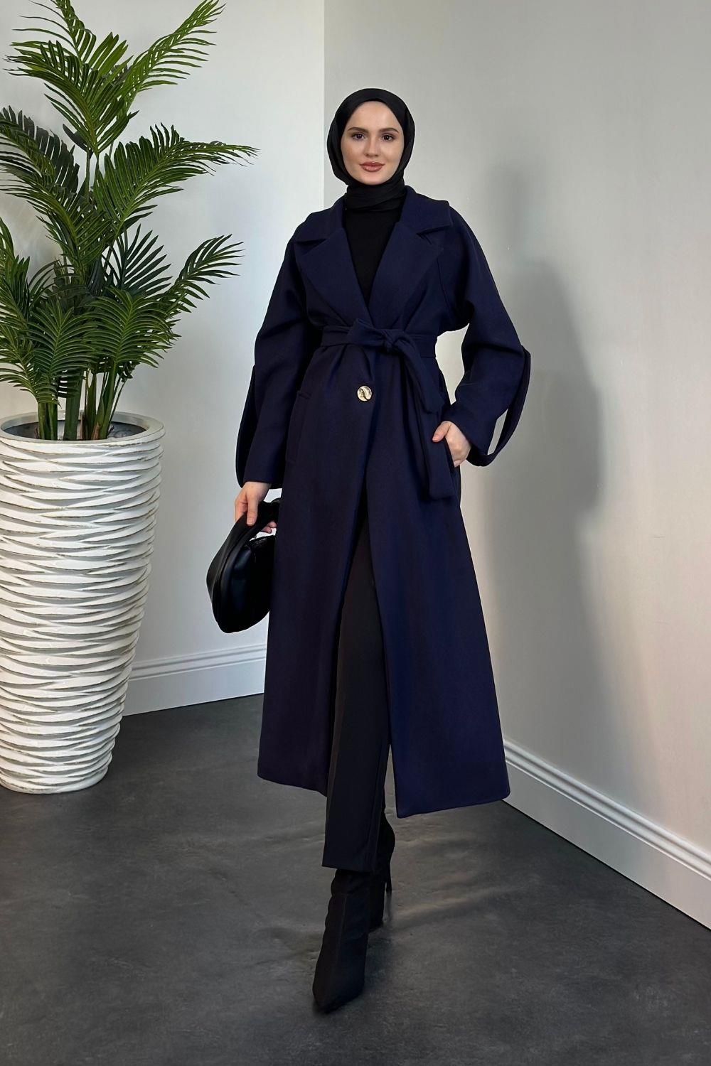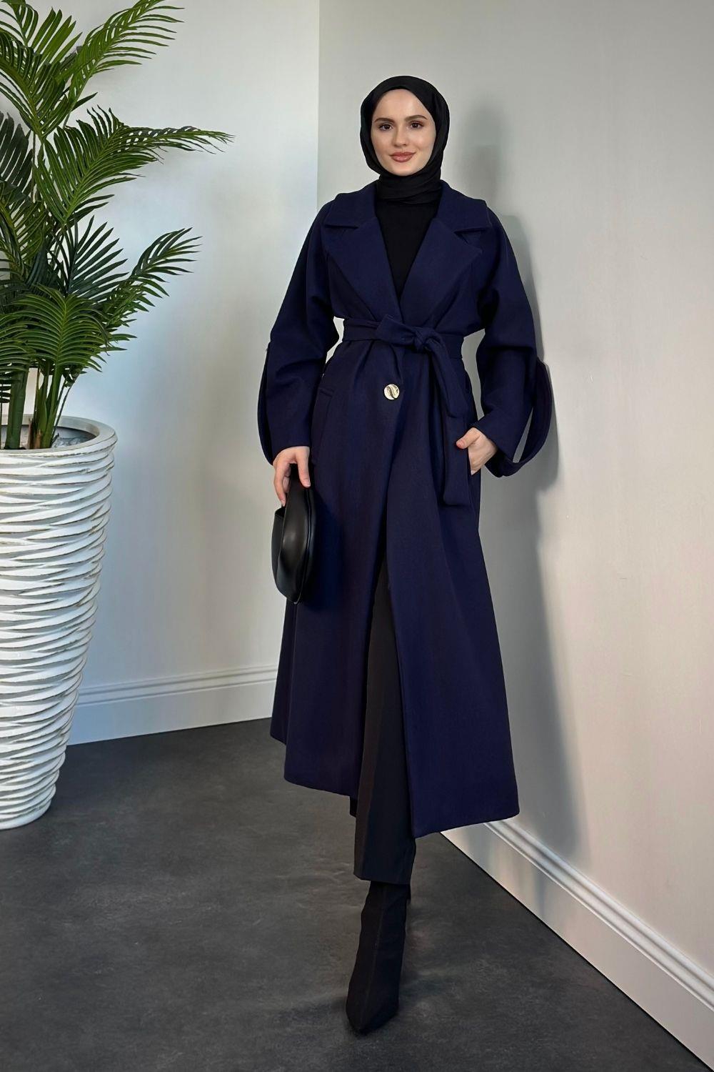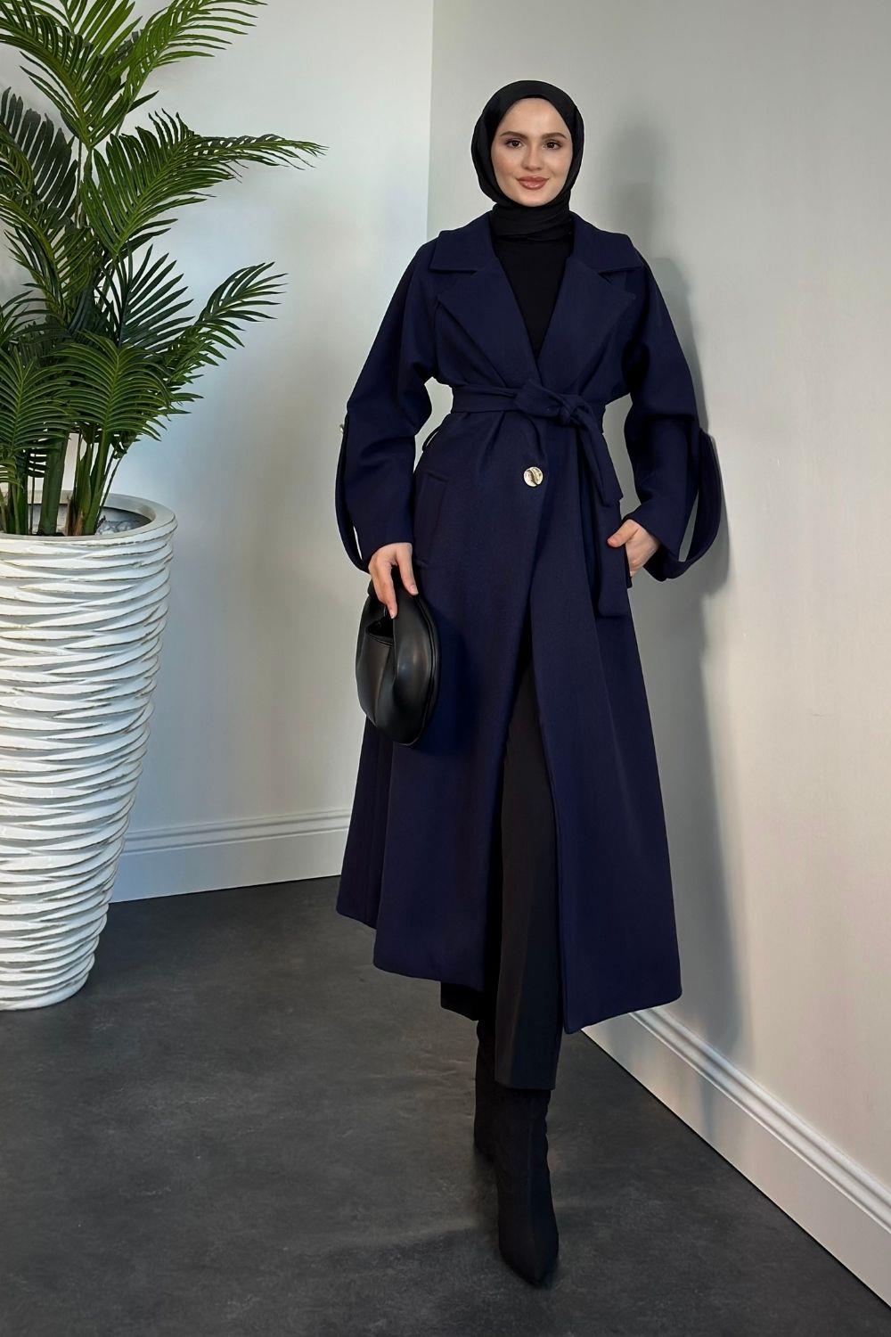 Prianca Astarlı Kuşaklı Kaban Lacivert