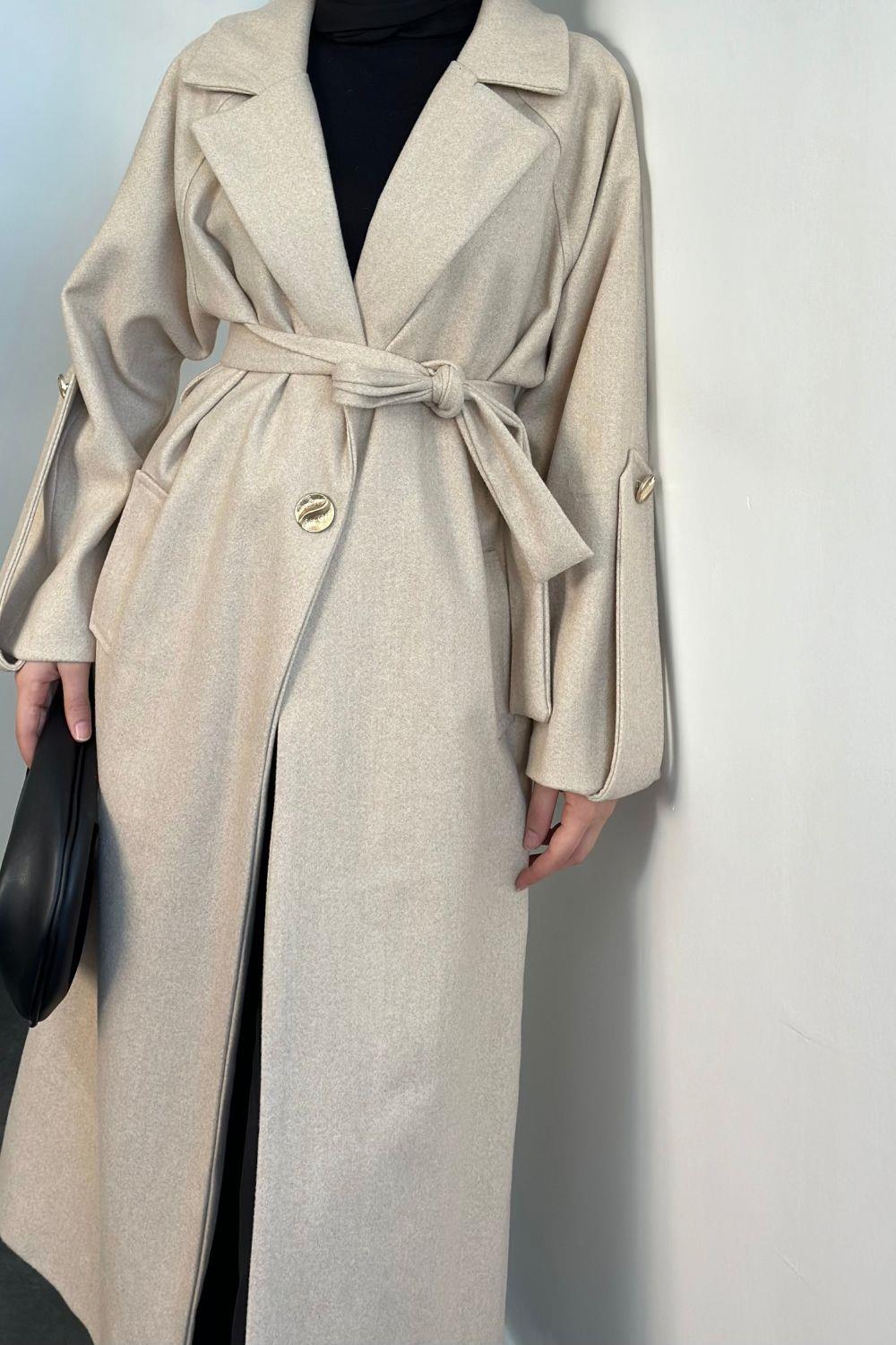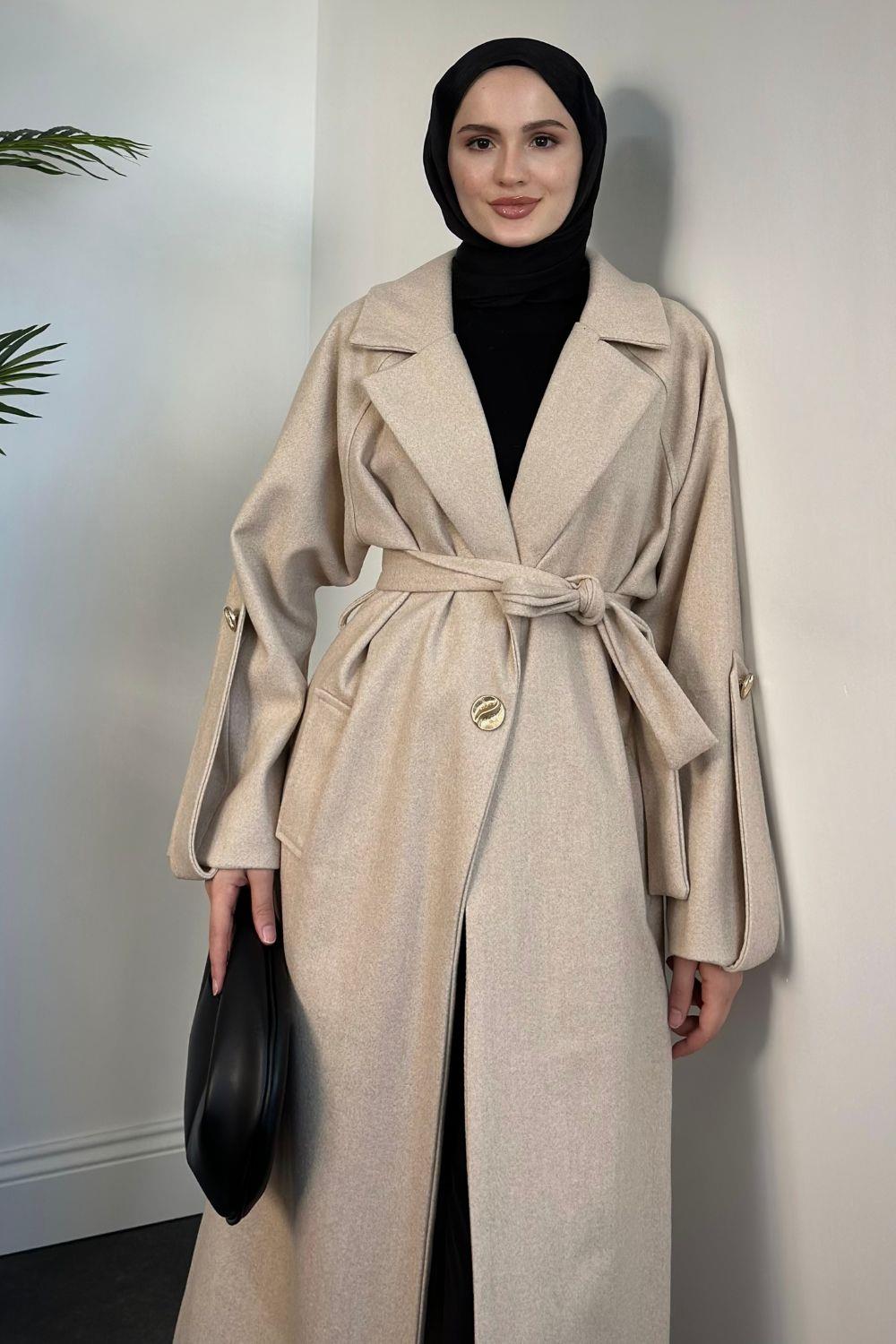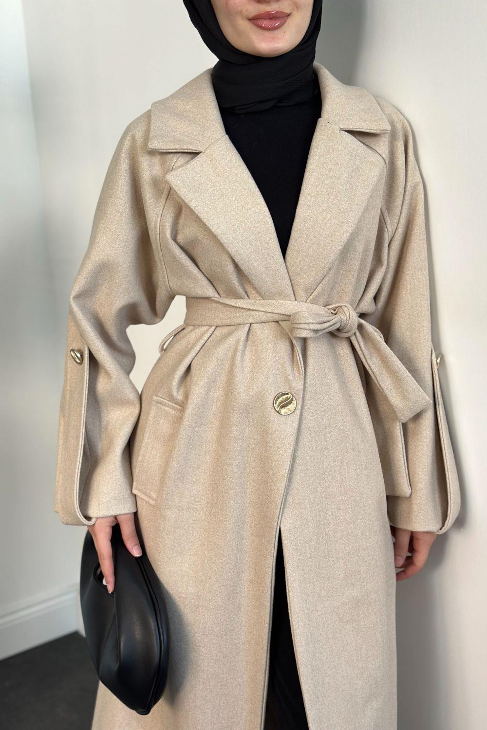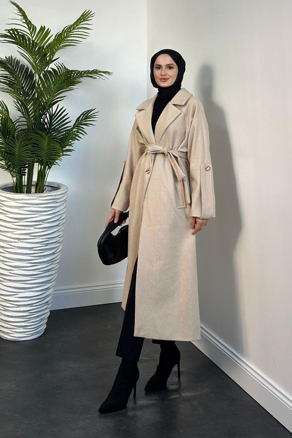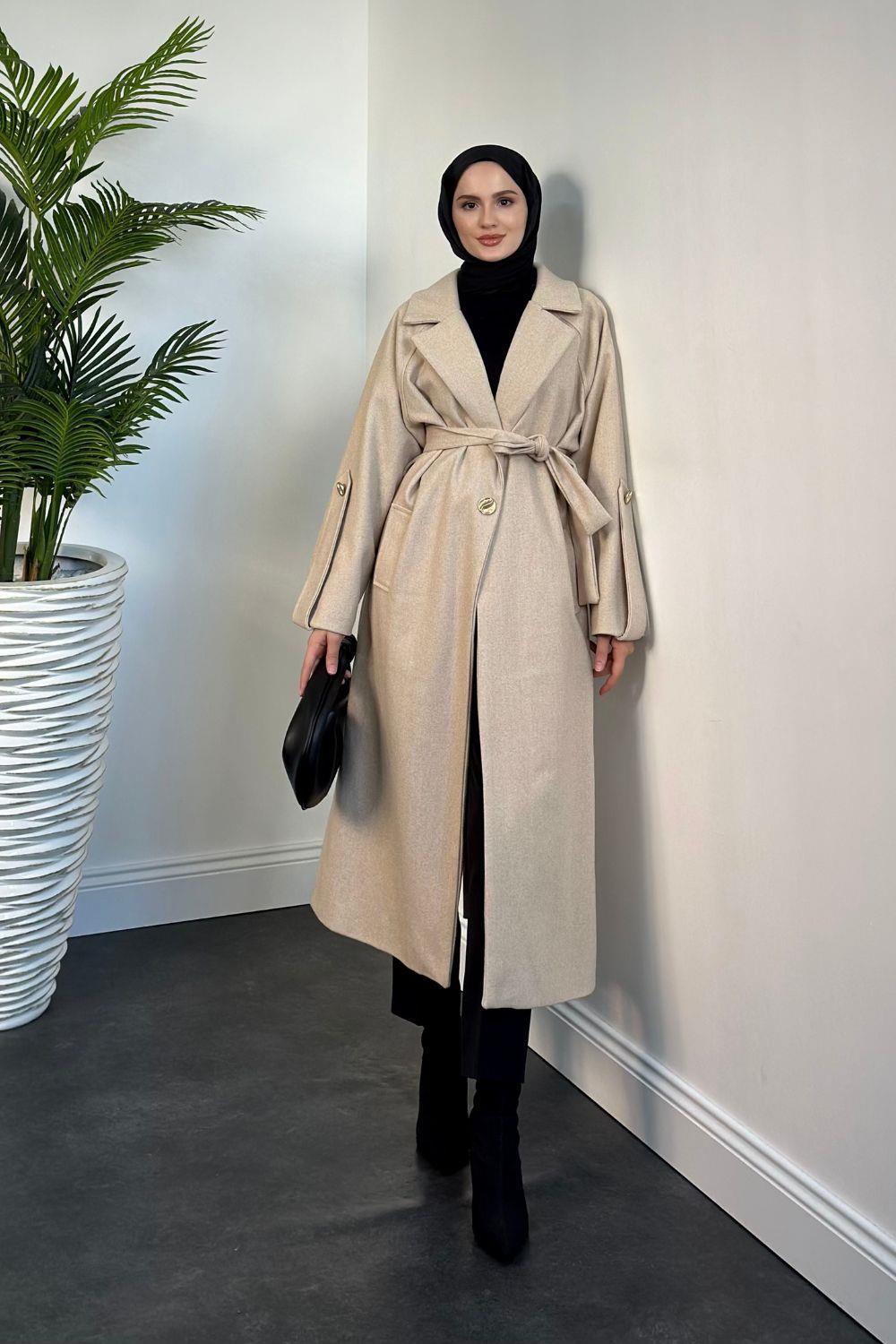 Prianca Astarlı Kuşaklı Kaban Krem