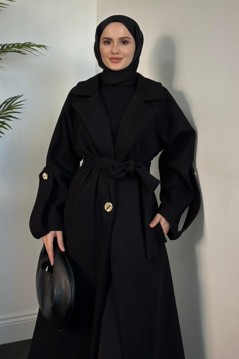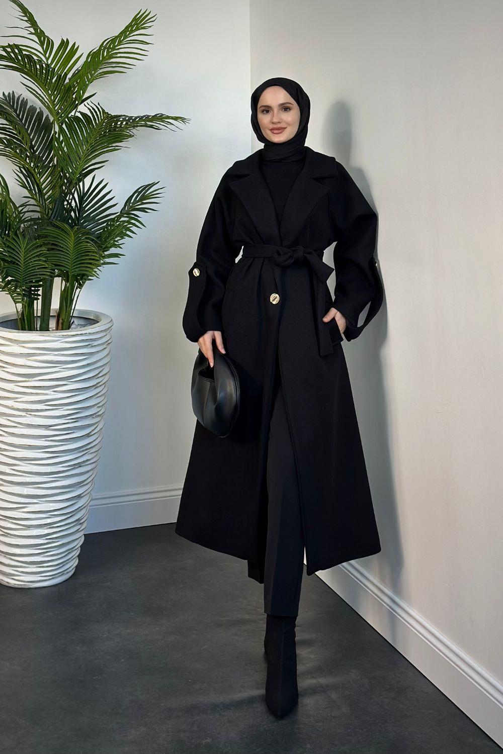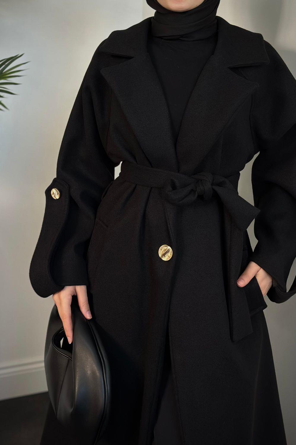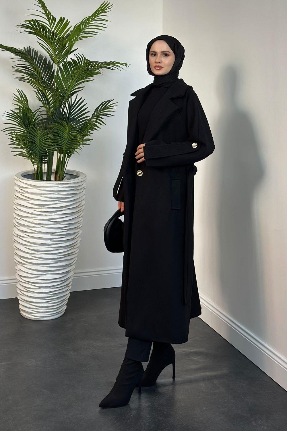 Prianca Astarlı Kuşaklı Kaban Siyah