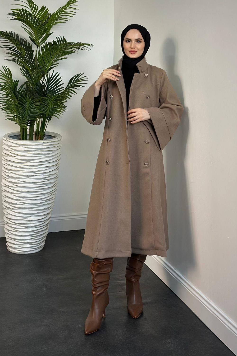 Jeremiah Hakim Yaka Düğmeli Astarlı Kaban Vizon