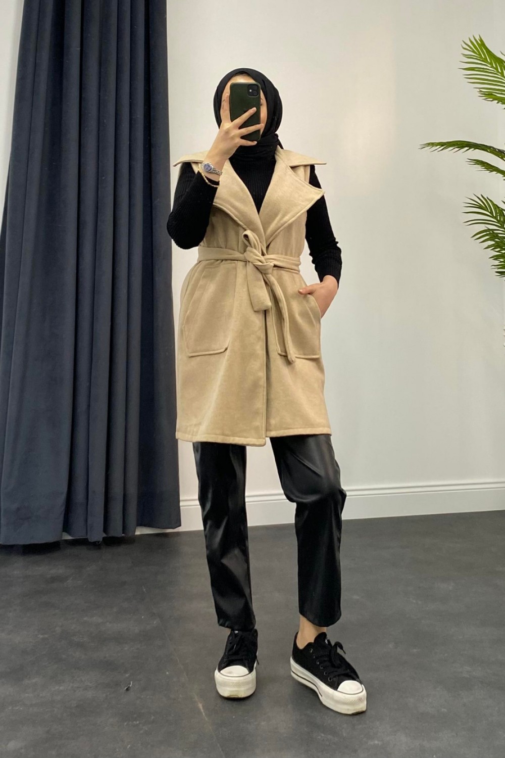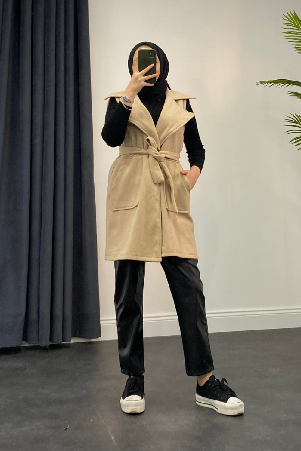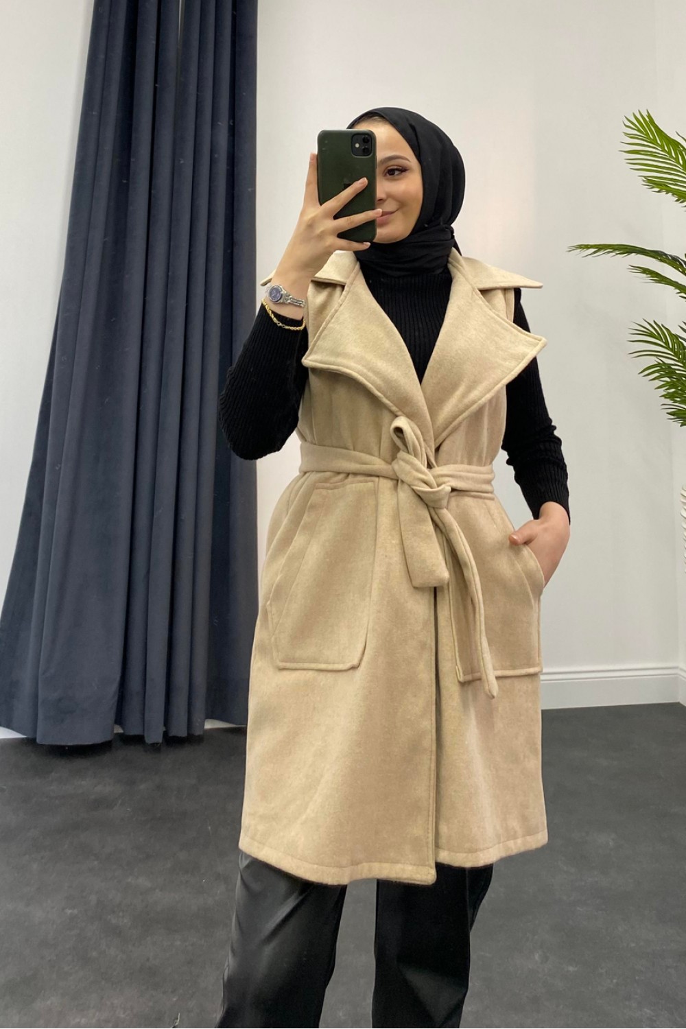 Mihver Kaşe Cepli Yelek Krem